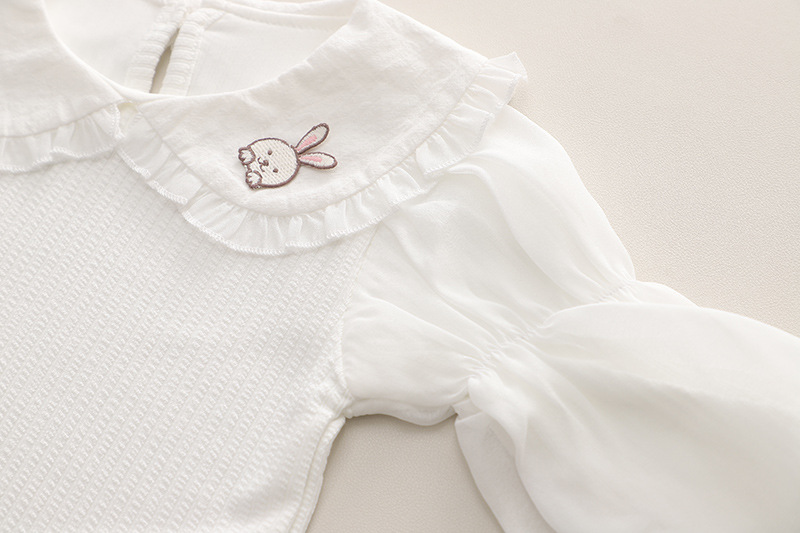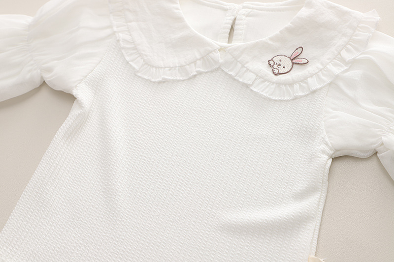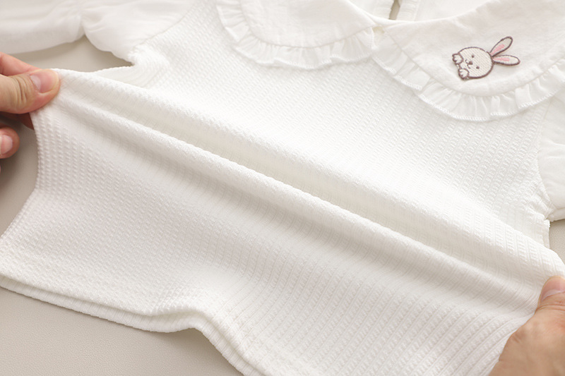 2024 가을 어린이 착용 카우보이 대형 옷깃 소녀의 귀여운 아기 스트랩 바지 긴 소매 봄 어린이 옷 2 조각 세트