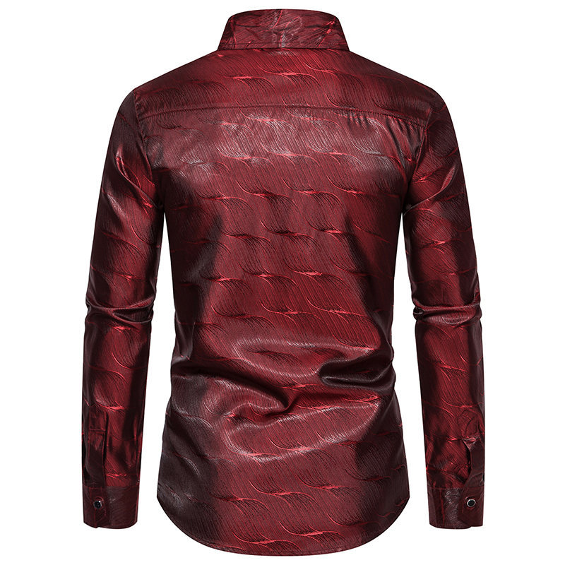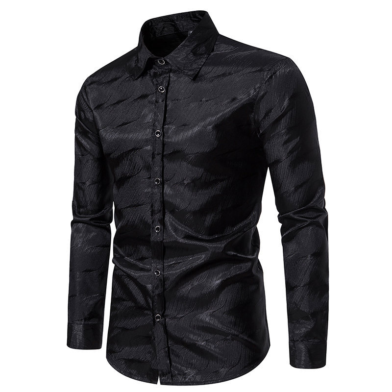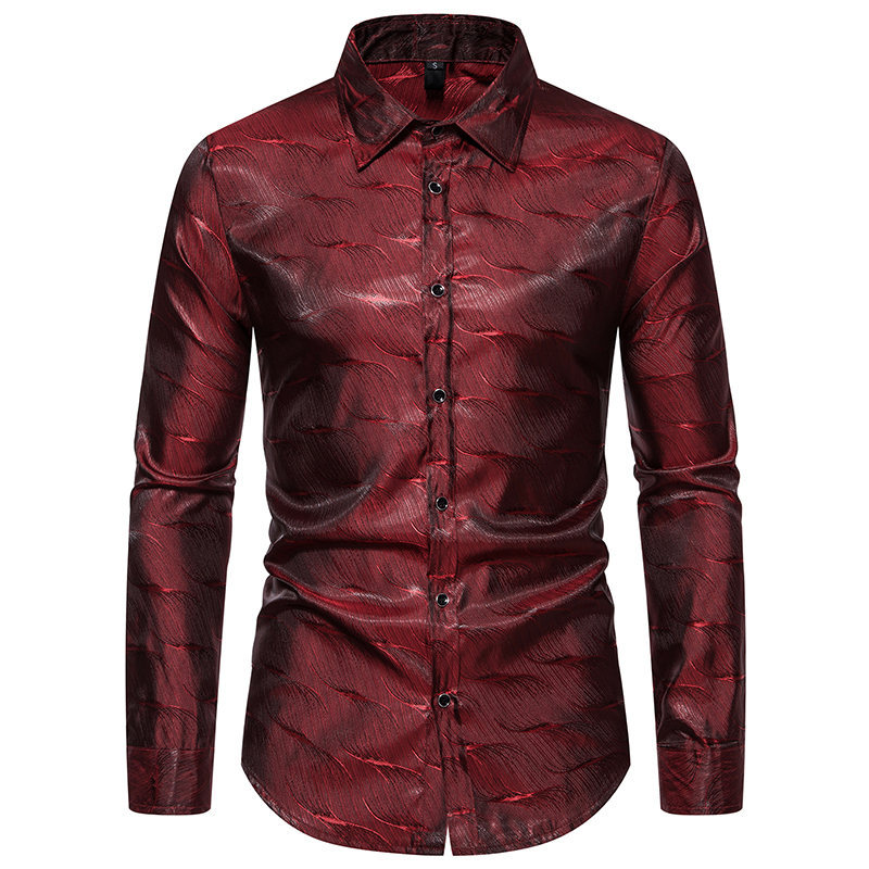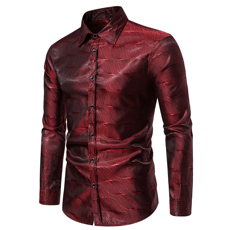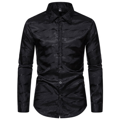 가을과 겨울 새로운 긴팔 셔츠 남성용 아마존 패션 스트라이프 자카드 밝은 나이트 클럽 셔츠 남성용 긴팔 셔츠스토어 가기