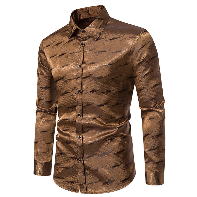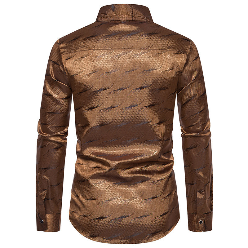 가을과 겨울 새로운 긴팔 셔츠 남성용 아마존 패션 스트라이프 자카드 밝은 나이트 클럽 셔츠 남성용 긴팔 셔츠