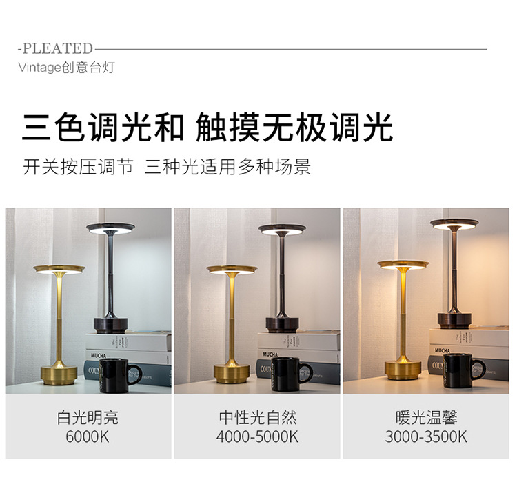 크로스보더 크리에이티브 테이블 램프 레트로 라이트 럭셔리 바 분위기 조명 충전식 침실 터치 모던 심플 나이트 라이트