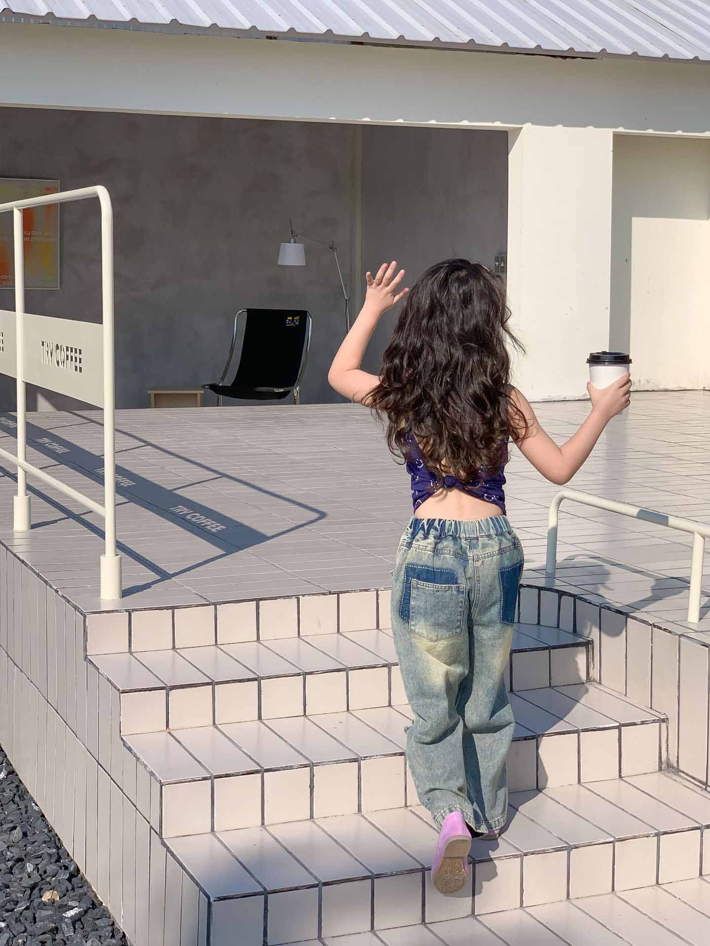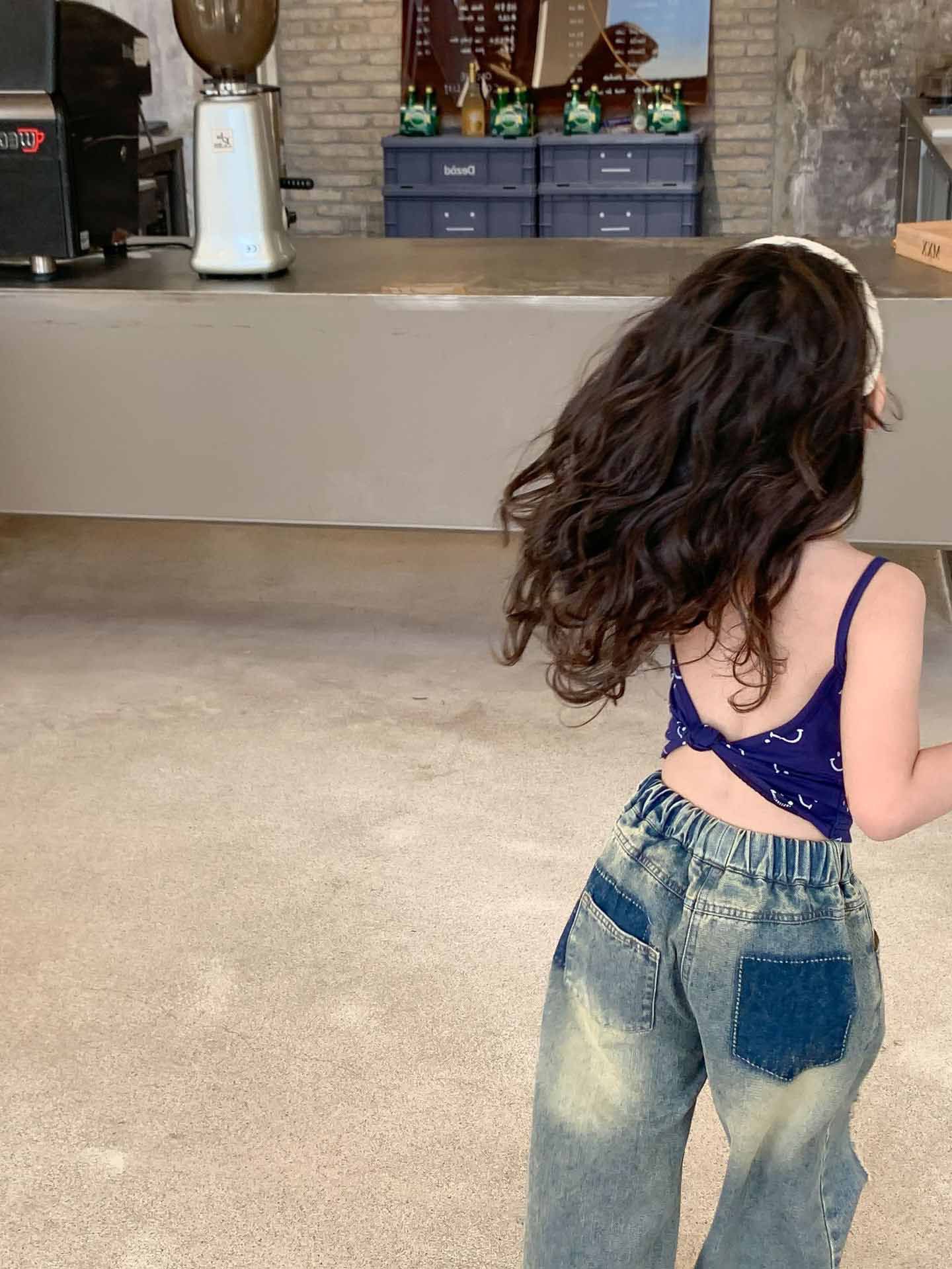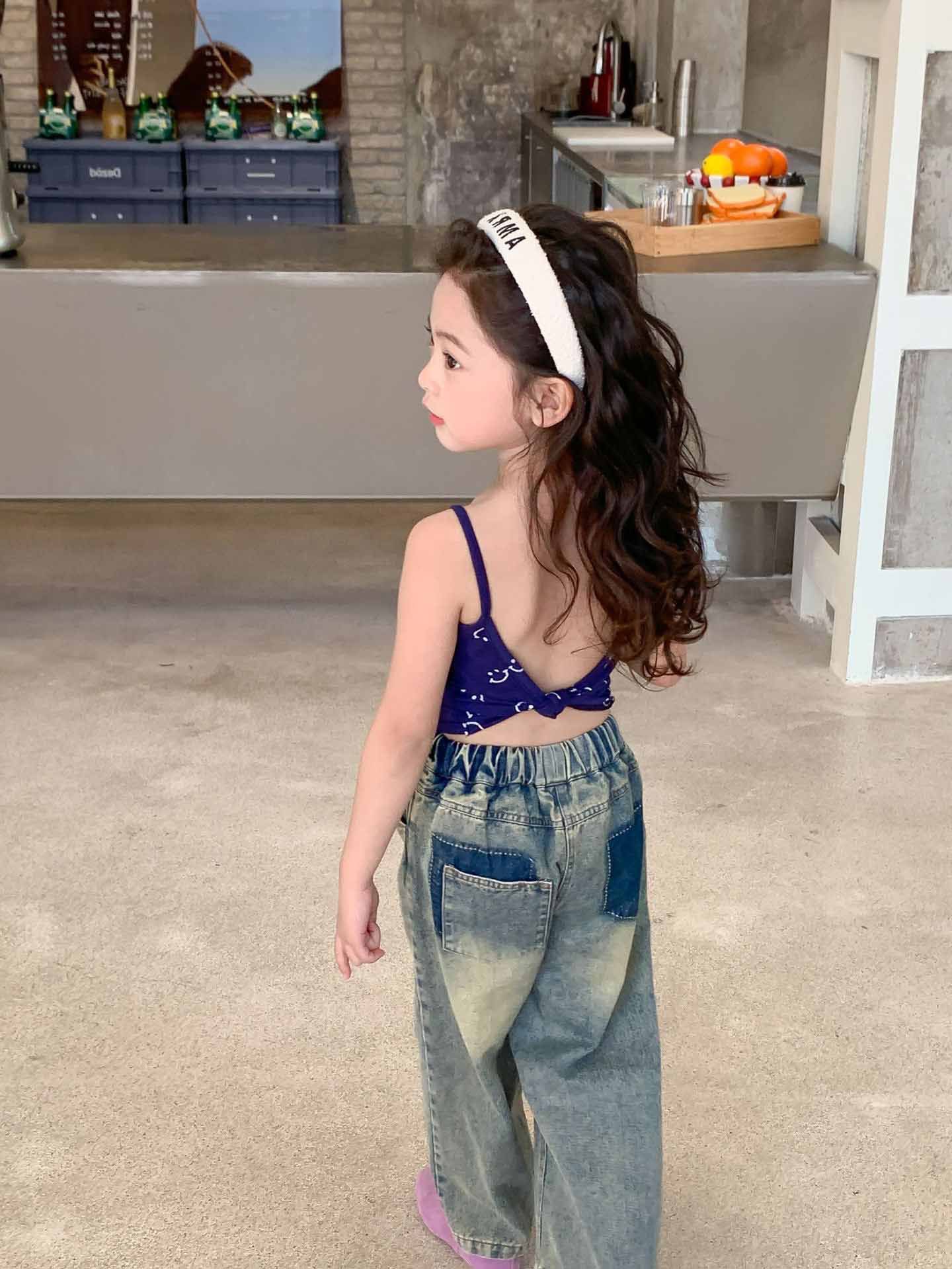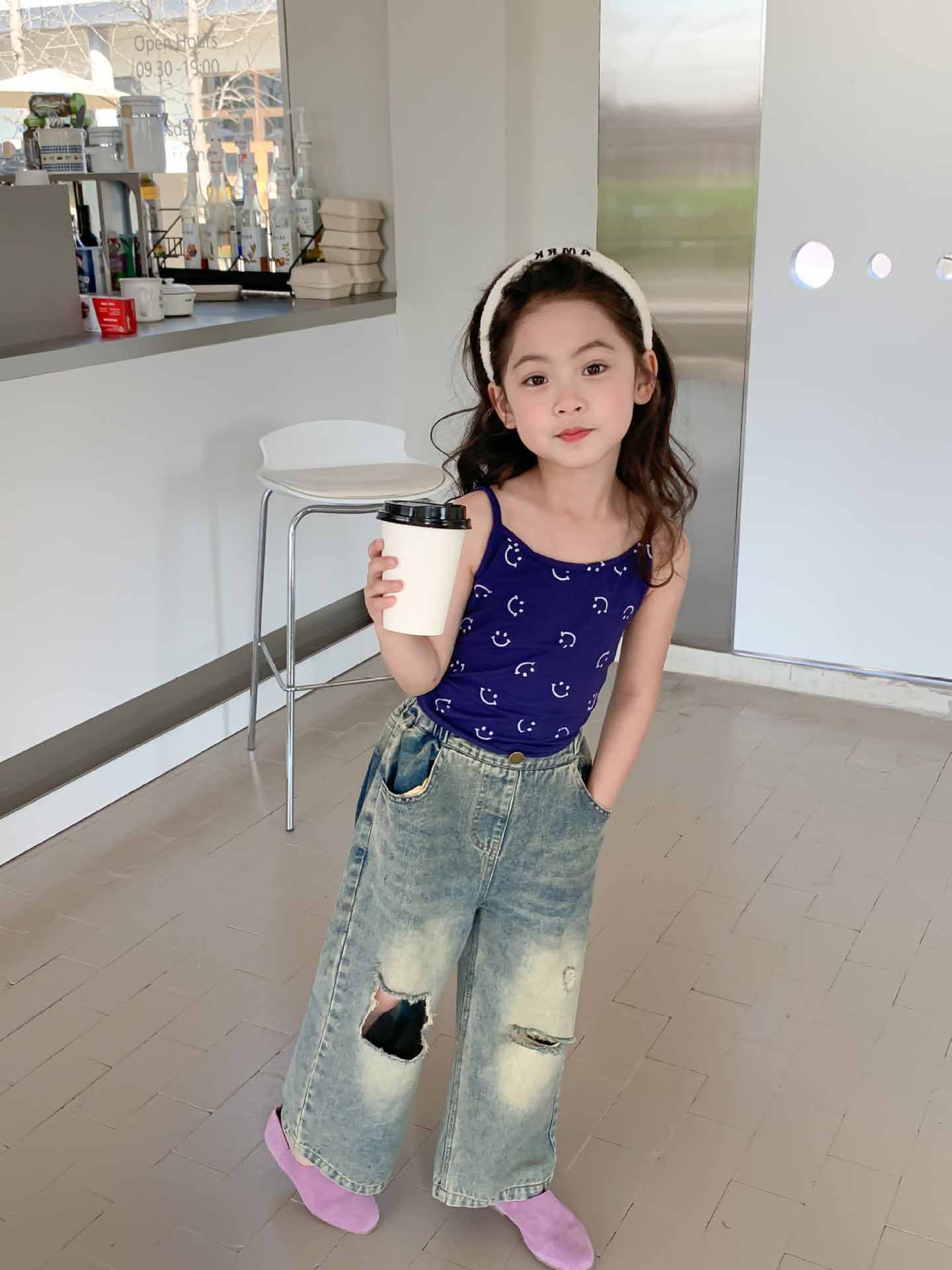 여자 찢어진 청바지 여름 새로운 어린이 성격 복고풍 스타일 넓은 다리 바지 어린이 세대의 머리카락스토어 가기