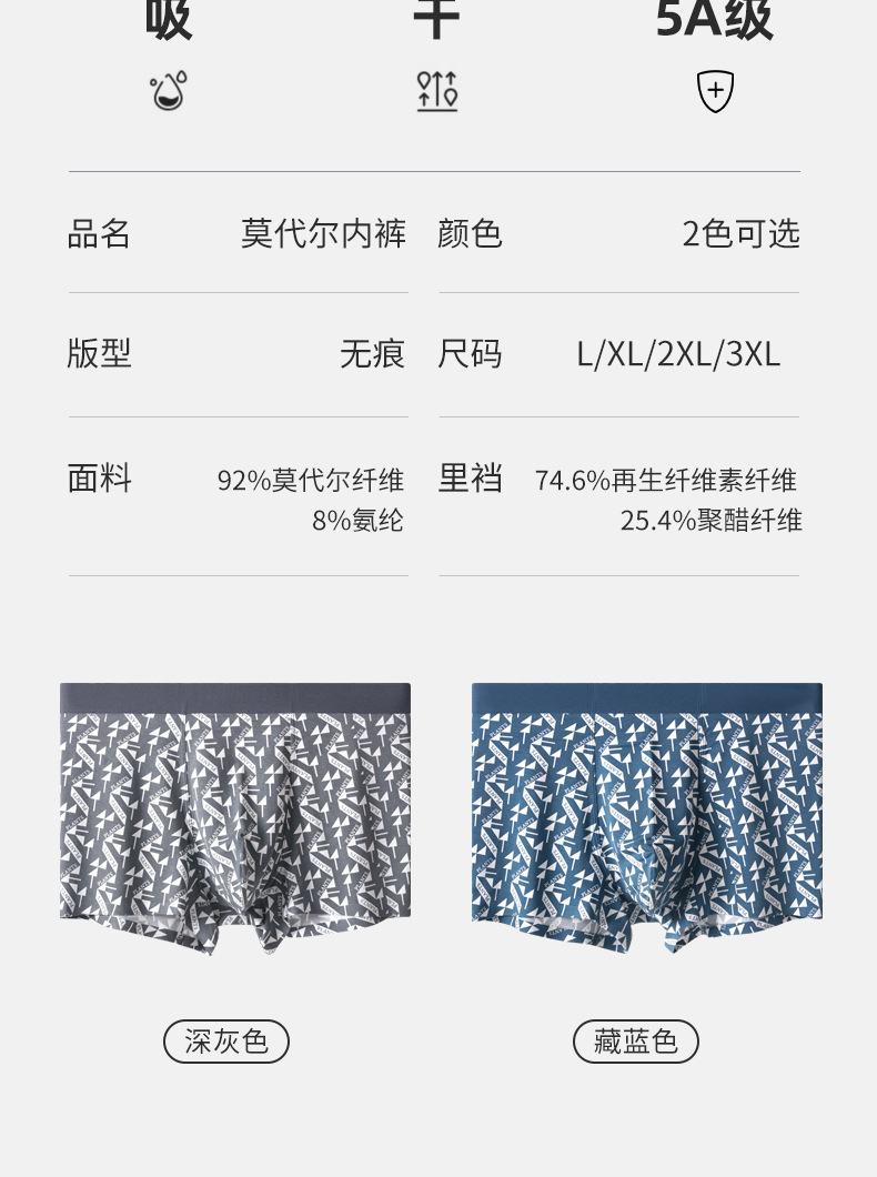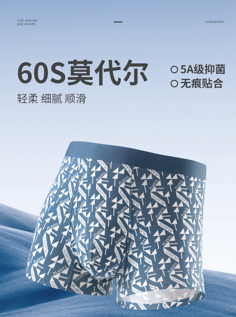 60S 모달 속옷 남자의 통기성 이음매없는 복서 바지 제조 업체 도매 섬세한 부드러운 인쇄 남성 속옷