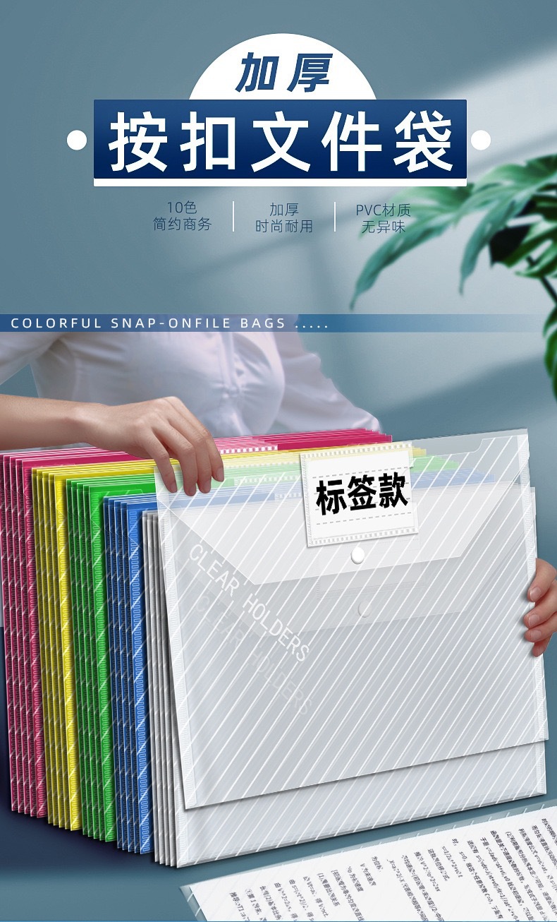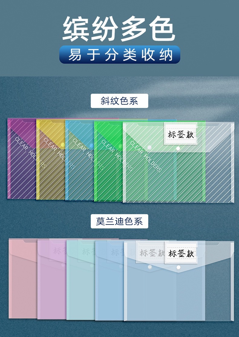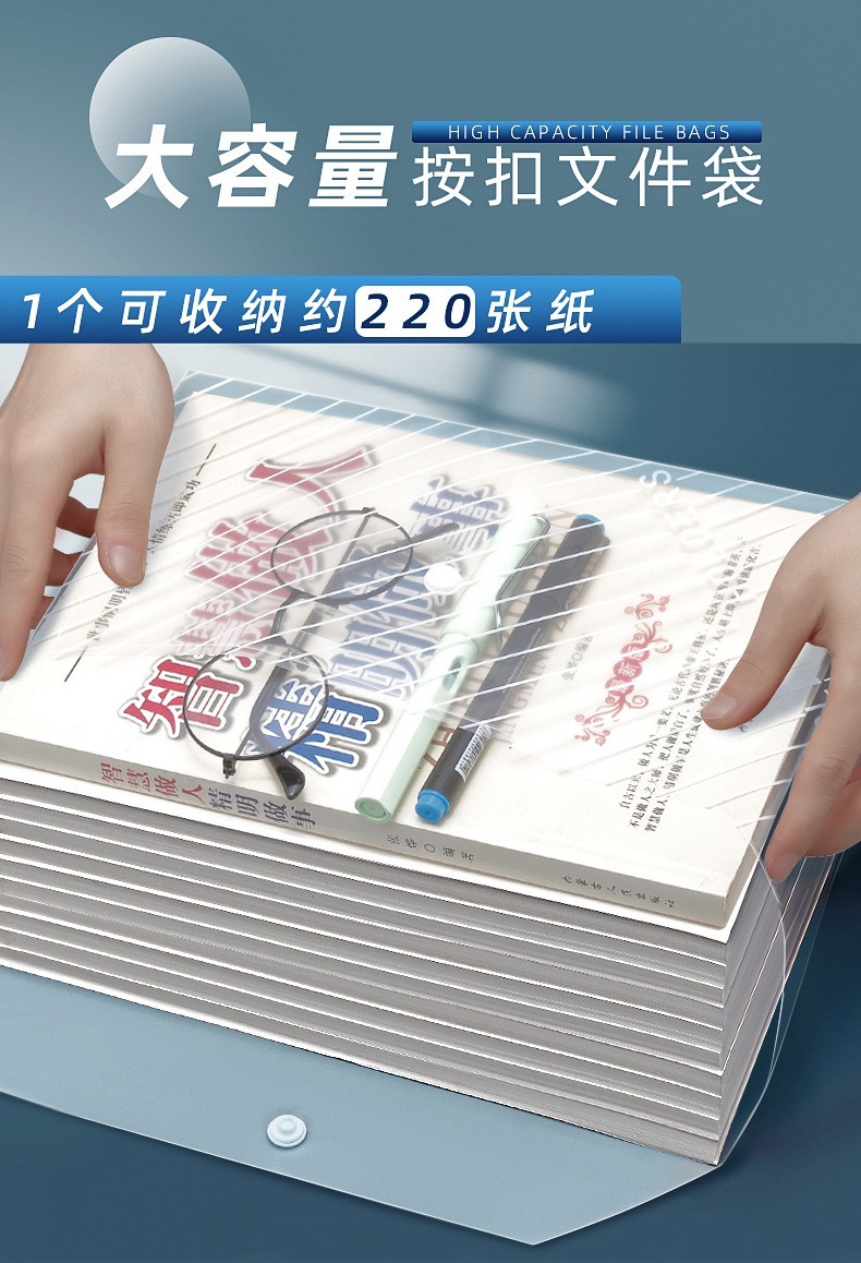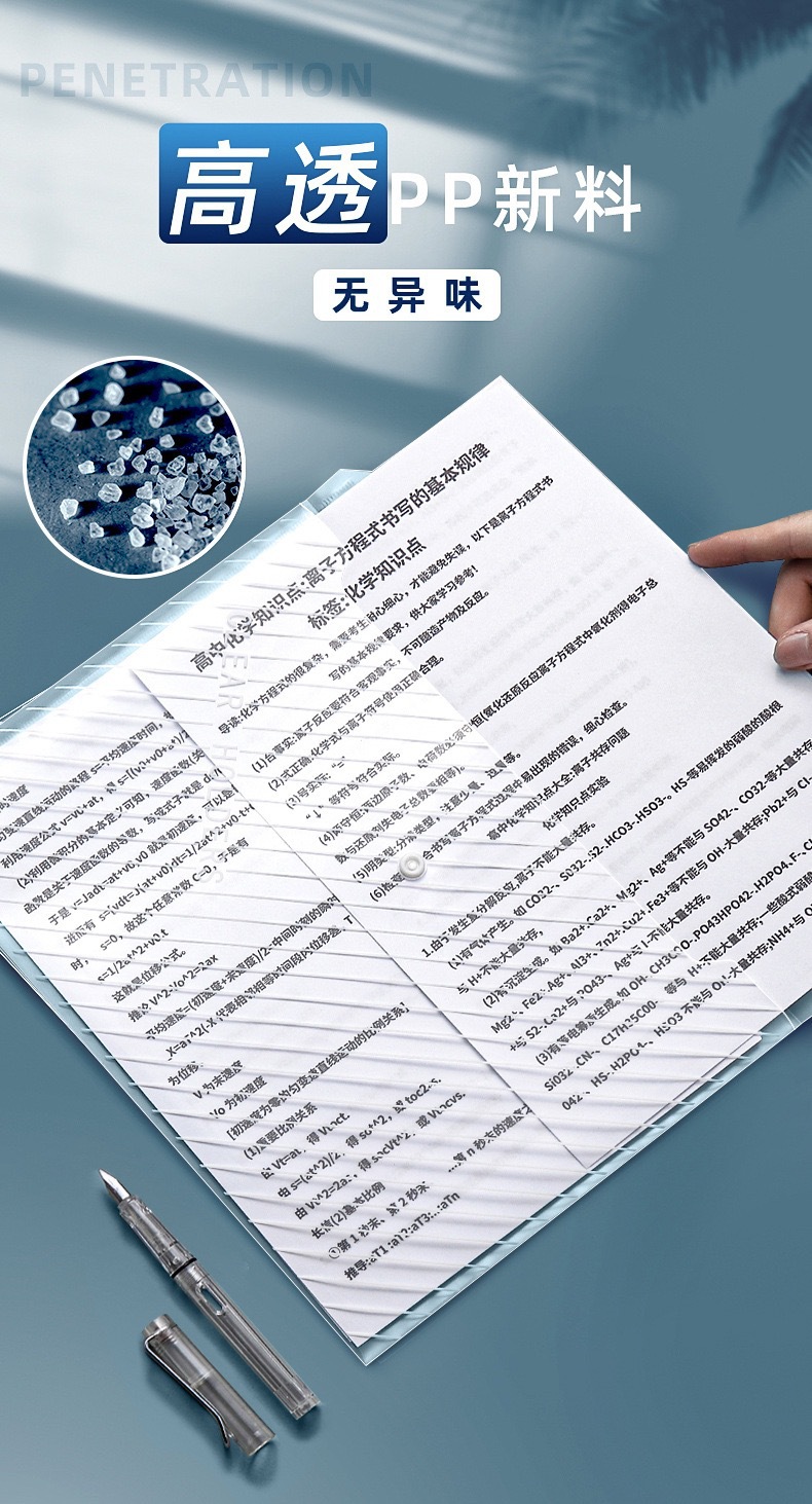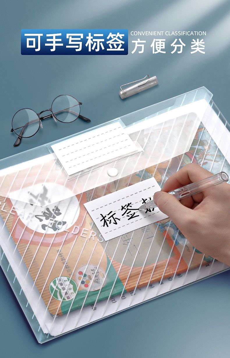 A4 사선 투명 파일 가방 시험지 보관 가방 스냅 버튼 가방 사무용 파일 가방 대용량 시험지 가방