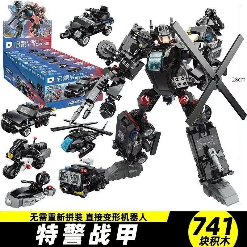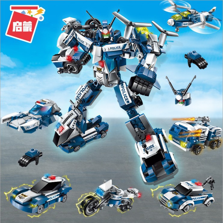 계몽 빌딩 블록 변형 경찰 조립 DIY 퍼즐 모델 어린이 교육 장난감 선물 1407스토어 가기