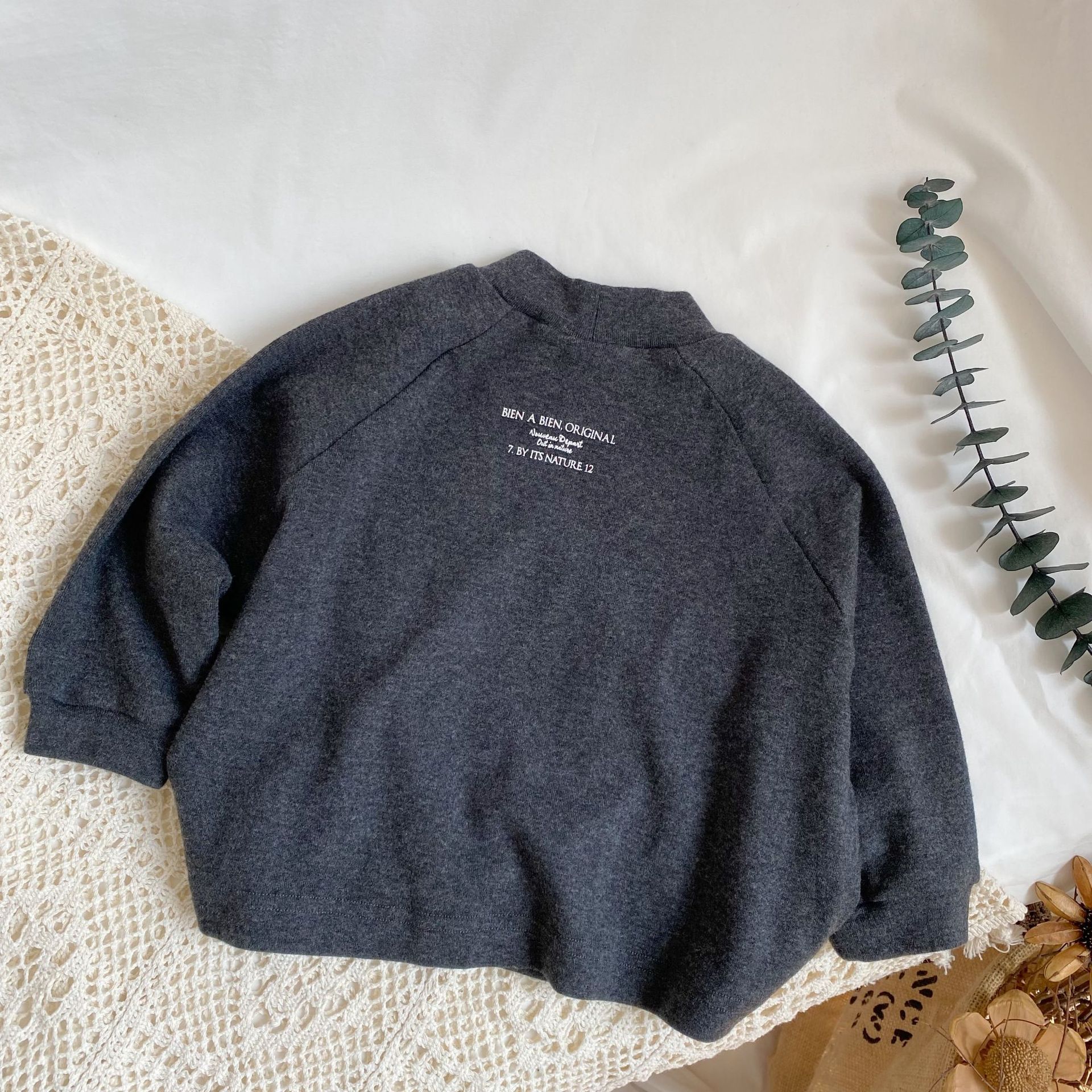GL-kids 한국판 봄 신상품 아동용 뒷면에 글자가 있는 하프넥 베이스 레이어 셔츠 남녀공용 니트 긴팔 티셔츠스토어 가기