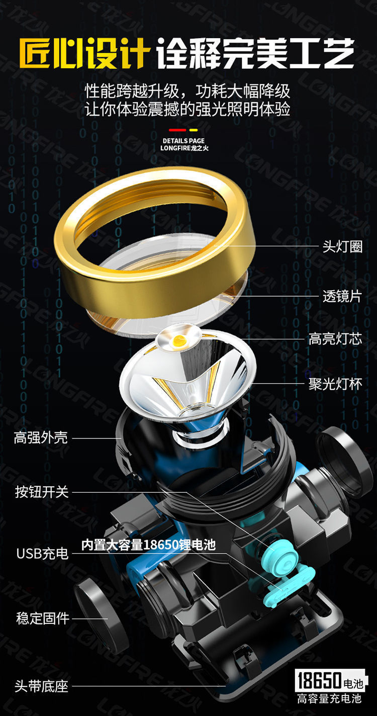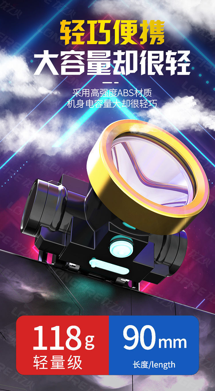 LED 야간 낚시 강한 빛 전조등 USB 충전식 리튬 배터리 소형 전조등 낚시 야외 순찰 캠핑 헤드 마운트 손전등