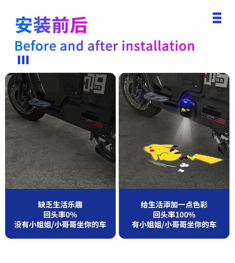 배터리 동적 환영 램프 자동차 전기 자동차 오토바이 만화 프로젝터 도어 조명 플로어 램프 장식 분위기스토어 가기
