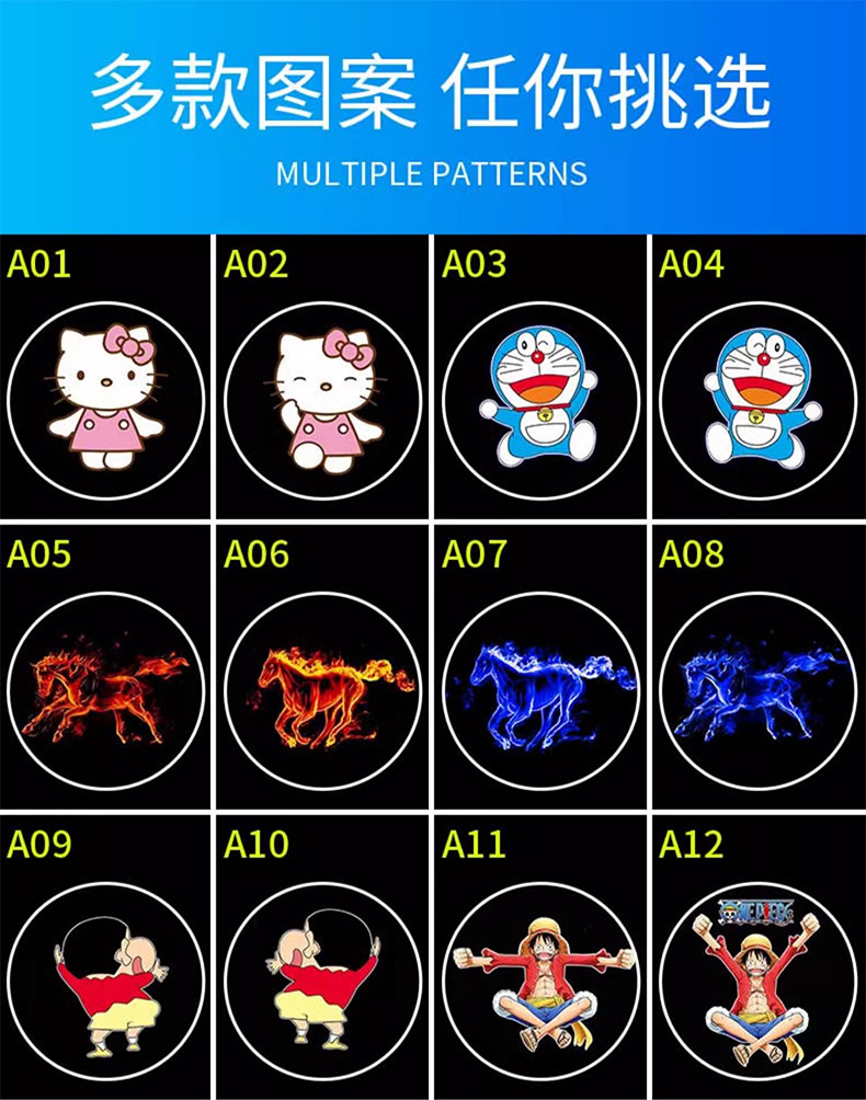 배터리 동적 환영 램프 자동차 전기 자동차 오토바이 만화 프로젝터 도어 조명 플로어 램프 장식 분위기