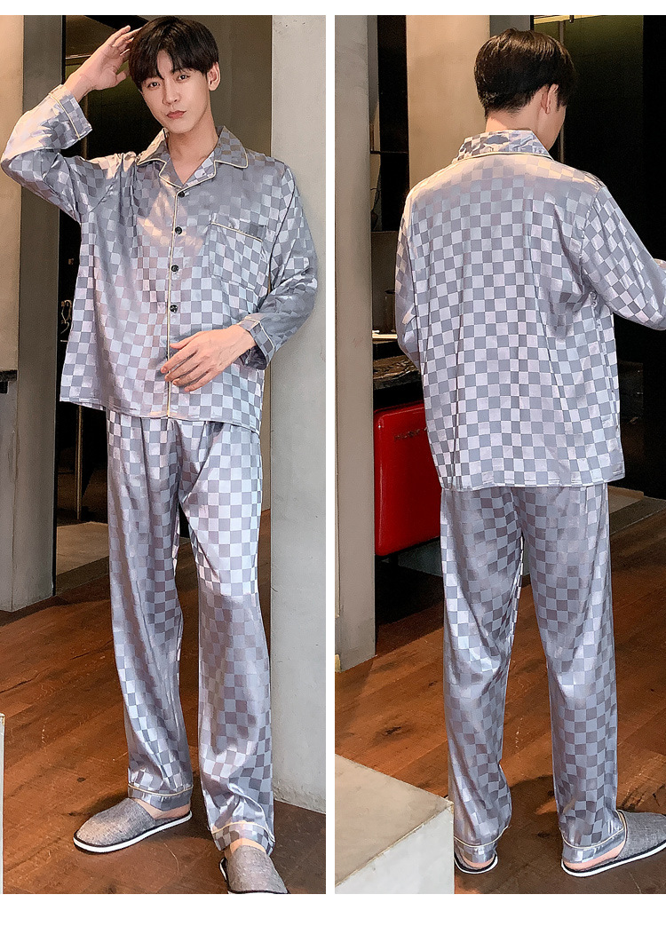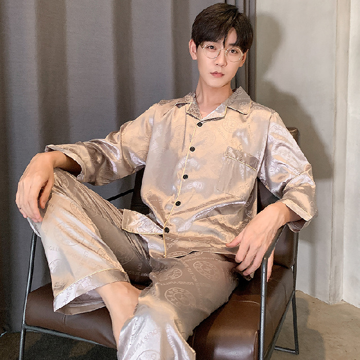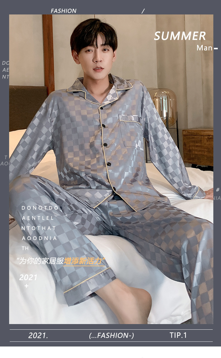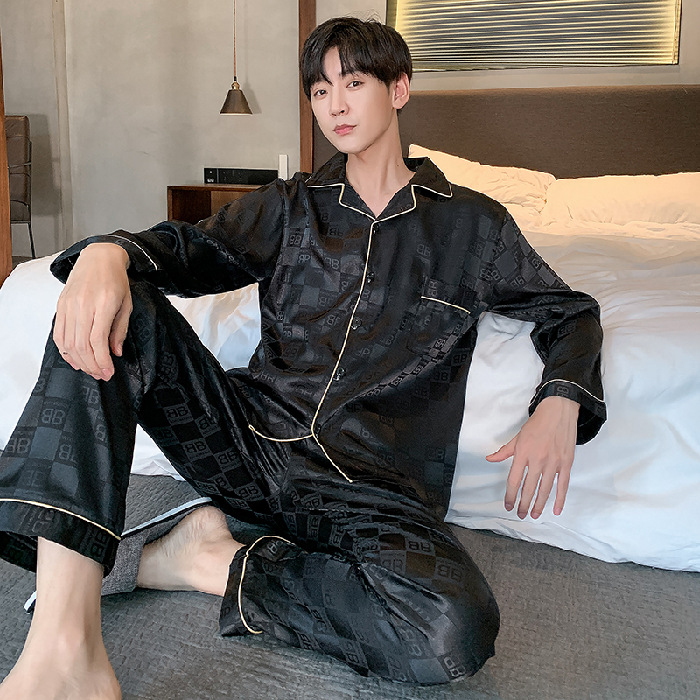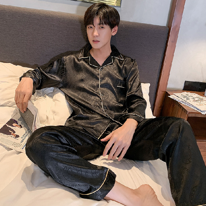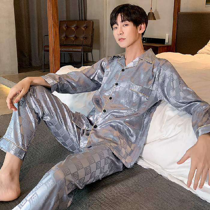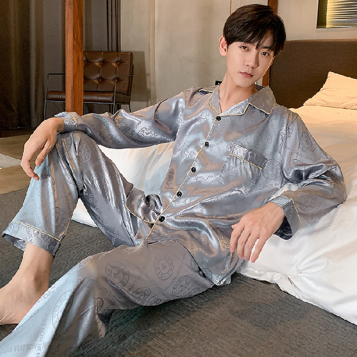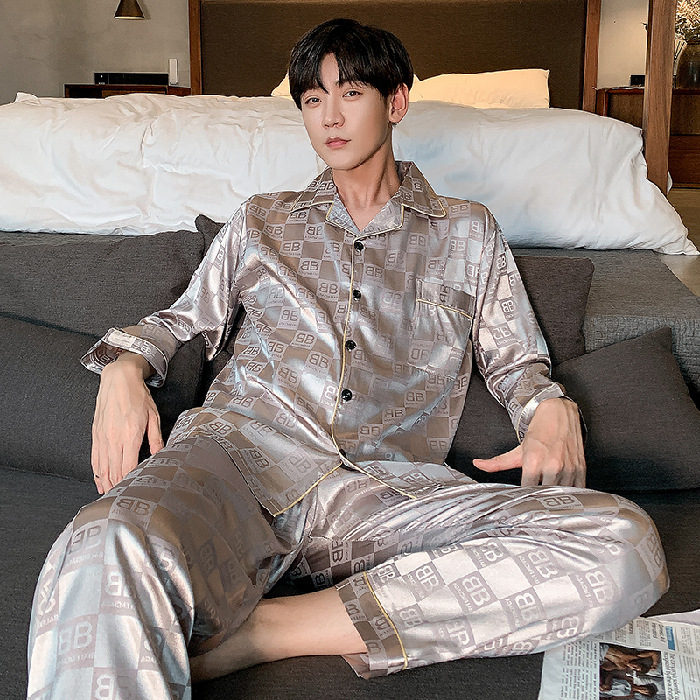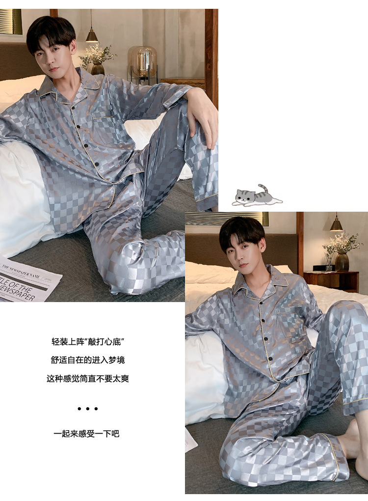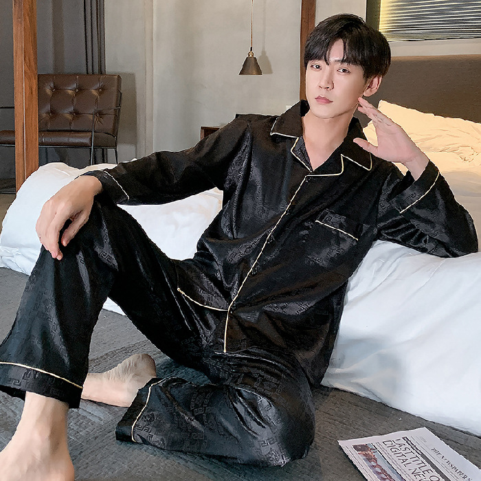잠옷 남자의 봄과 가을 긴 소매 아이스 실크 플러스 사이즈 200 진 느슨한 간단한 한국식 실크 가정복