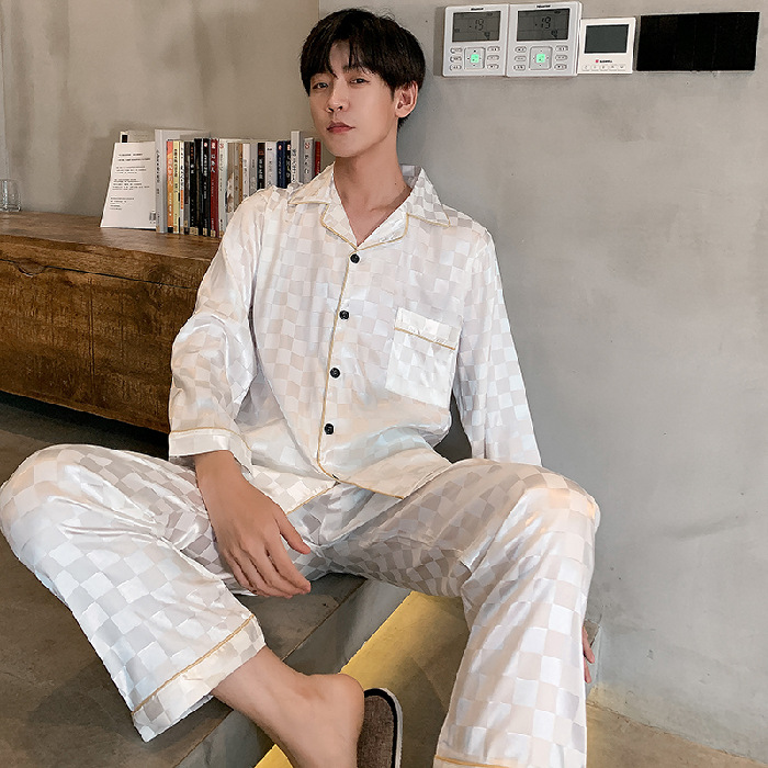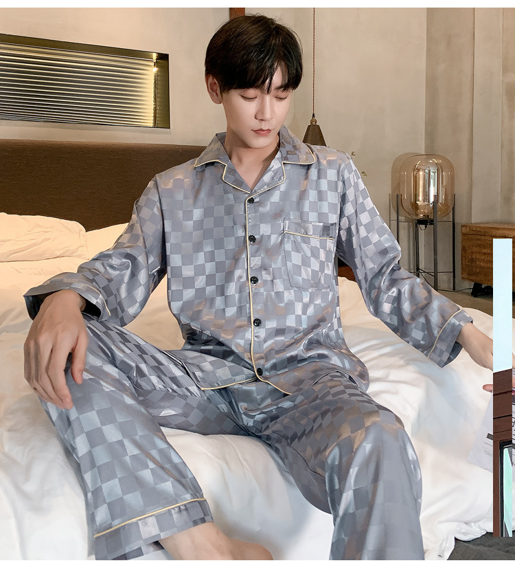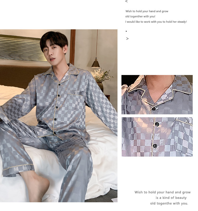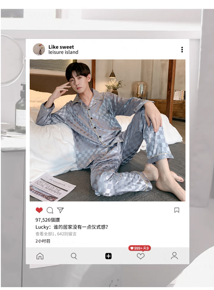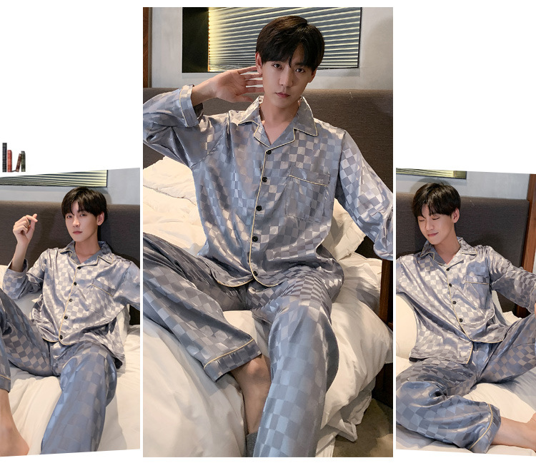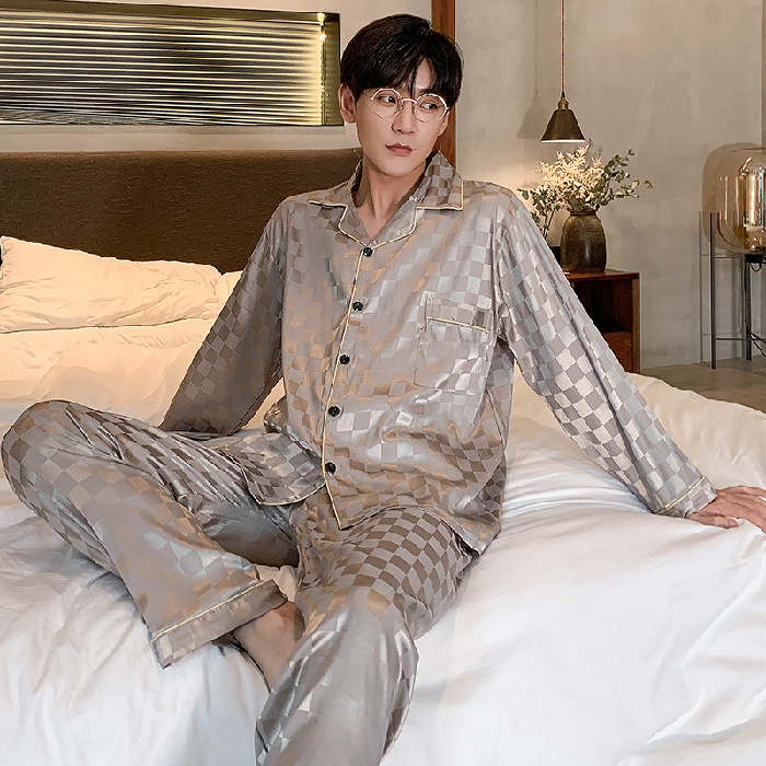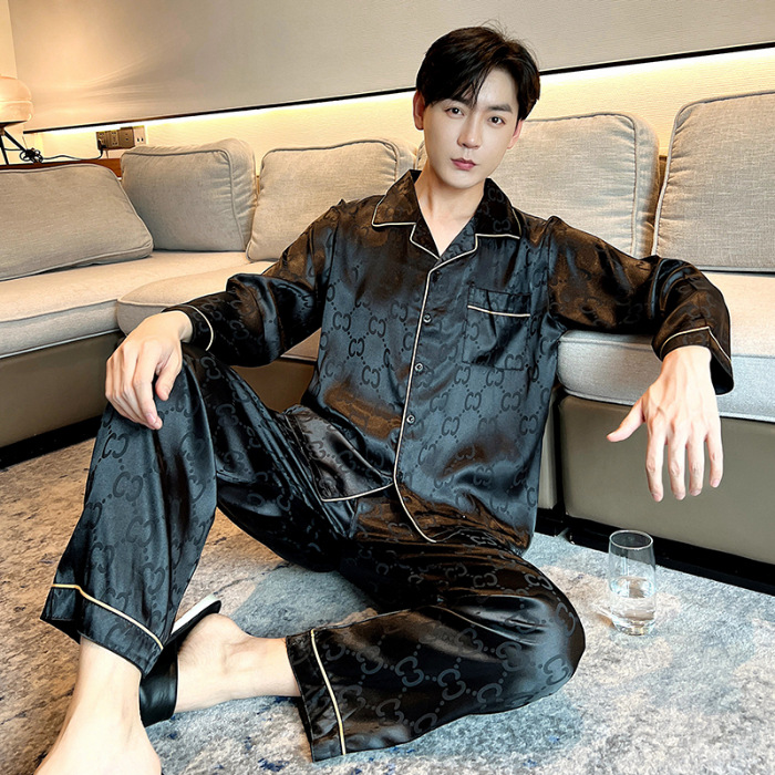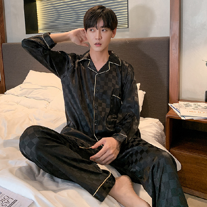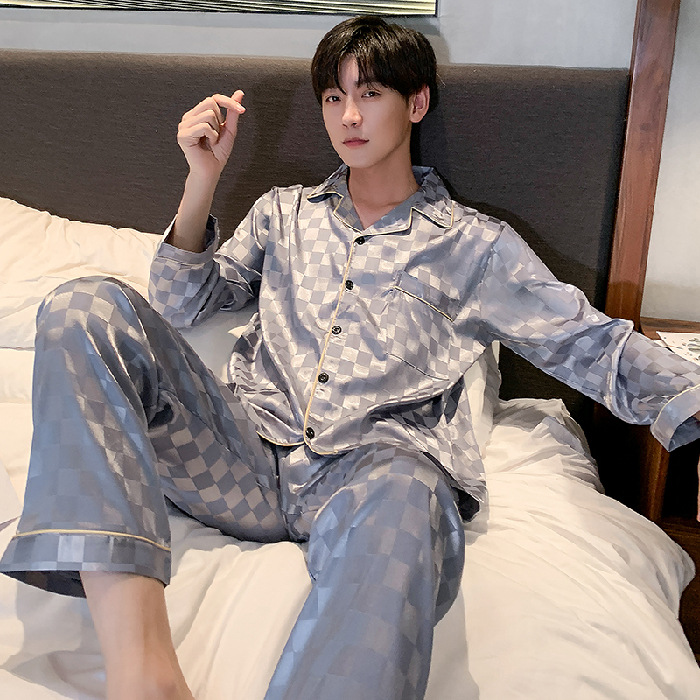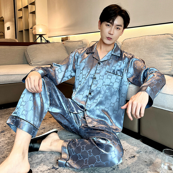 잠옷 남자의 봄과 가을 긴 소매 아이스 실크 플러스 사이즈 200 진 느슨한 간단한 한국식 실크 가정복