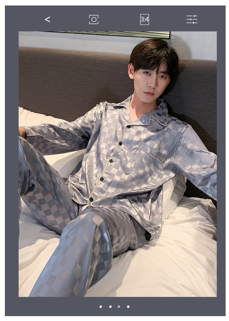 잠옷 남자의 봄과 가을 긴 소매 아이스 실크 플러스 사이즈 200 진 느슨한 간단한 한국식 실크 가정복스토어 가기