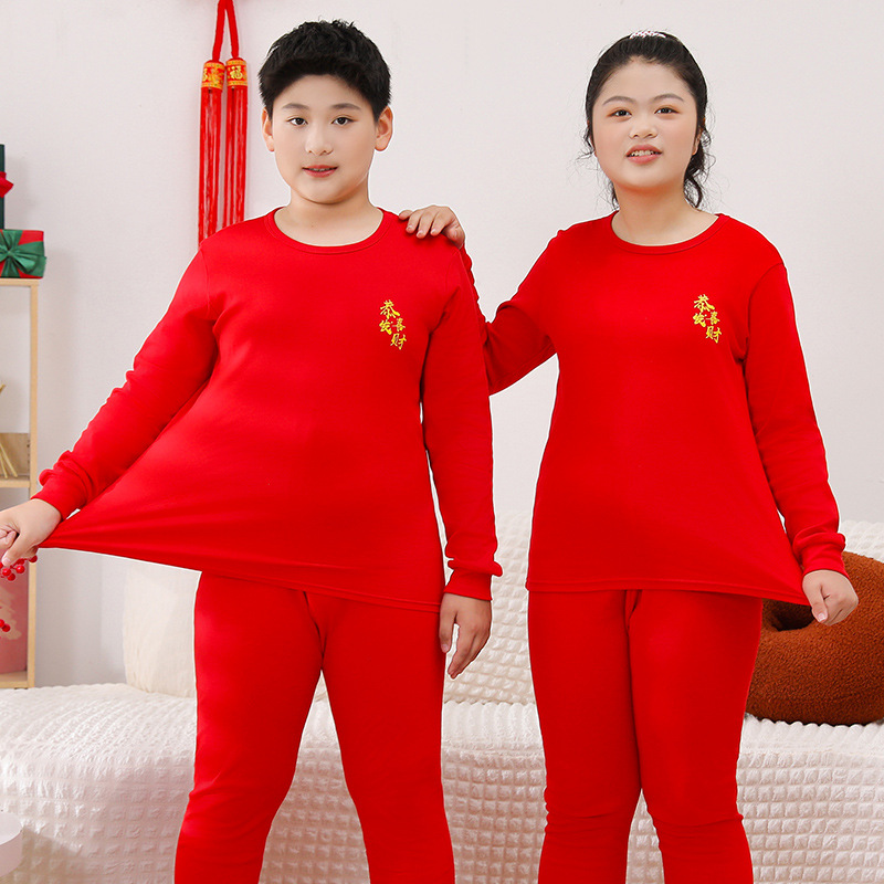 뚱뚱한 어린이 따뜻한 잠옷 순면 소년 속옷 세트 큰 어린이 가을 옷과 긴 바지 여성 플러스 뚱뚱한 바닥면 스웨터 겨울
