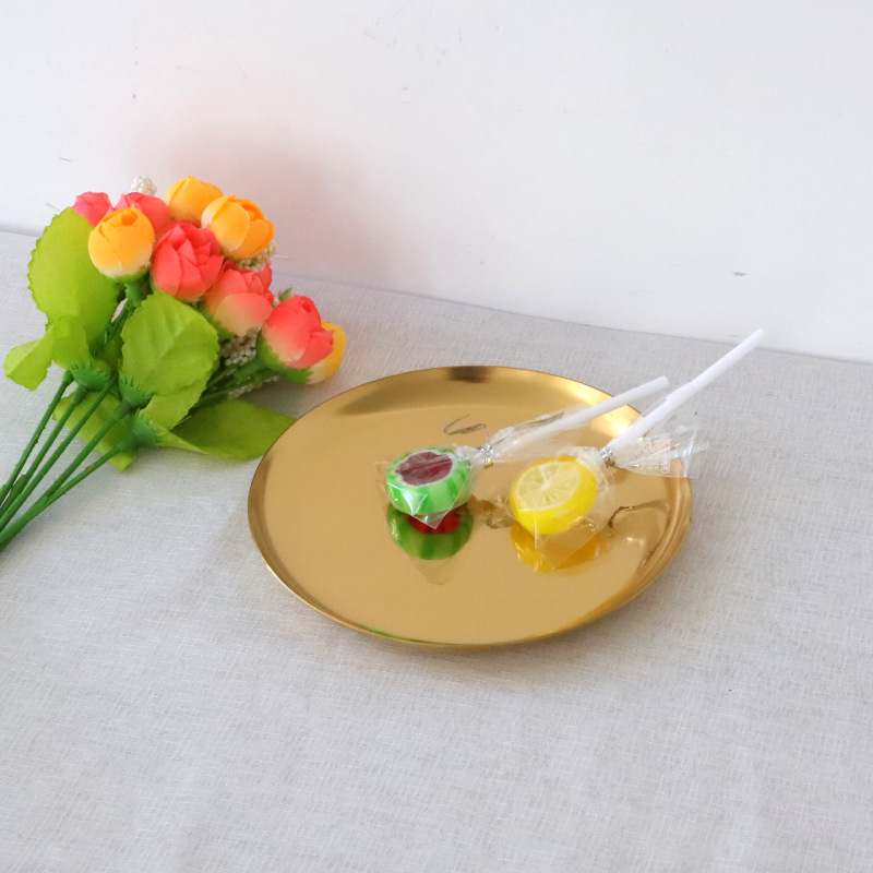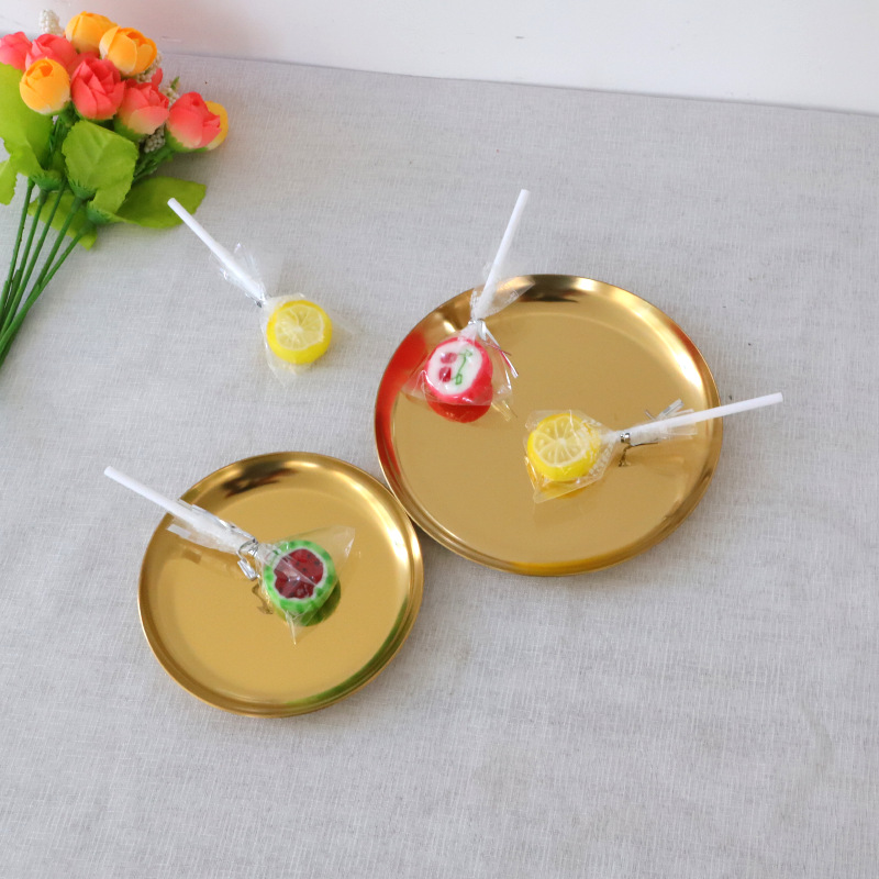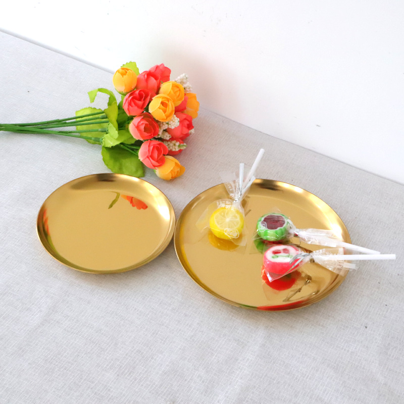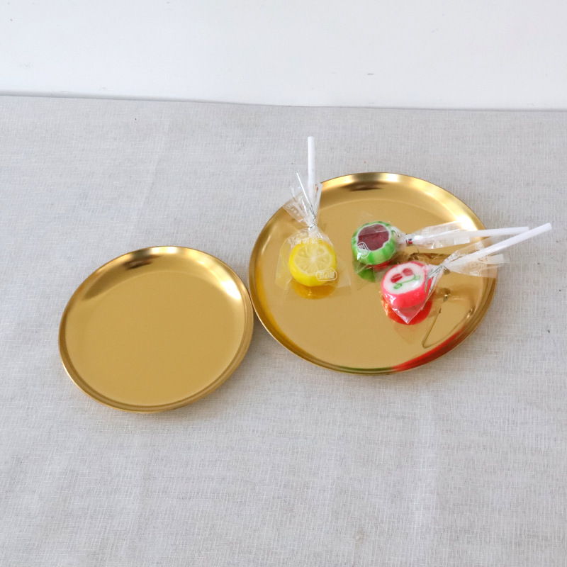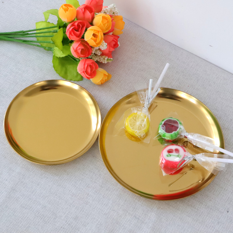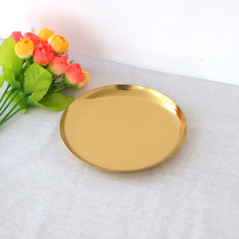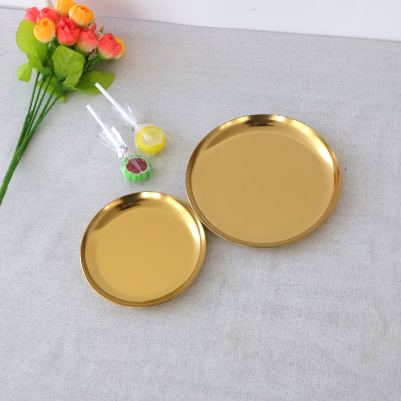골든 스테인레스 스틸 라운드 보관 플레이트 레스토랑 호텔 딤섬 플랫 플레이트 과일 플레이트 한국 얕은 접시 케이크 플레이트 뼈 플레이트