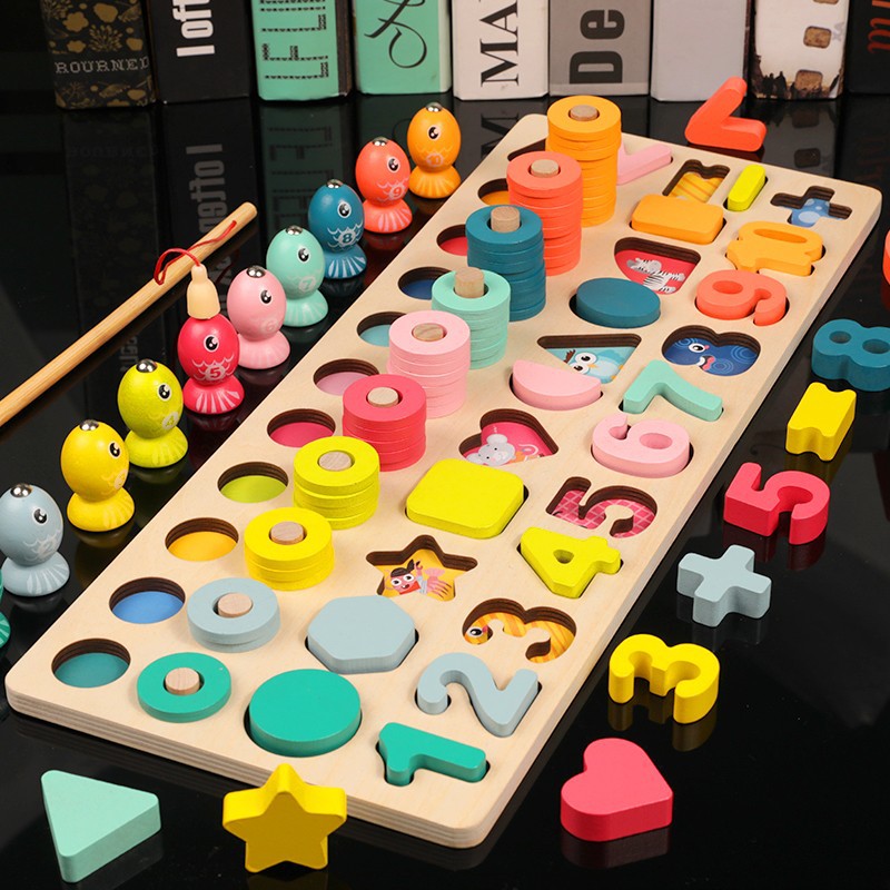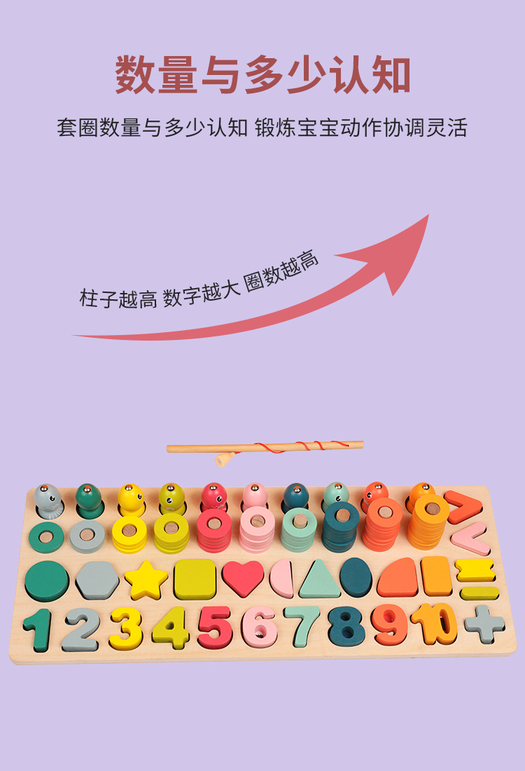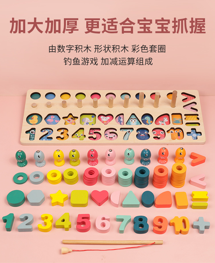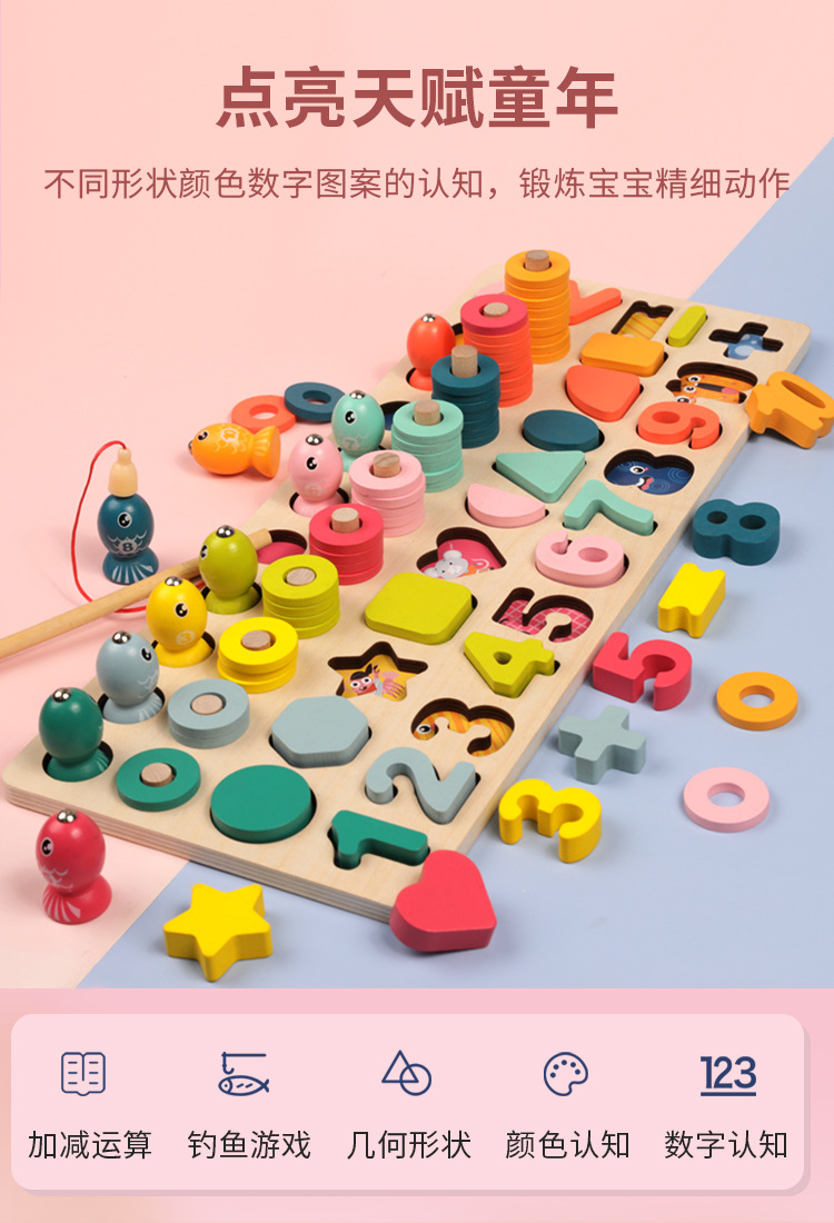 크로스 보더 어린이 색상 분류 마그네틱 낚시 다기능 모양 일치인지 조기 교육 나무 퍼즐 장난감스토어 가기