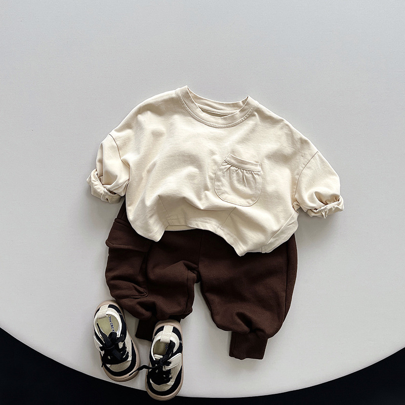 남자 아기 가을 새 티셔츠 여아 긴팔 올매치 솔리드 컬러 탑 아동 한국식 올매치 베이스 셔츠