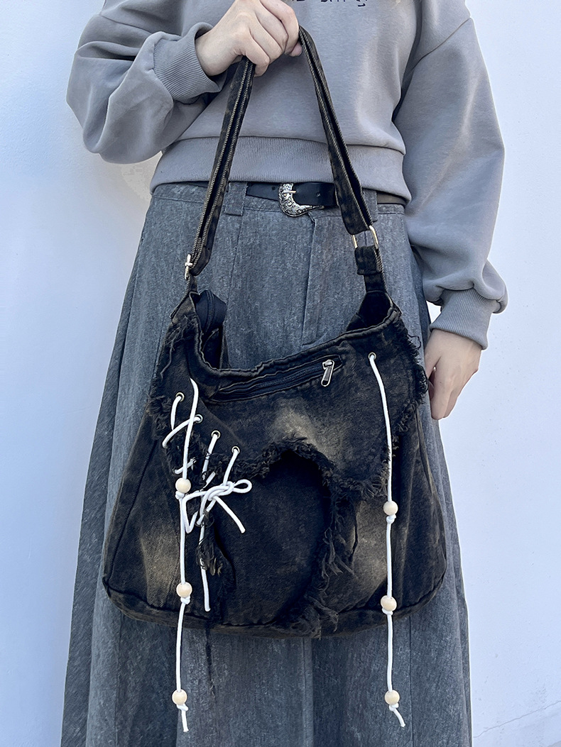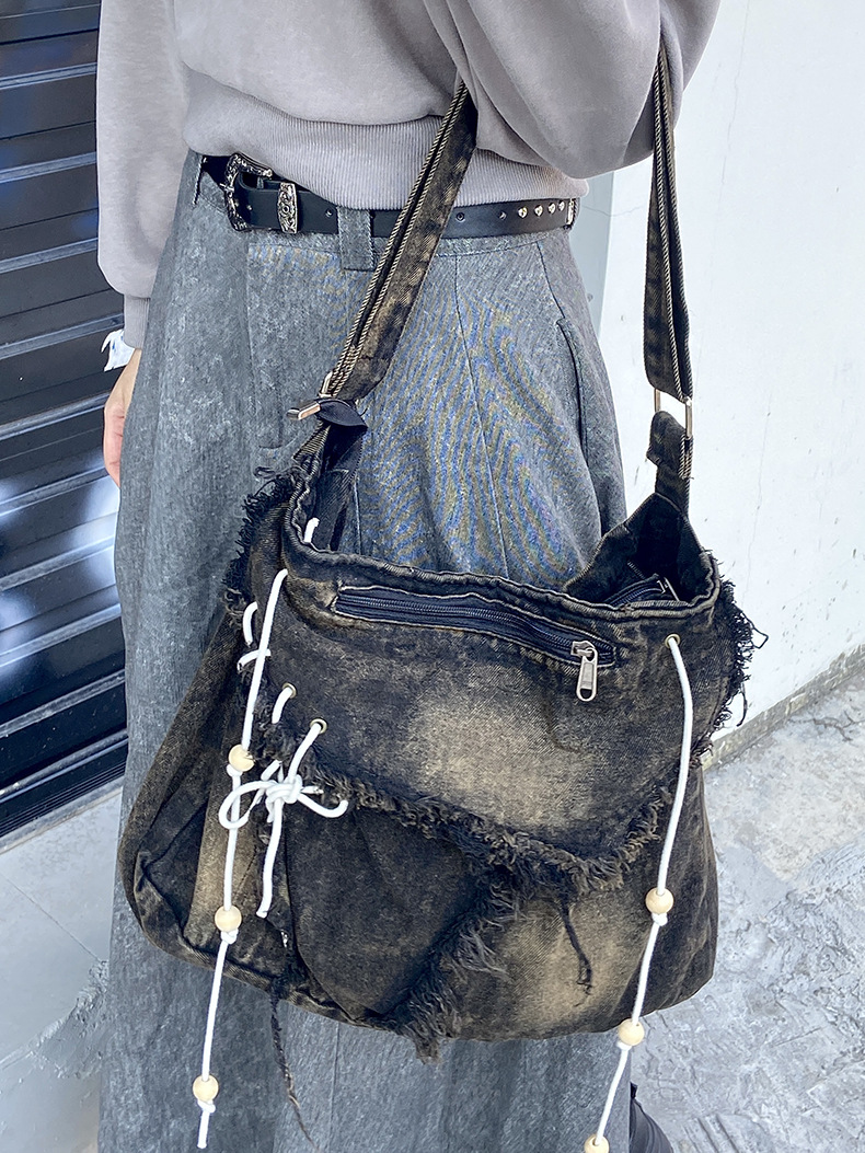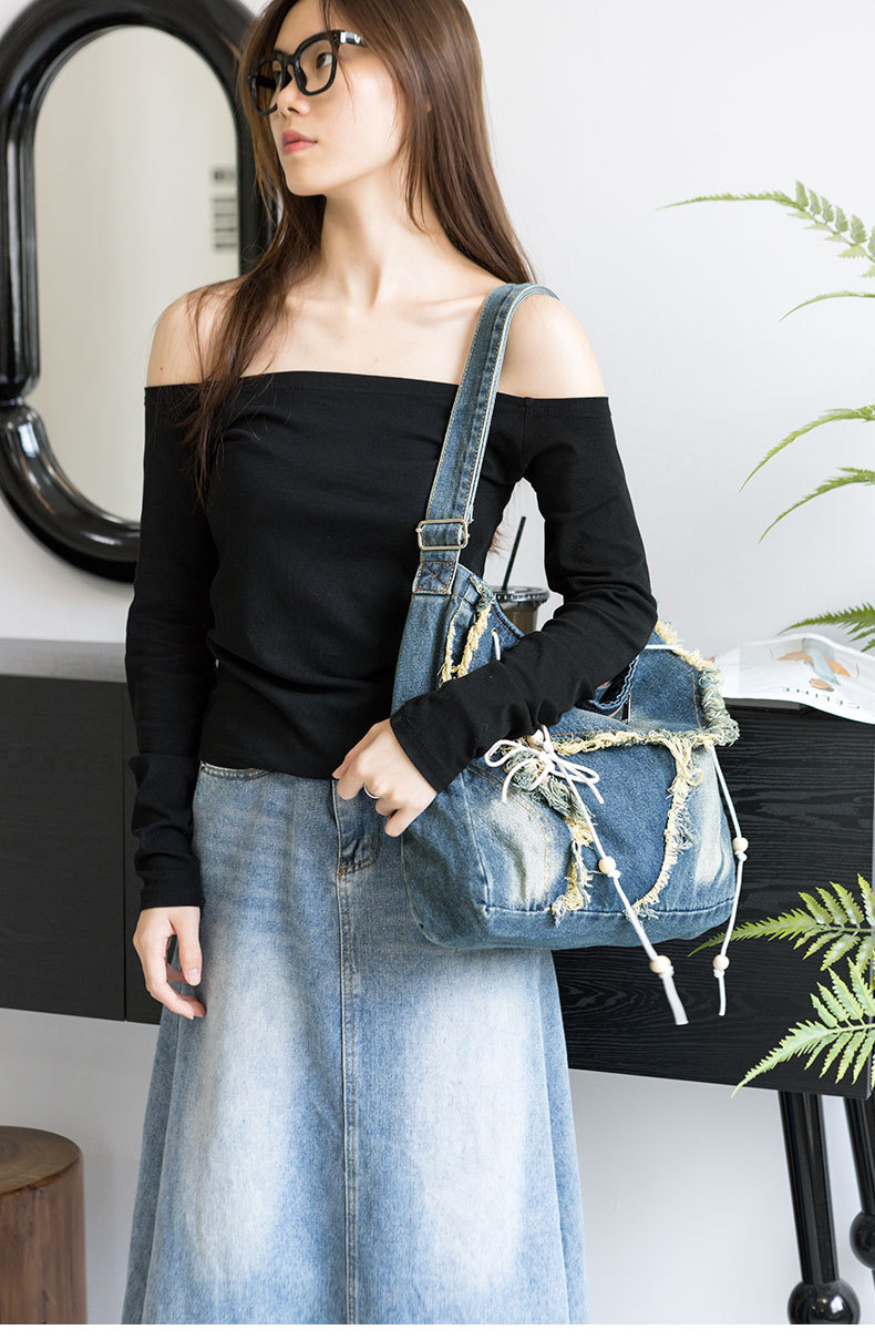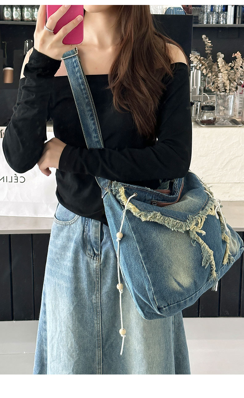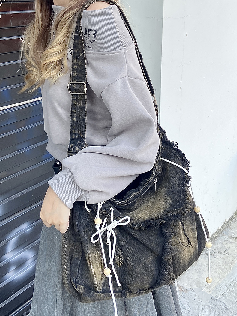 레트로 태슬 캔버스 데님백, 한국형 다용도 메신저백, 대용량 통근 크로스백, 학생 숄더백스토어 가기