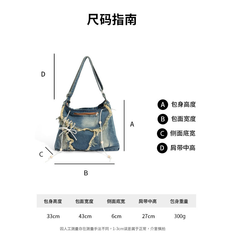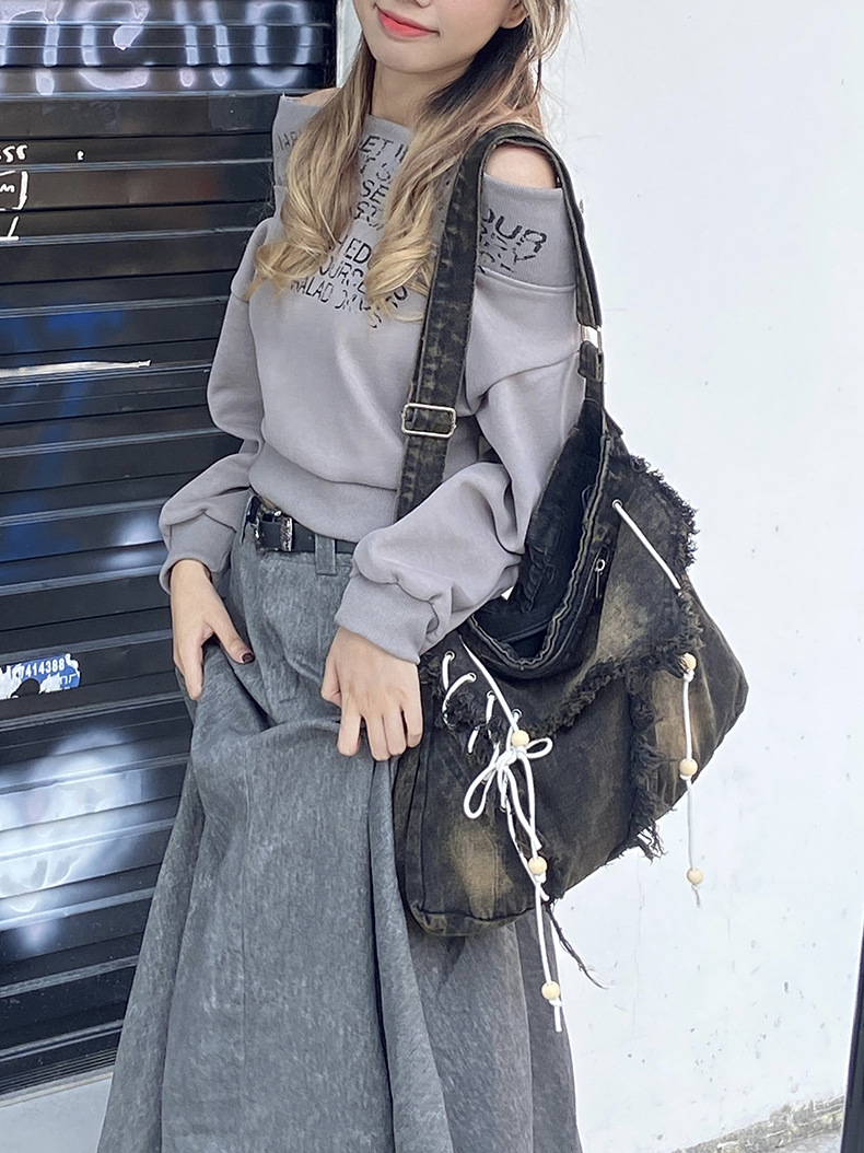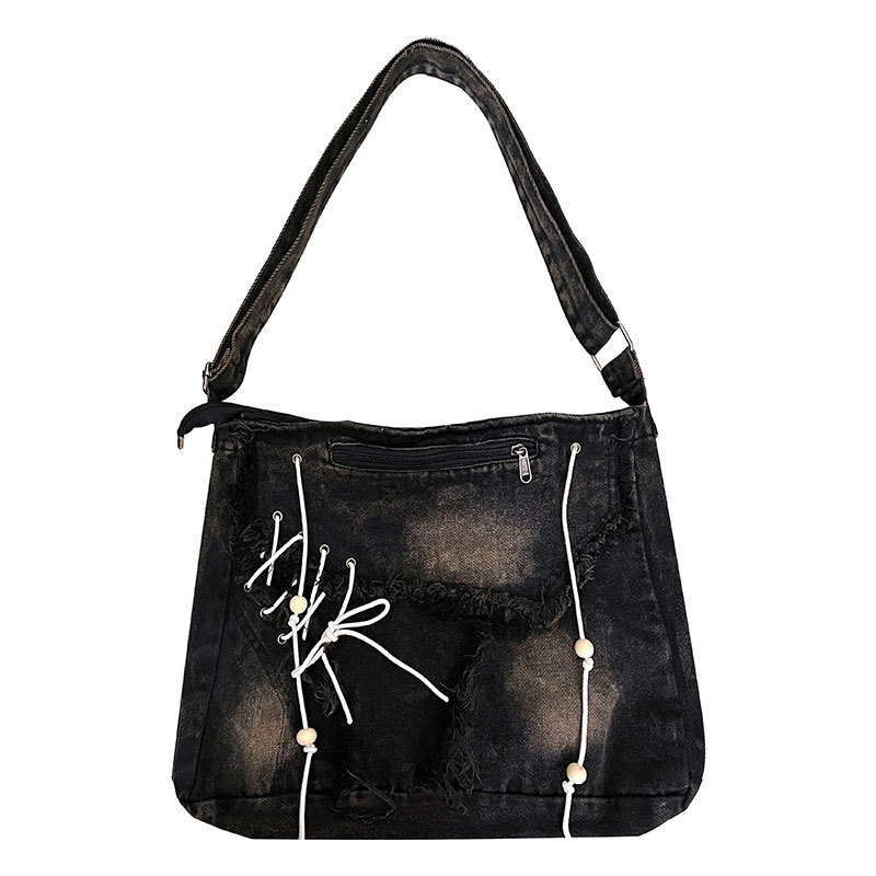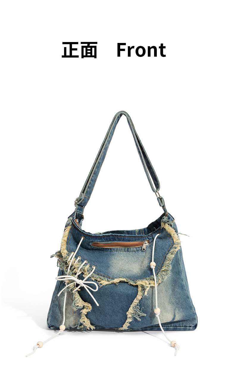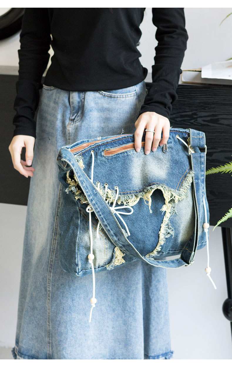 레트로 태슬 캔버스 데님백, 한국형 다용도 메신저백, 대용량 통근 크로스백, 학생 숄더백스토어 가기