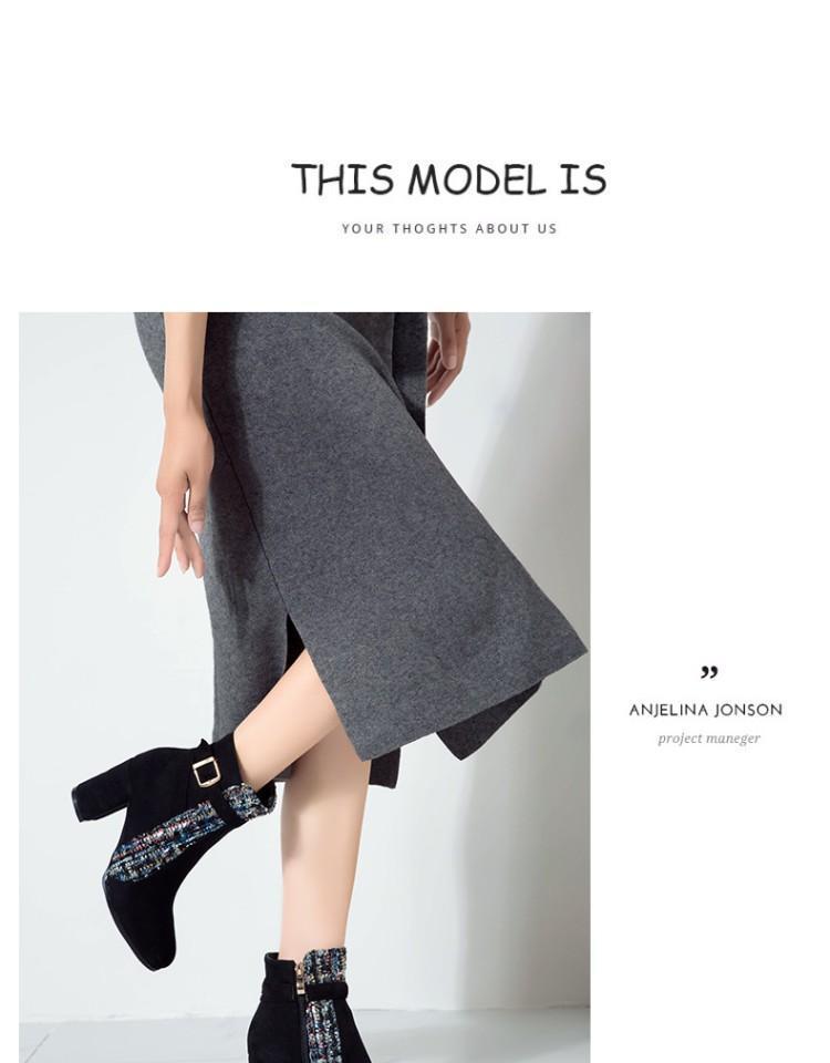2023 봄 새로운 온라인 인기 색상 일치 달콤한 작은 향기로운 스타일 마틴 부츠 모든 일치 두꺼운 뒤꿈치 짧은 부츠 플러스 사이즈 하이힐 여성 신발스토어 가기
