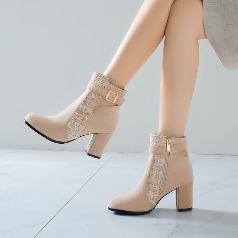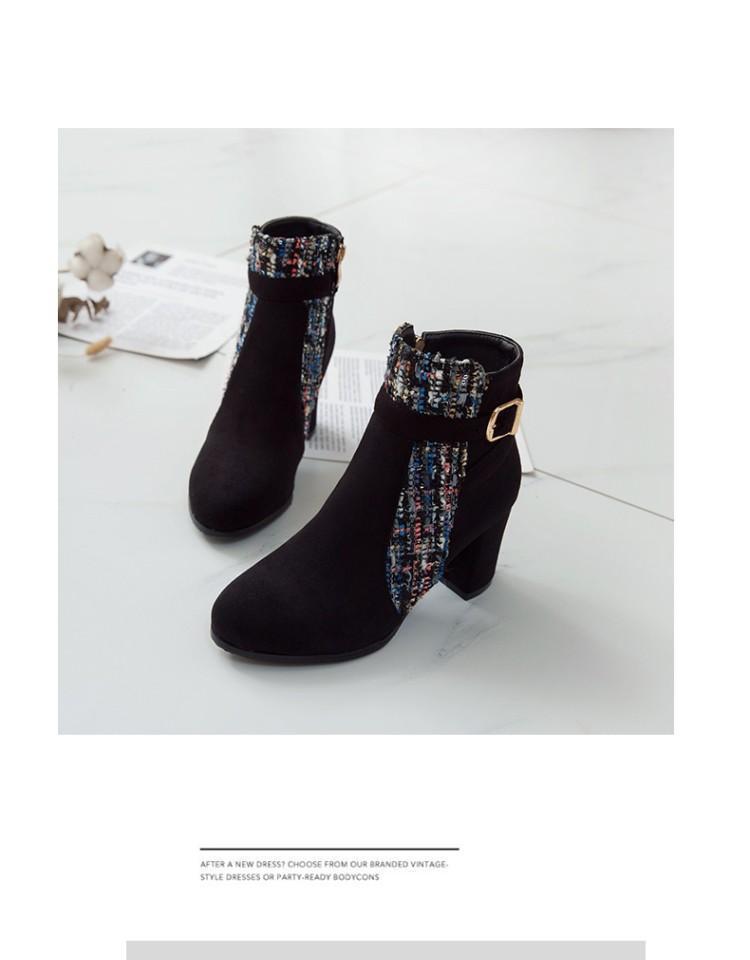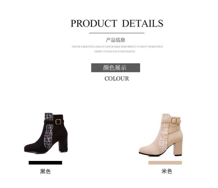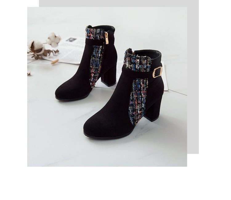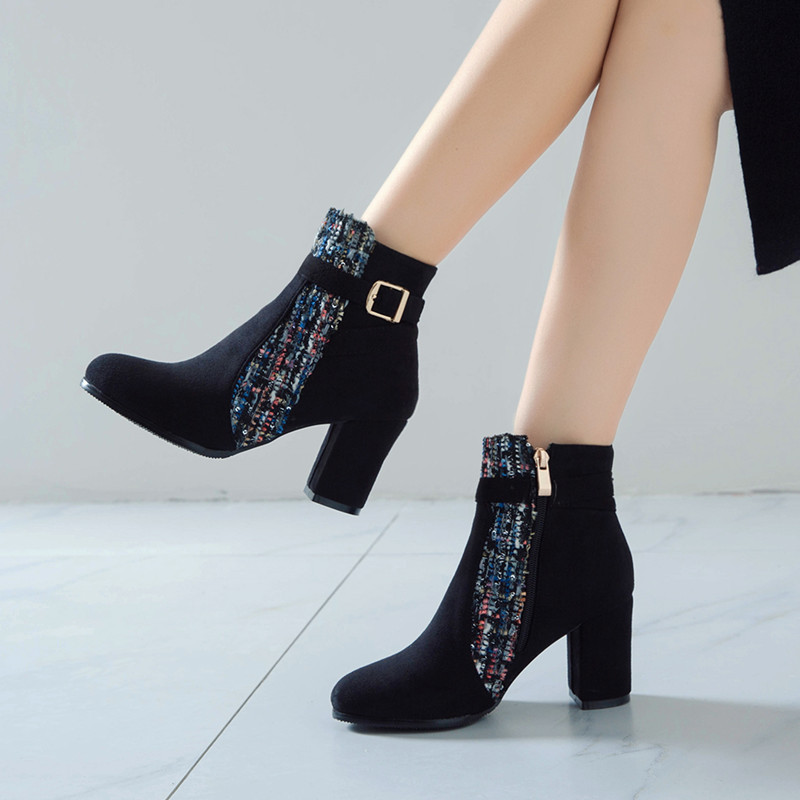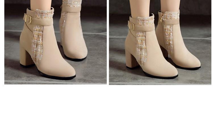 2023 봄 새로운 온라인 인기 색상 일치 달콤한 작은 향기로운 스타일 마틴 부츠 모든 일치 두꺼운 뒤꿈치 짧은 부츠 플러스 사이즈 하이힐 여성 신발