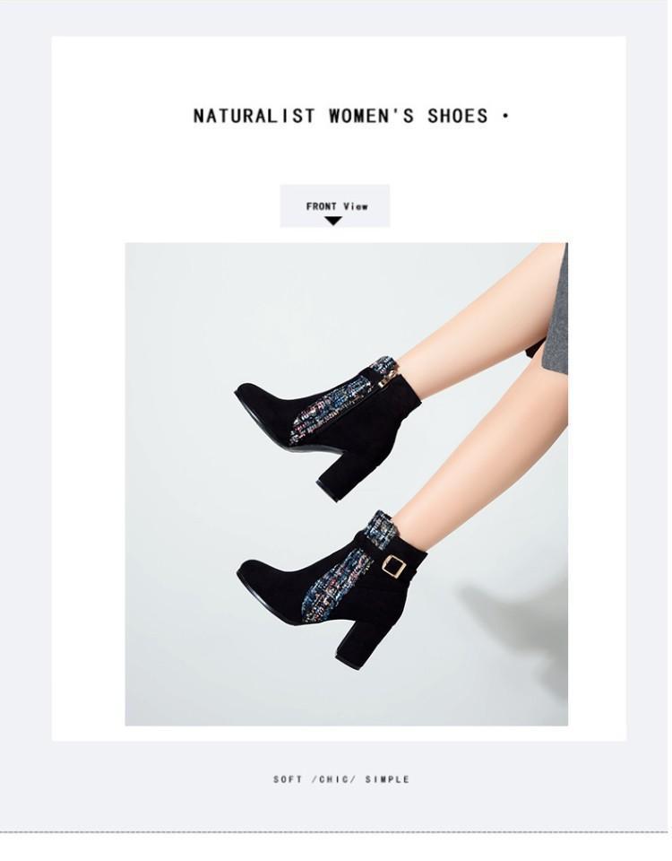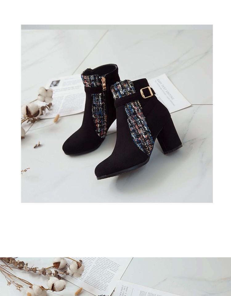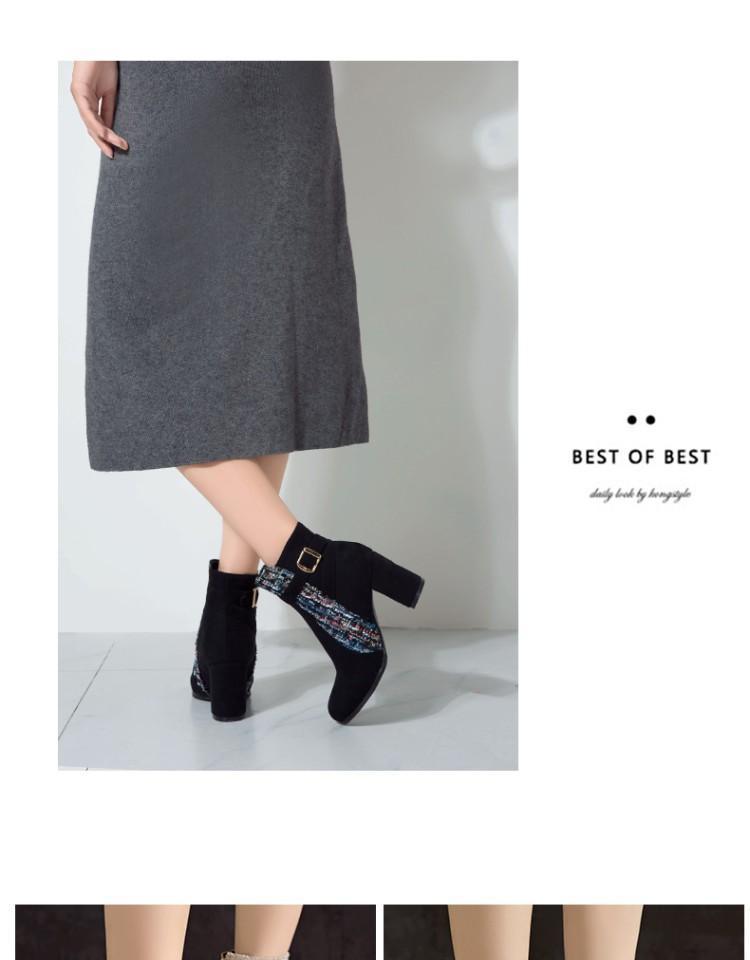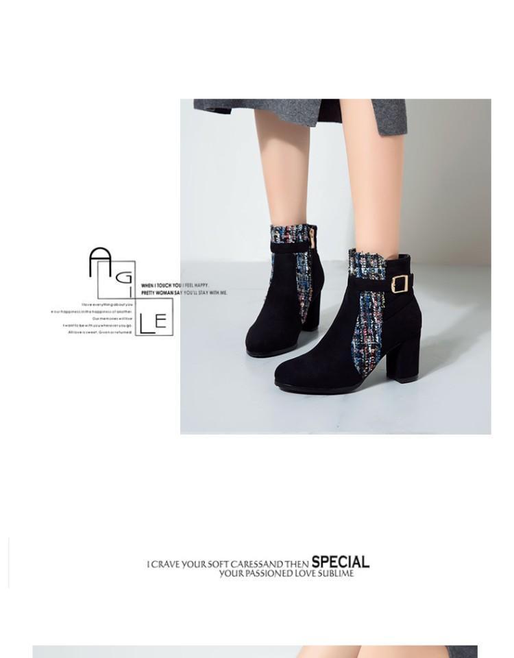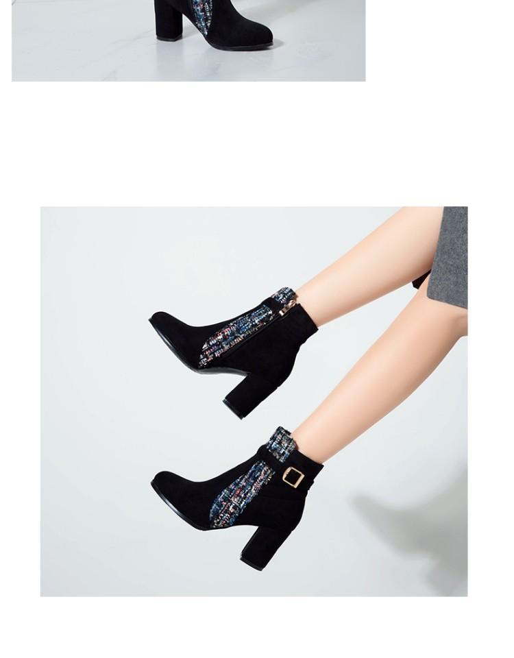 2023 봄 새로운 온라인 인기 색상 일치 달콤한 작은 향기로운 스타일 마틴 부츠 모든 일치 두꺼운 뒤꿈치 짧은 부츠 플러스 사이즈 하이힐 여성 신발