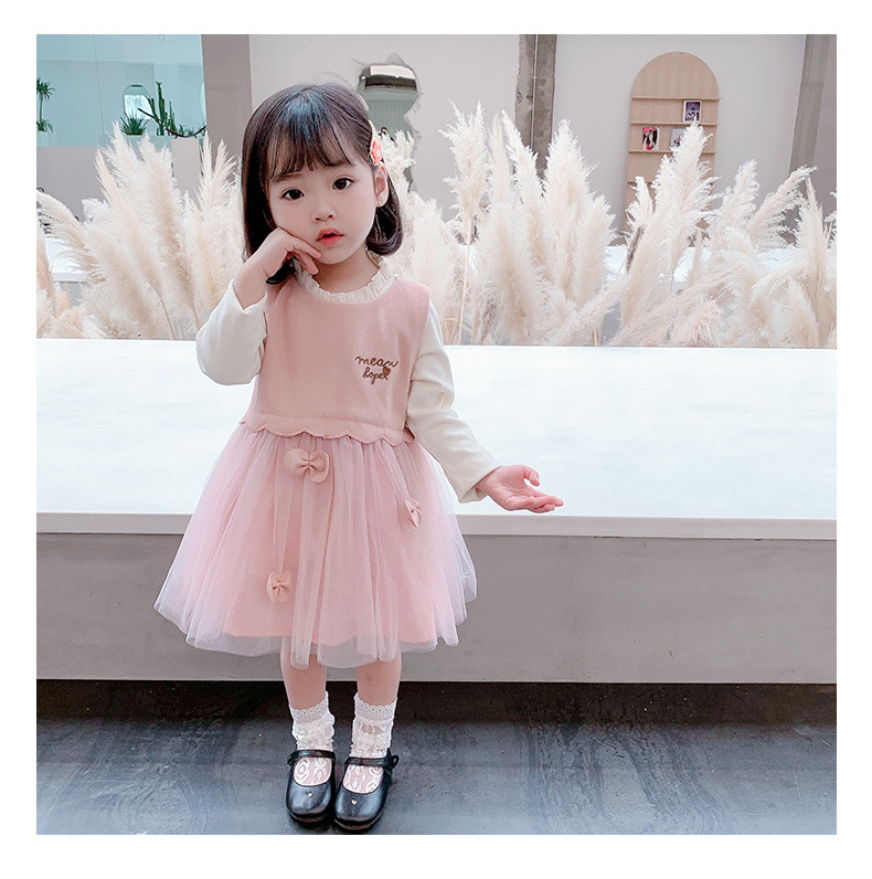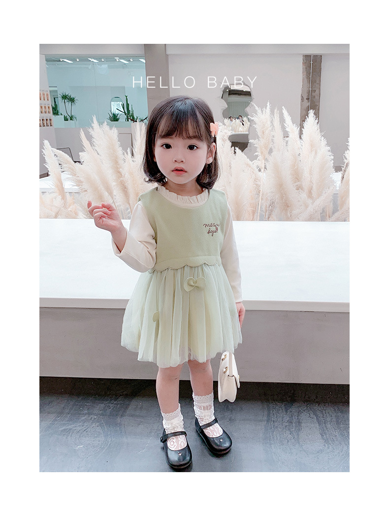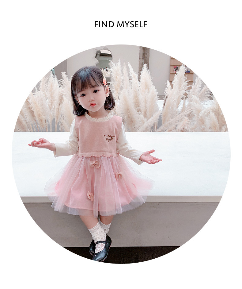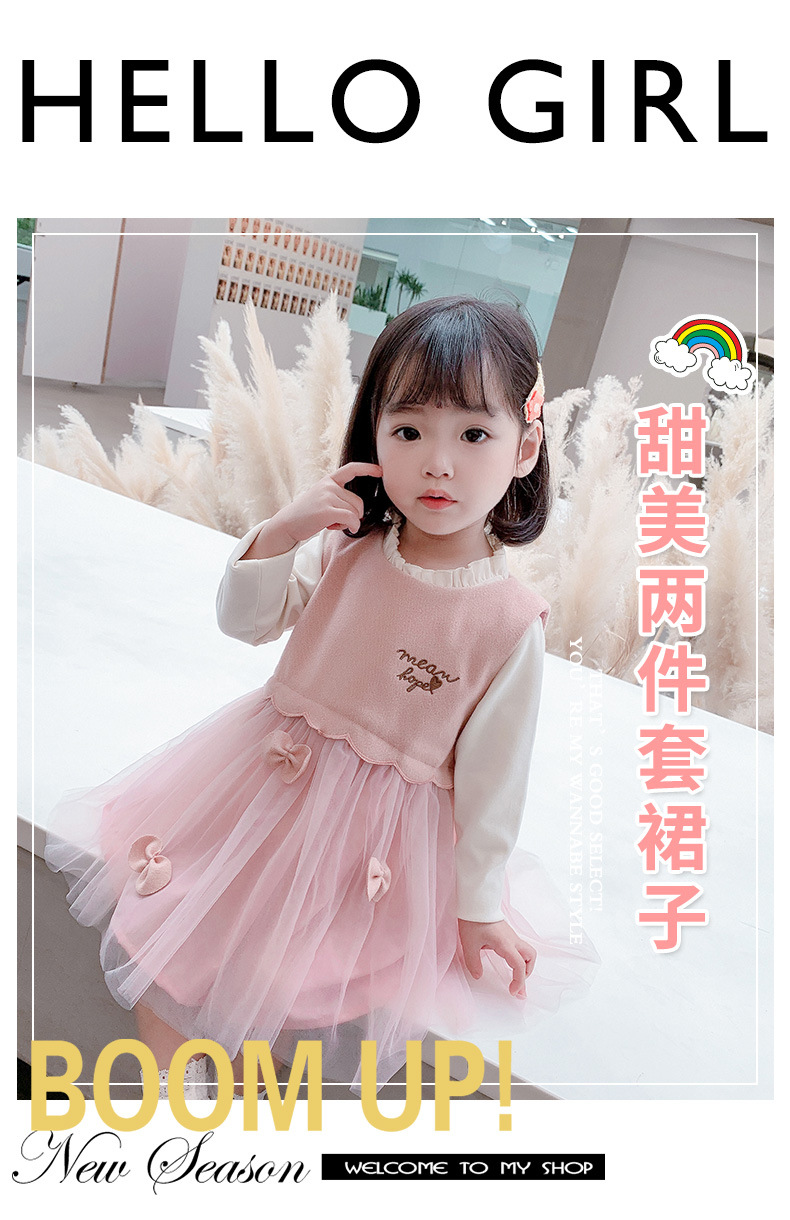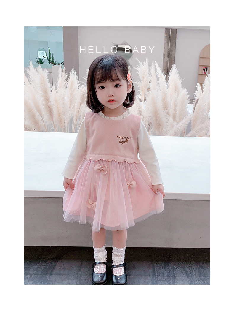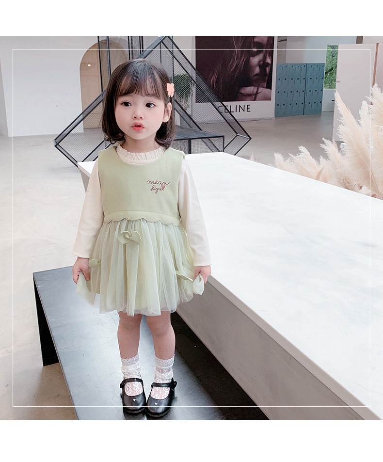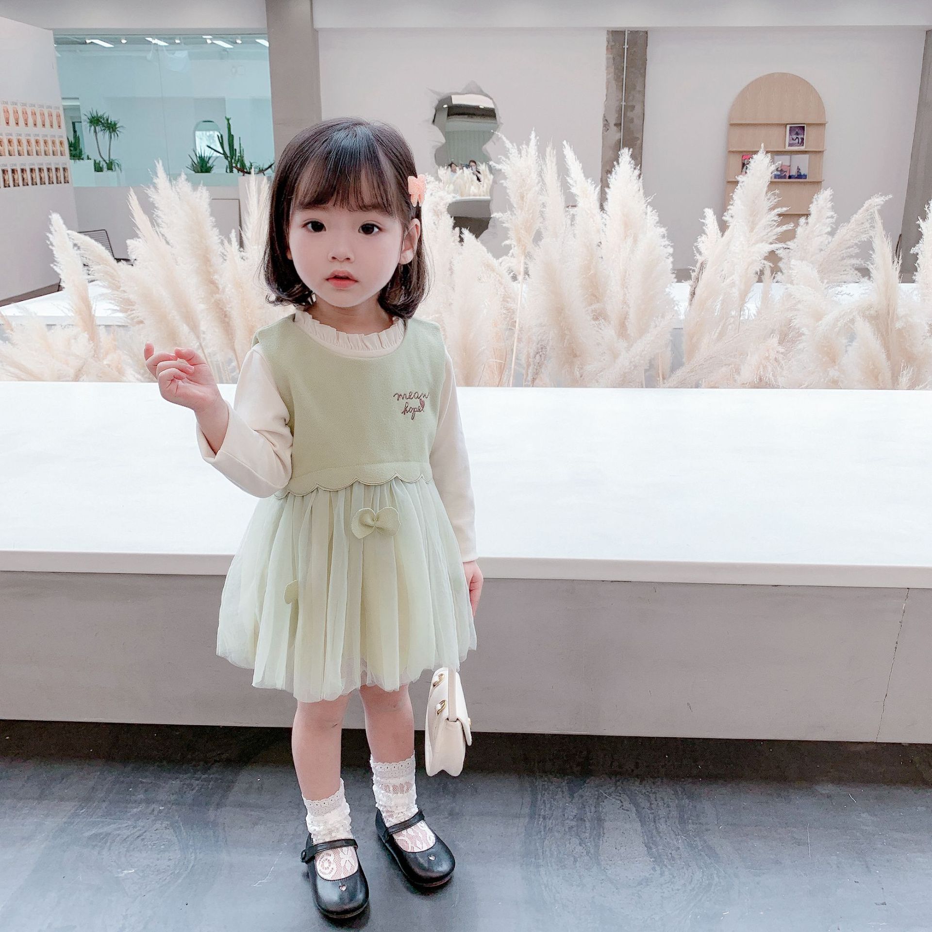 봄 가을 신상품 세트 2026 아동용 세련된 여아 레이스 베이스 셔츠와 리본 거즈 스커트 투피스 세트 도매스토어 가기