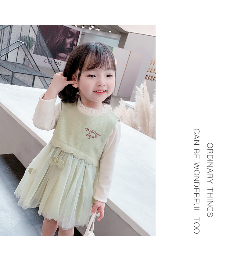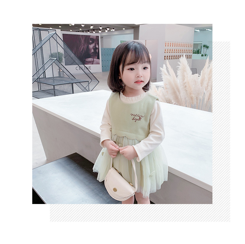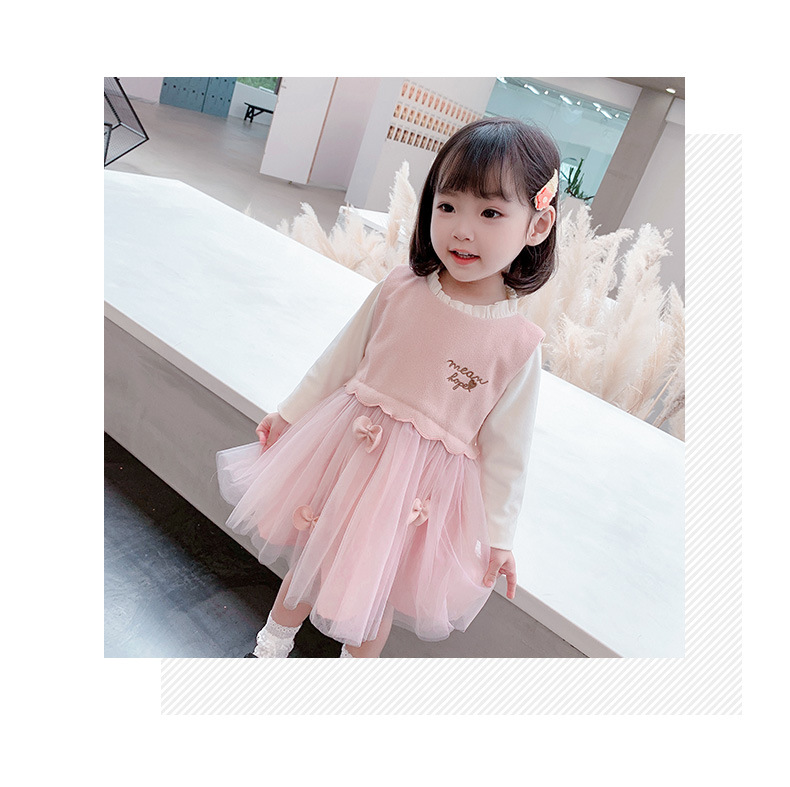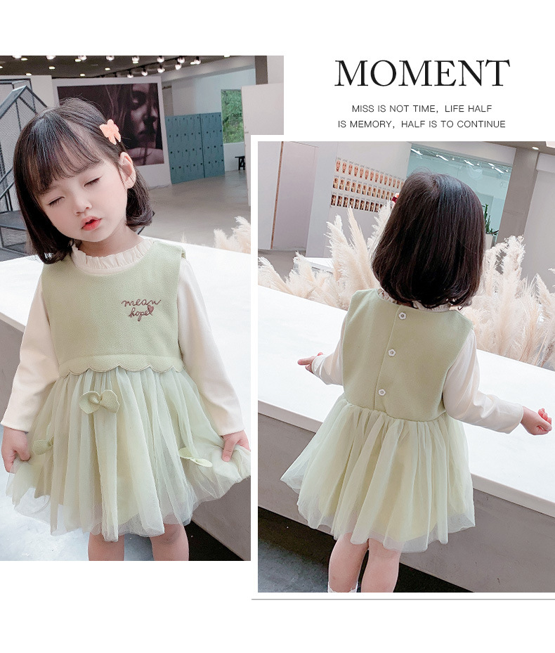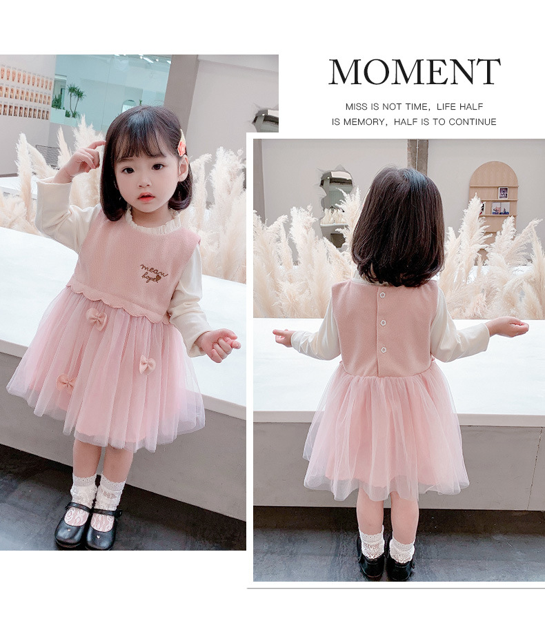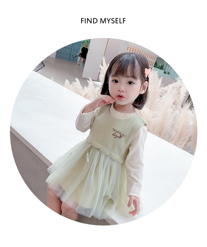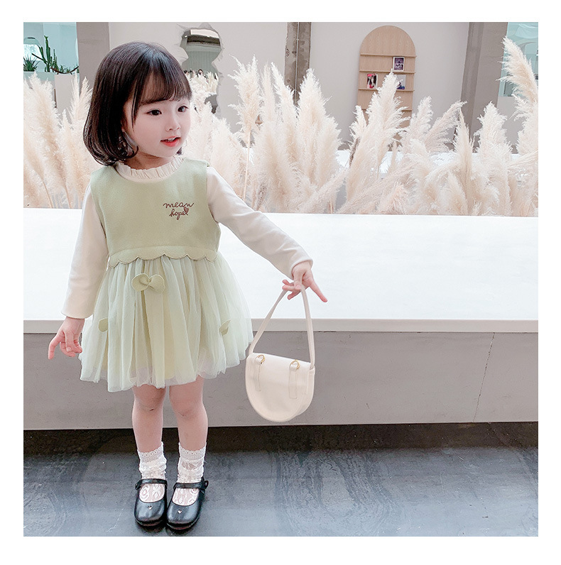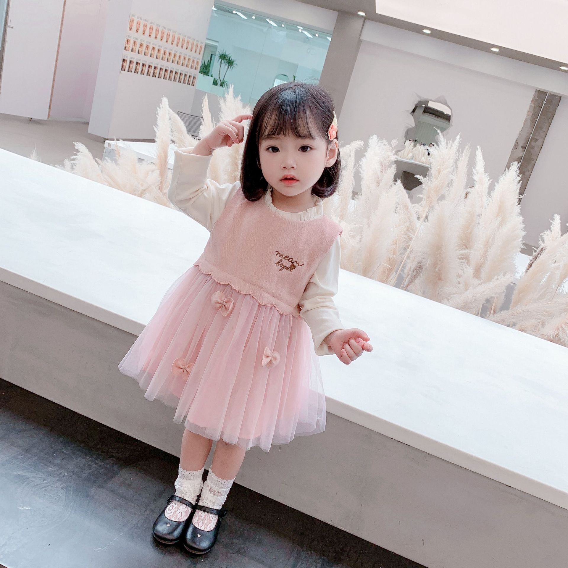 봄 가을 신상품 세트 2026 아동용 세련된 여아 레이스 베이스 셔츠와 리본 거즈 스커트 투피스 세트 도매스토어 가기