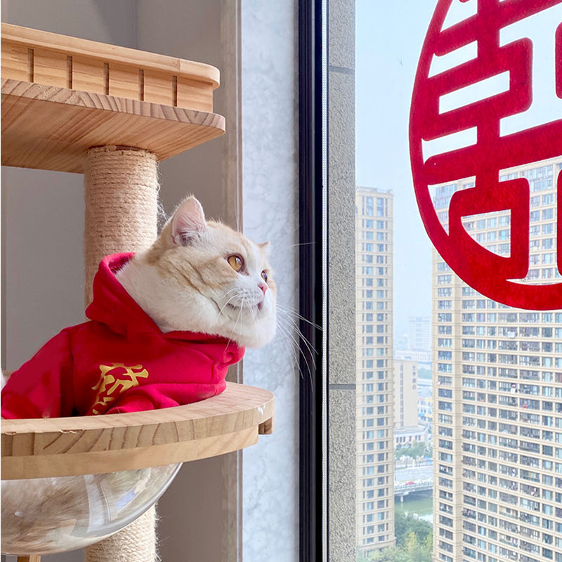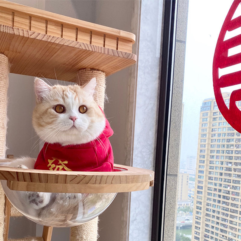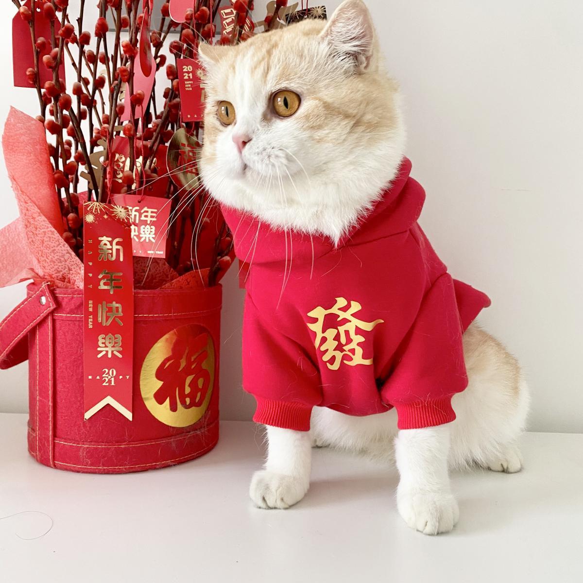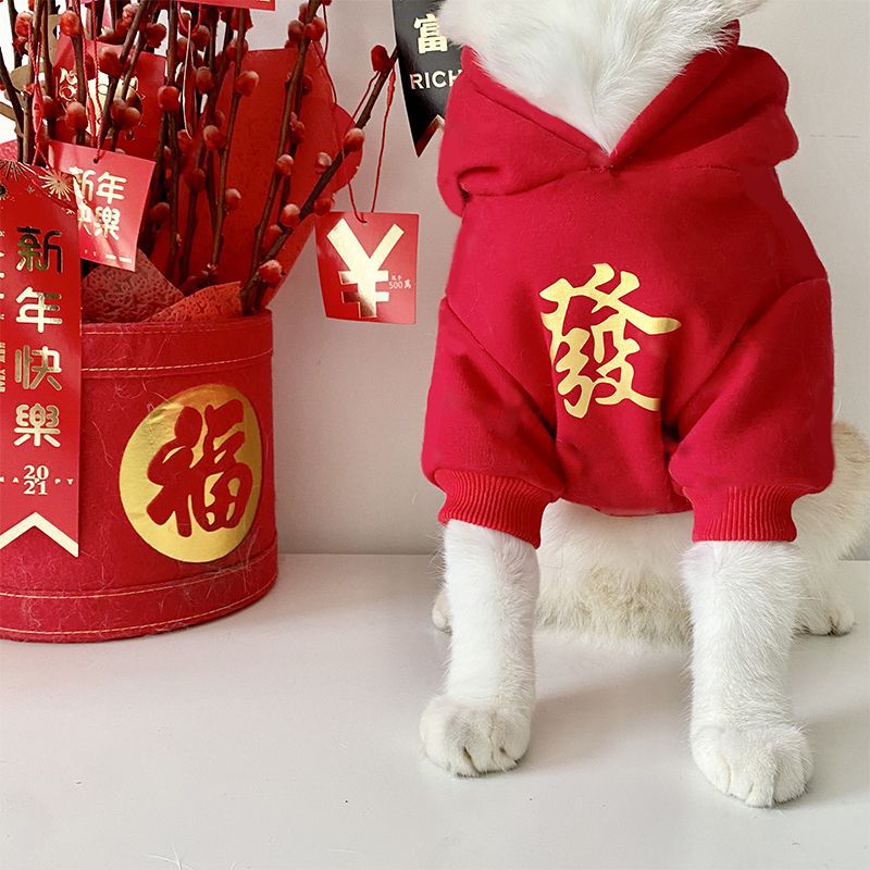 벨벳 안감 두꺼운 고양이 옷, 새해맞이 애완동물 래그돌, 영국산 쇼트헤어 새끼 고양이용 빨간색 축제 가을 겨울 의류 도매, 새해 모델스토어 가기