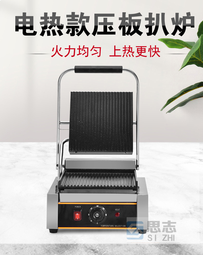 프레스 플레이트 스트라이프 스테이크 튀김 기계 KFC 파니니 기계 이탈리아 샌드위치 전기 스테이크 공장 도매스토어 가기