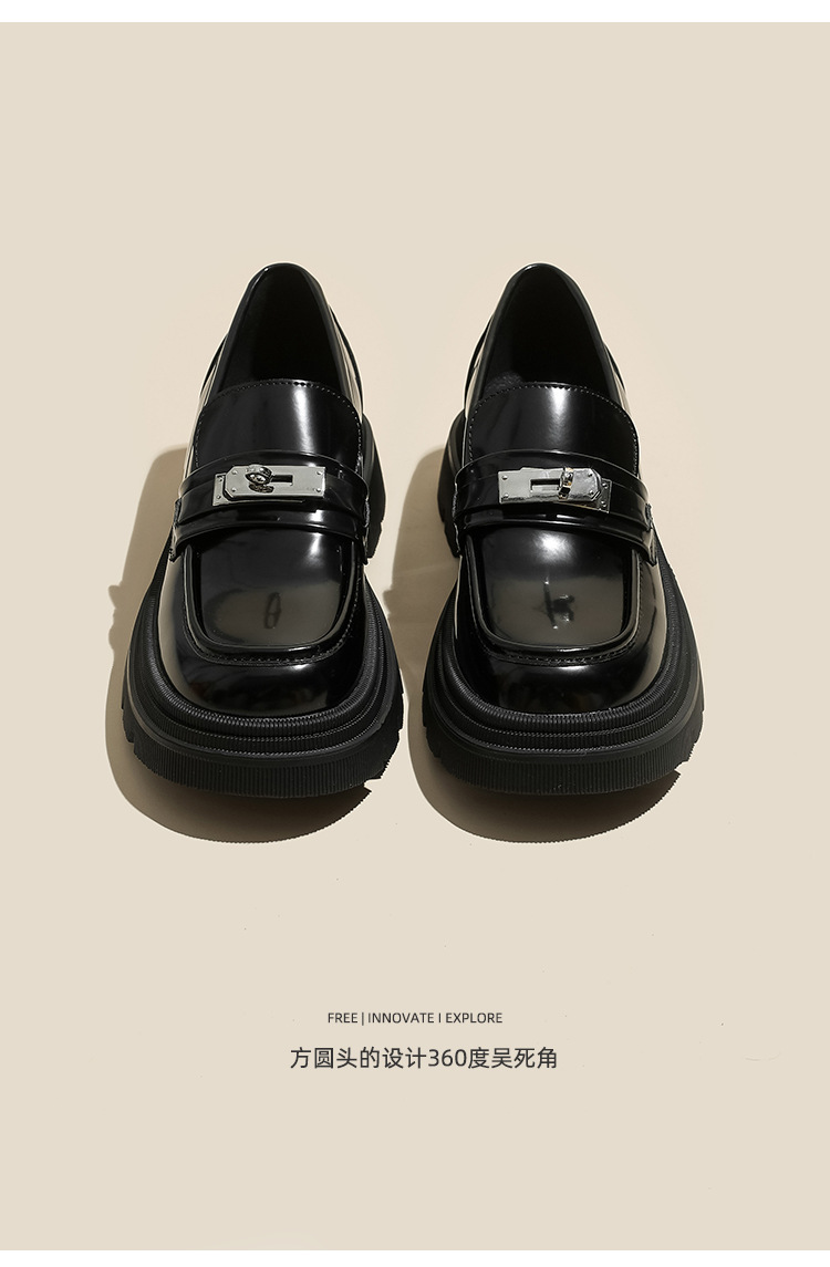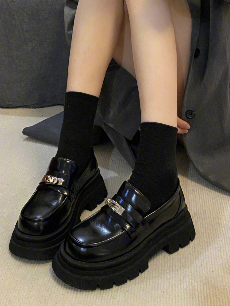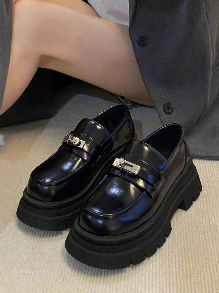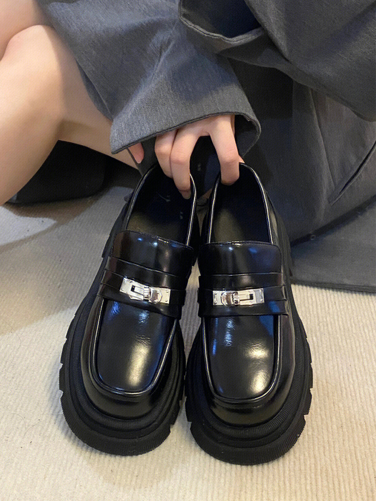 [Puran Lika] 틈새 디자인 센스 블랙 두꺼운 밑창 증가 로퍼 여성의 새로운 영국 스타일 싱글 신발 여성