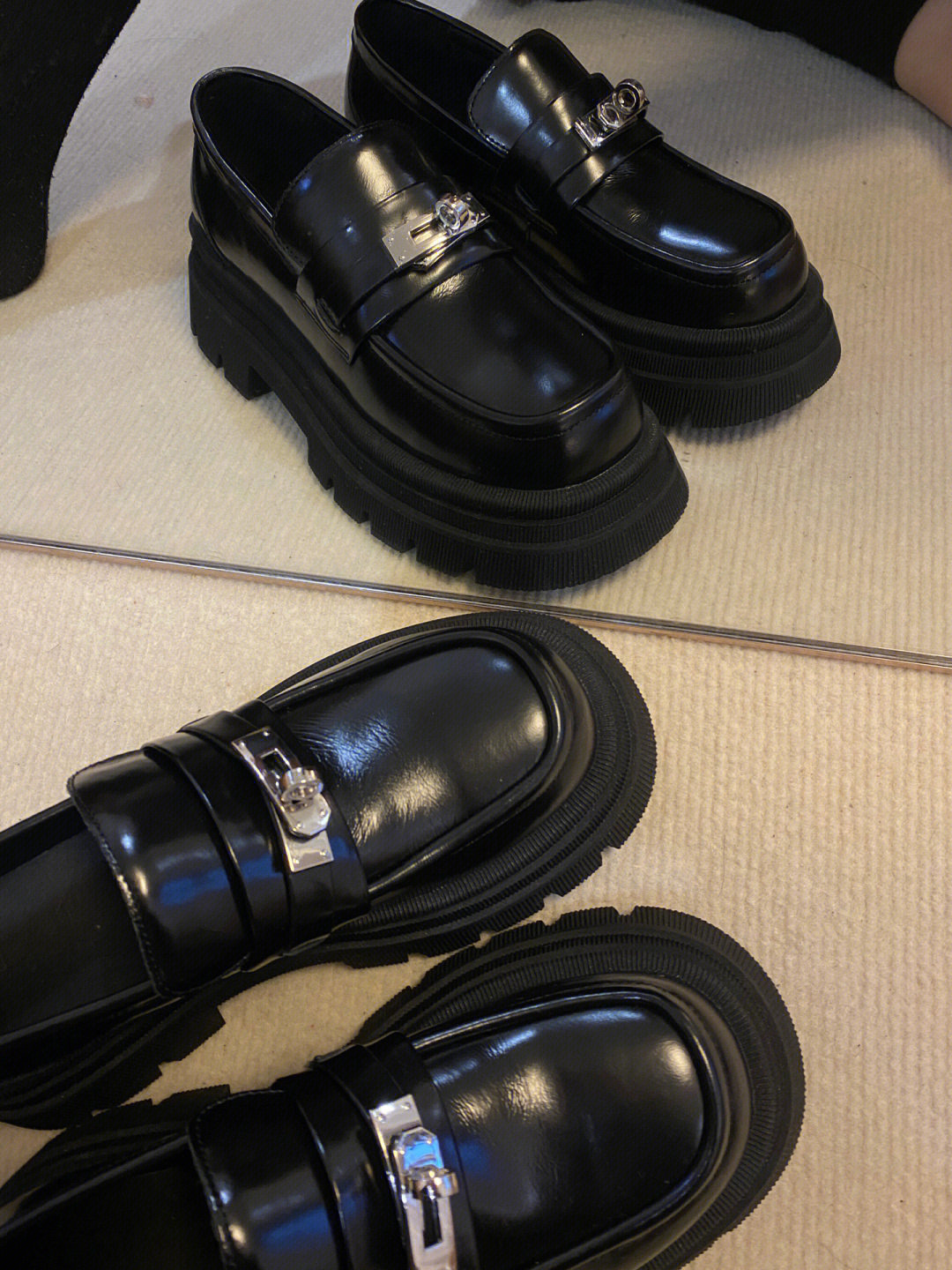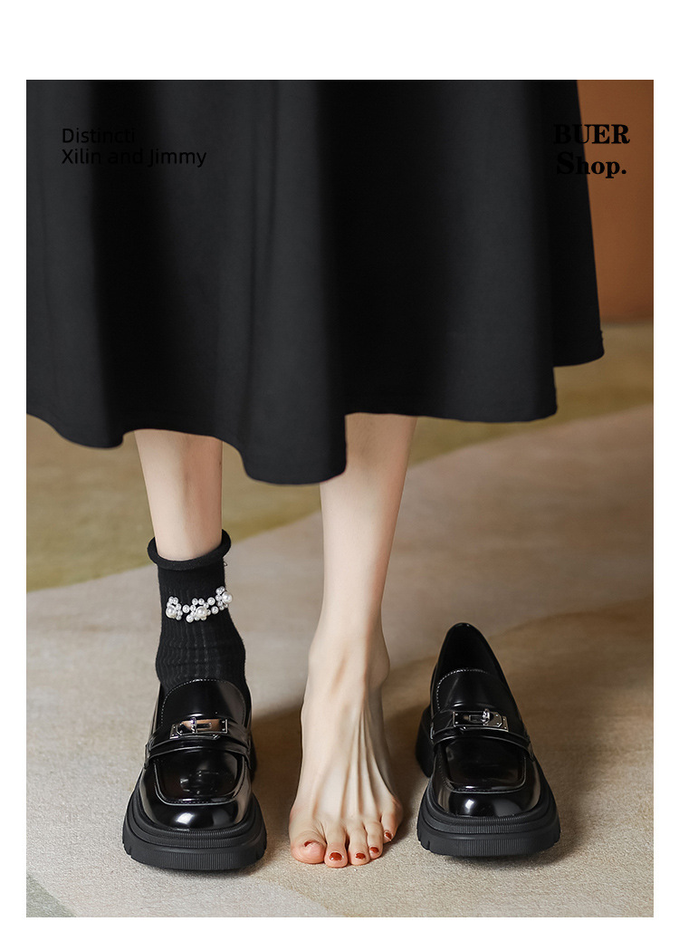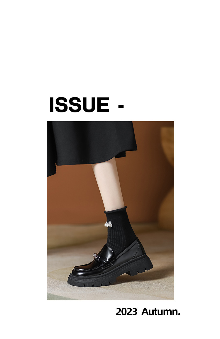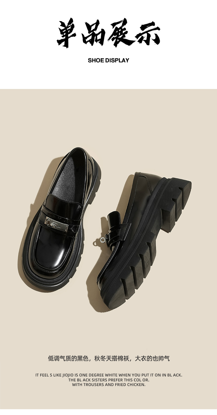 [Puran Lika] 틈새 디자인 센스 블랙 두꺼운 밑창 증가 로퍼 여성의 새로운 영국 스타일 싱글 신발 여성스토어 가기