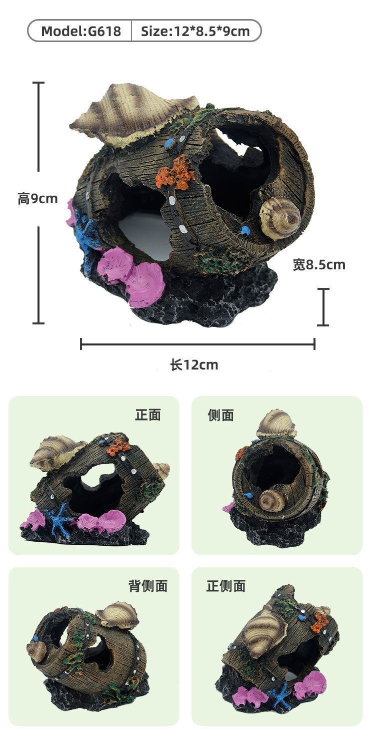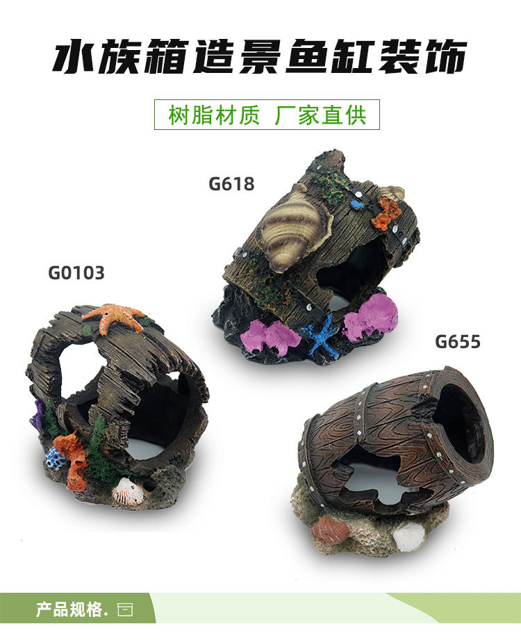 수족관 어항 풍경 장식 수지 회피 배럴 새우 물고기 거북이 회피 배럴 공예 장식품 공장 직접 공급