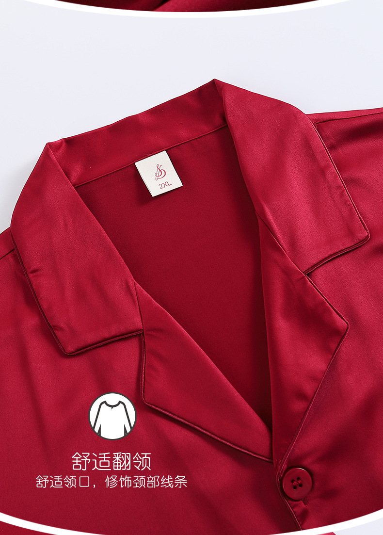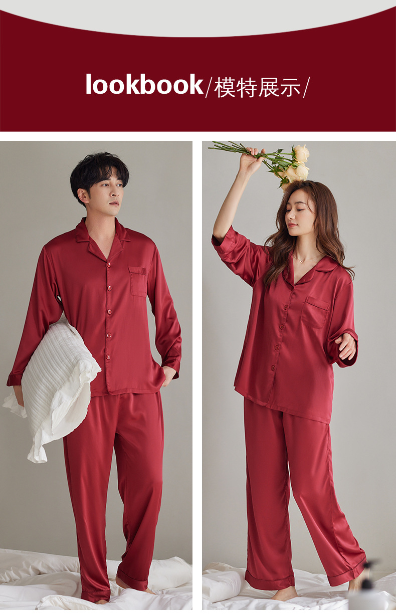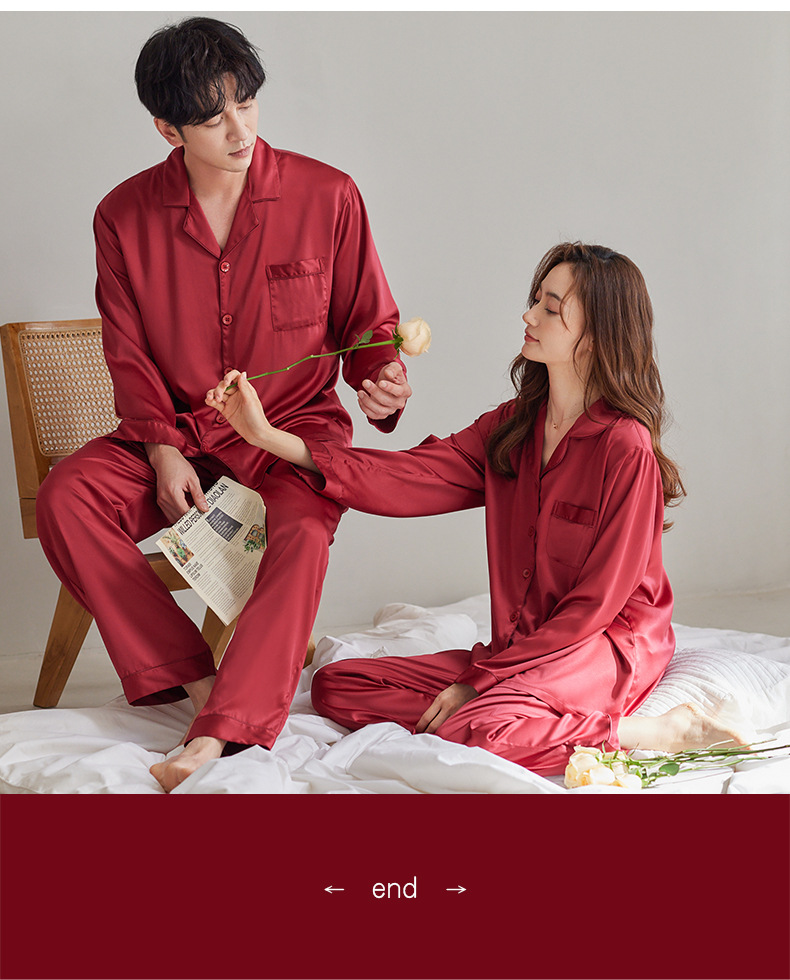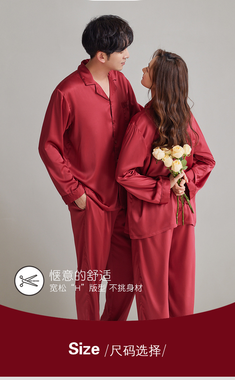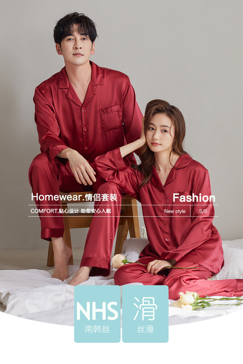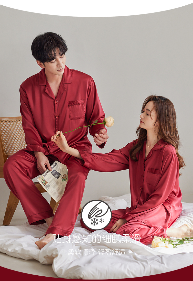 여성용 잠옷 봄, 가을 얼음 실크 레드 웨딩 신혼 홈웨어 여름 남성 정장 실크 커플 잠옷스토어 가기