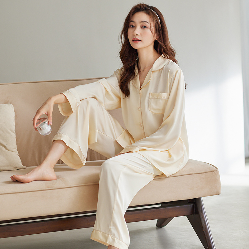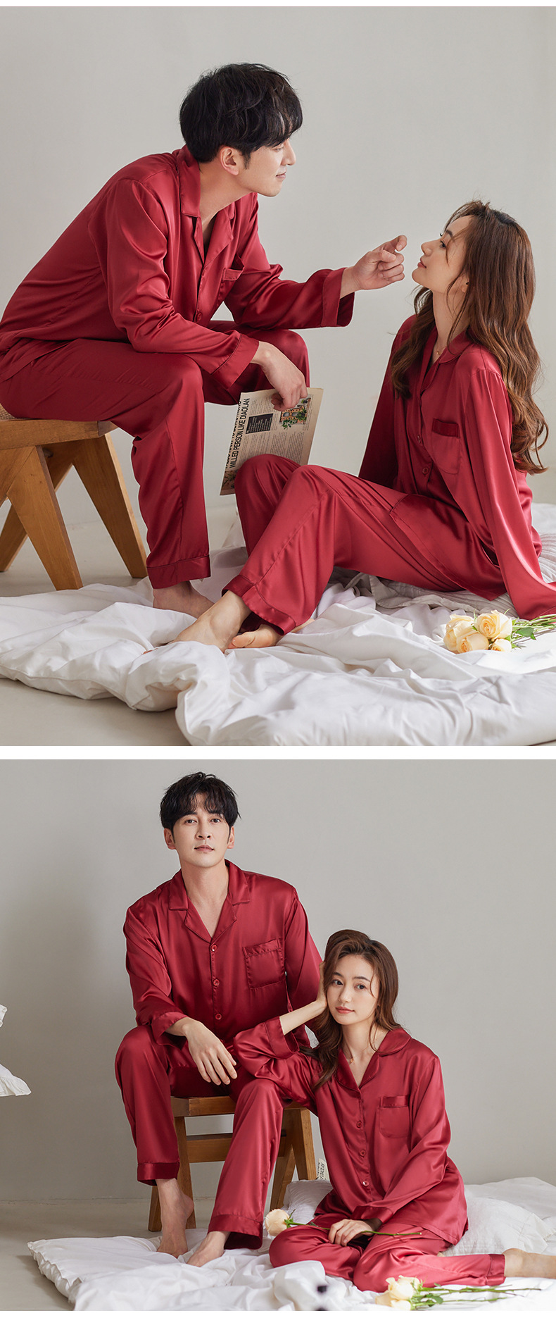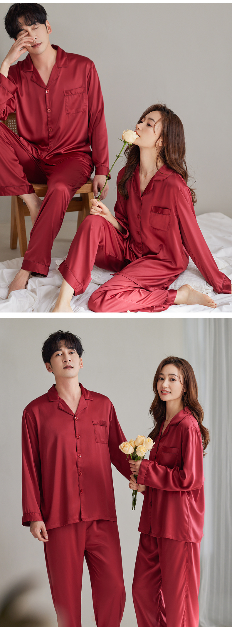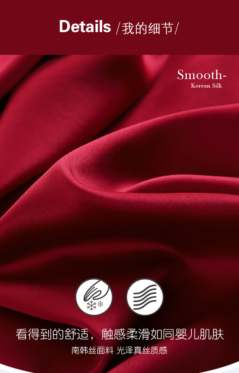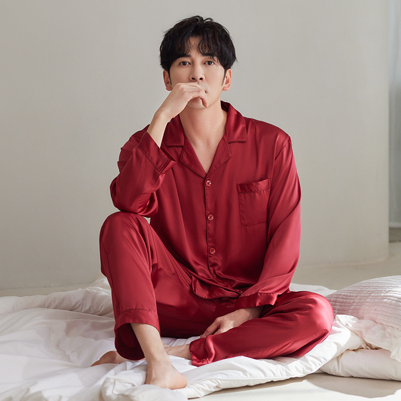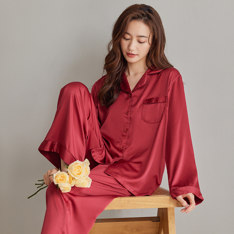 여성용 잠옷 봄, 가을 얼음 실크 레드 웨딩 신혼 홈웨어 여름 남성 정장 실크 커플 잠옷스토어 가기