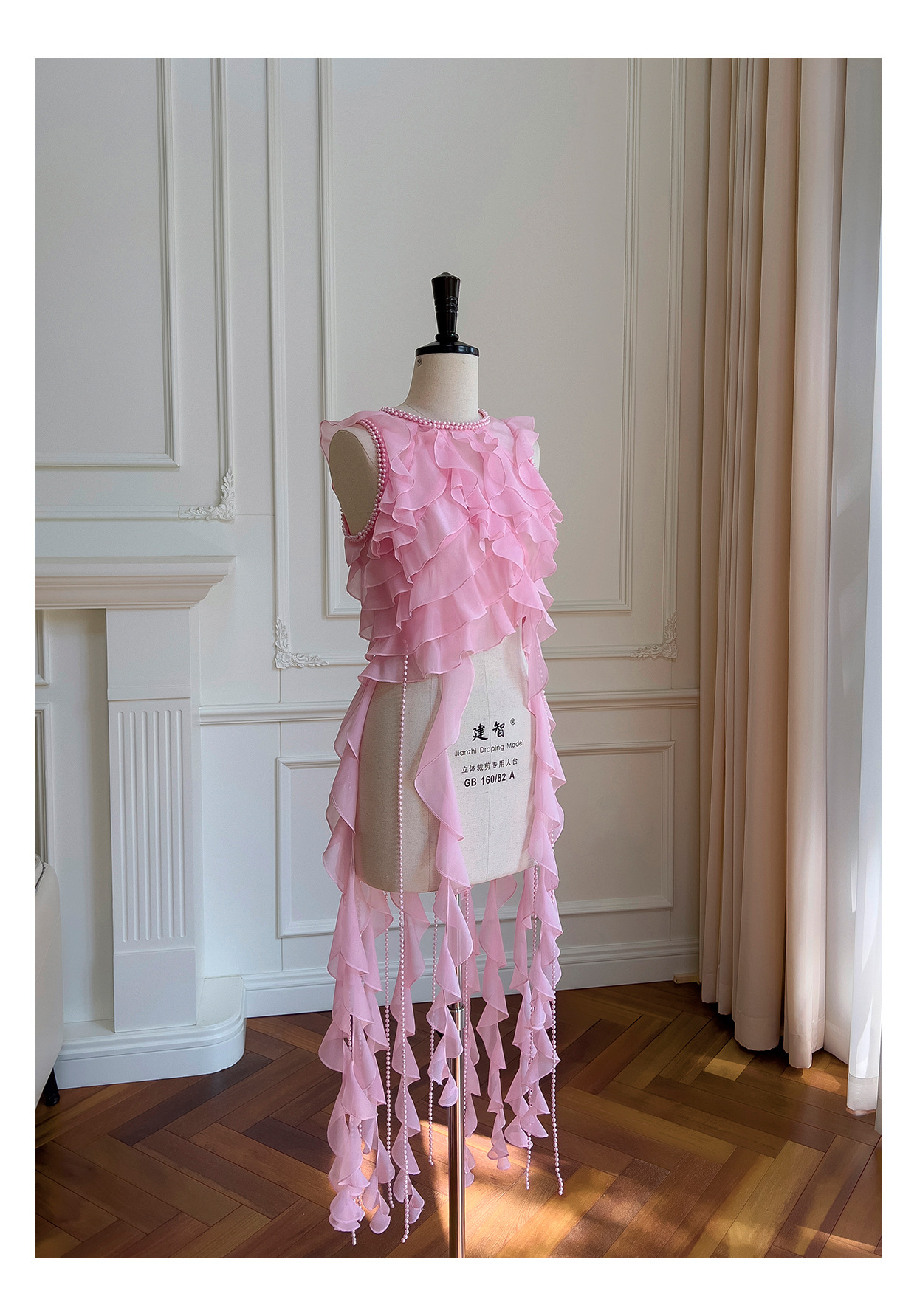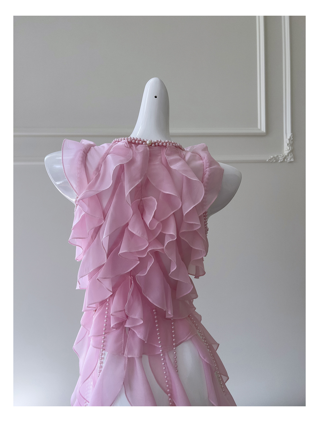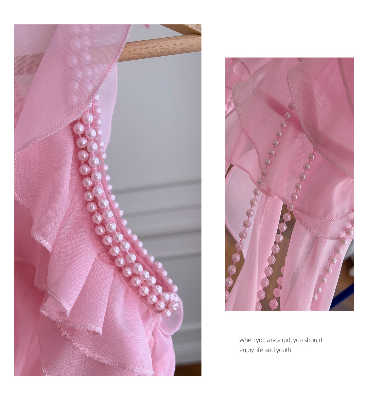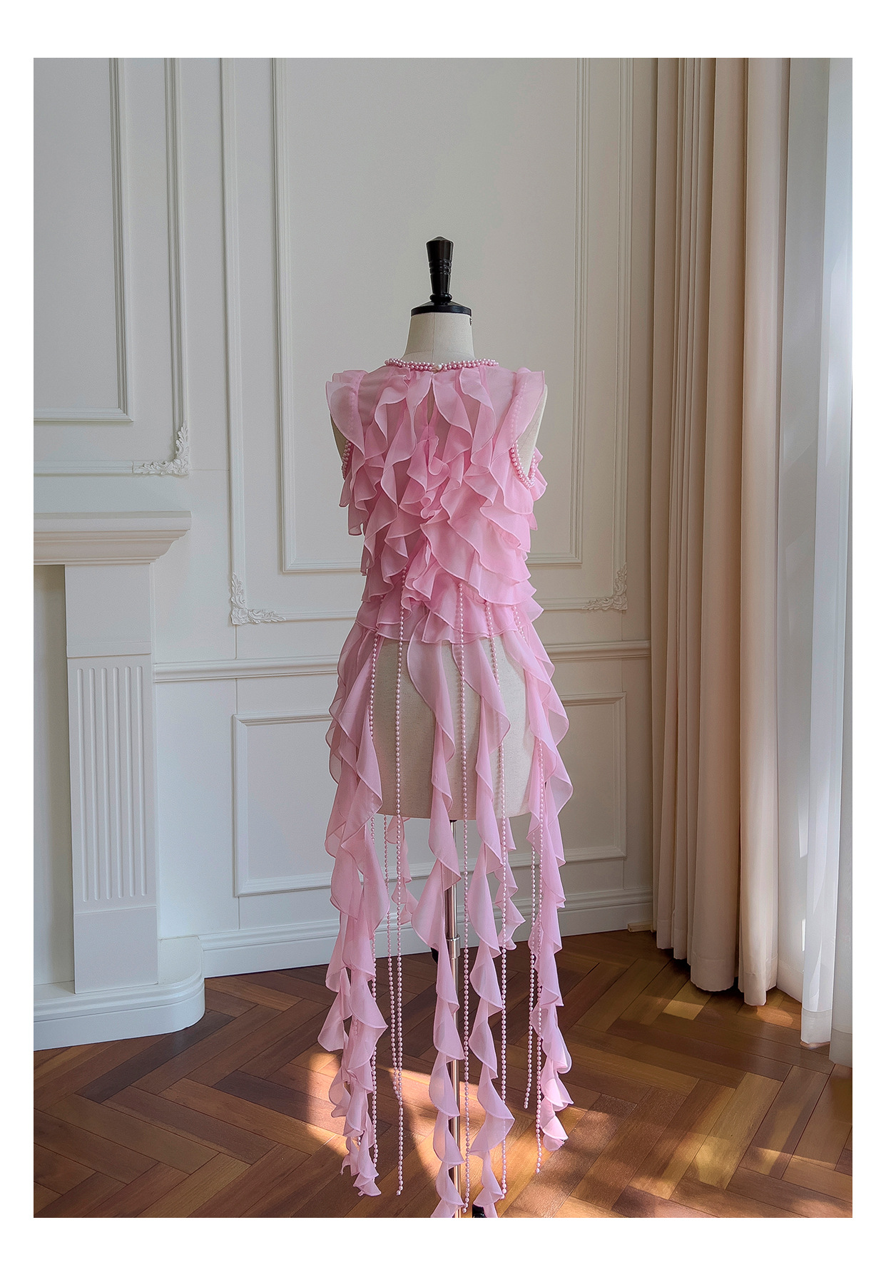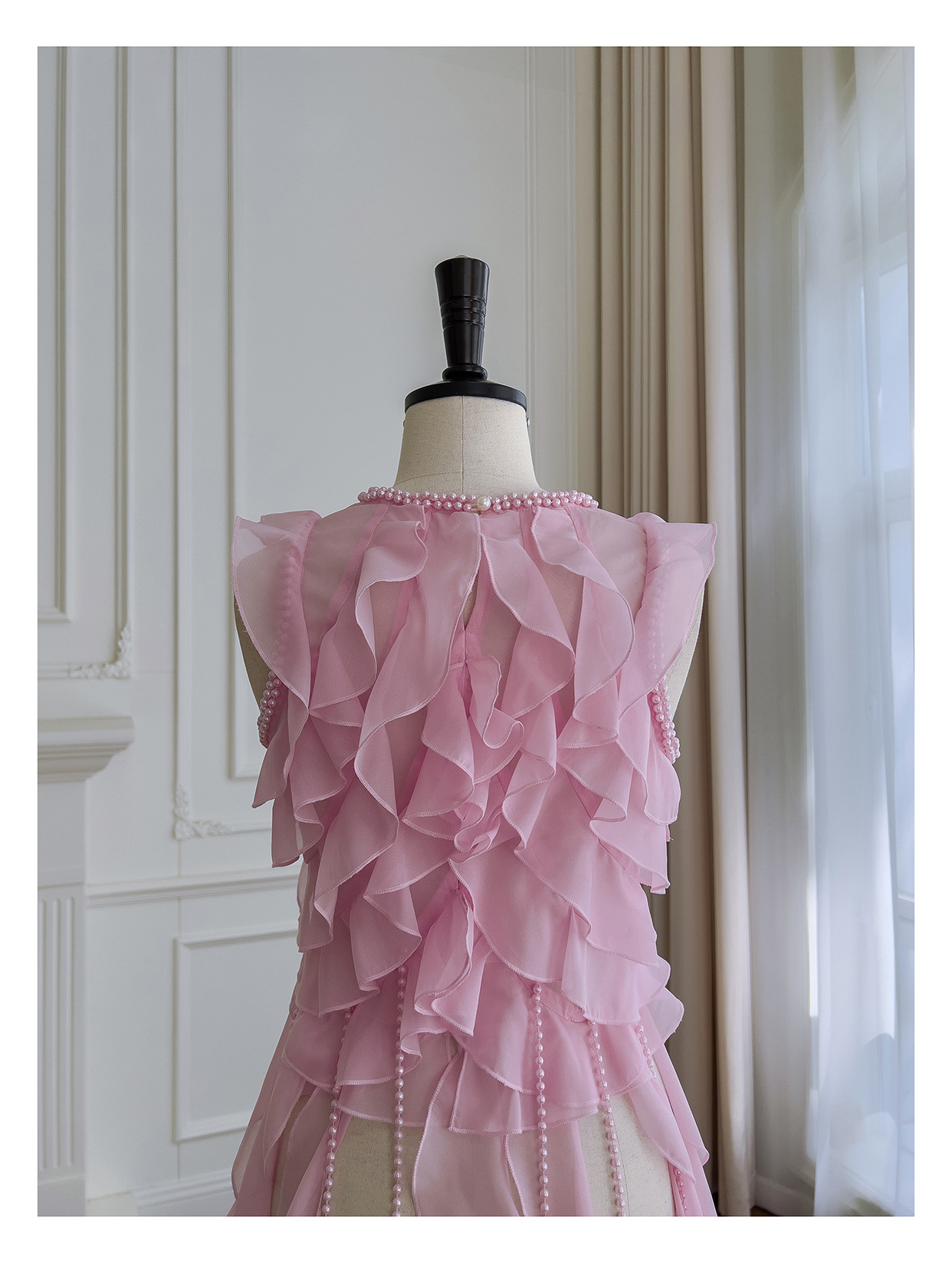 프랑스 달콤한 요정 핑크 진주 쉬폰 셔츠 프릴 불규칙한 술 민소매 셔츠 탑 71328스토어 가기