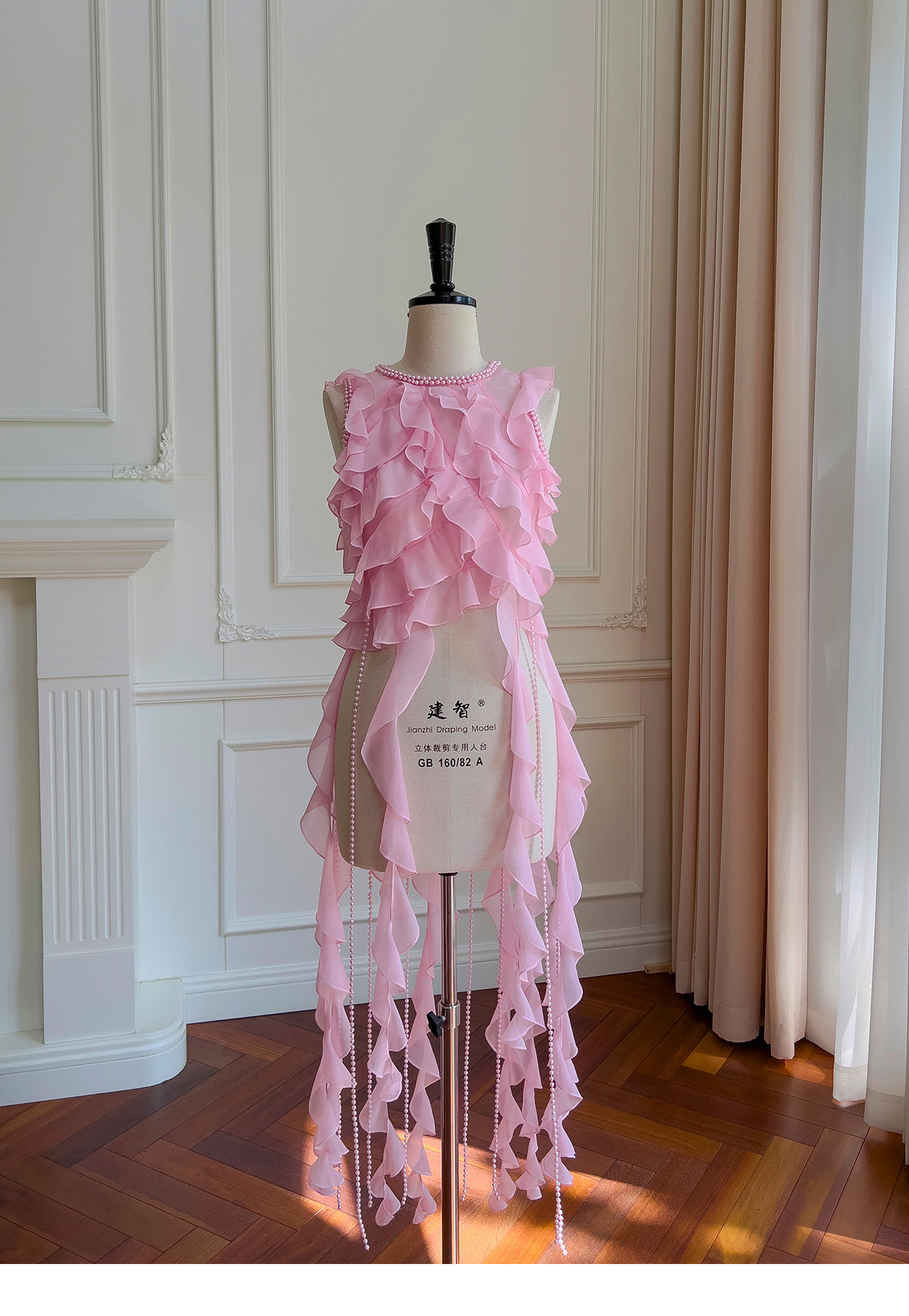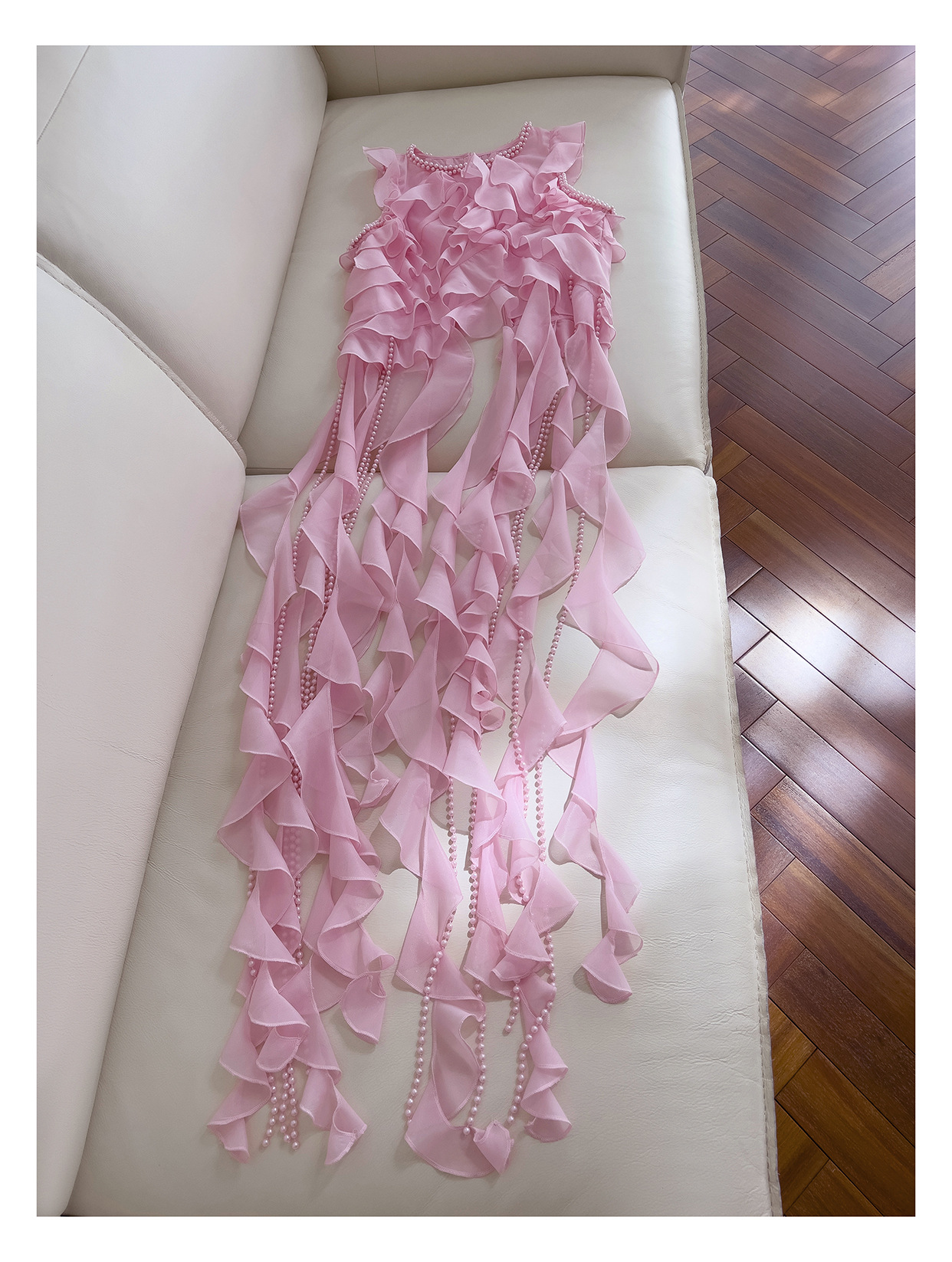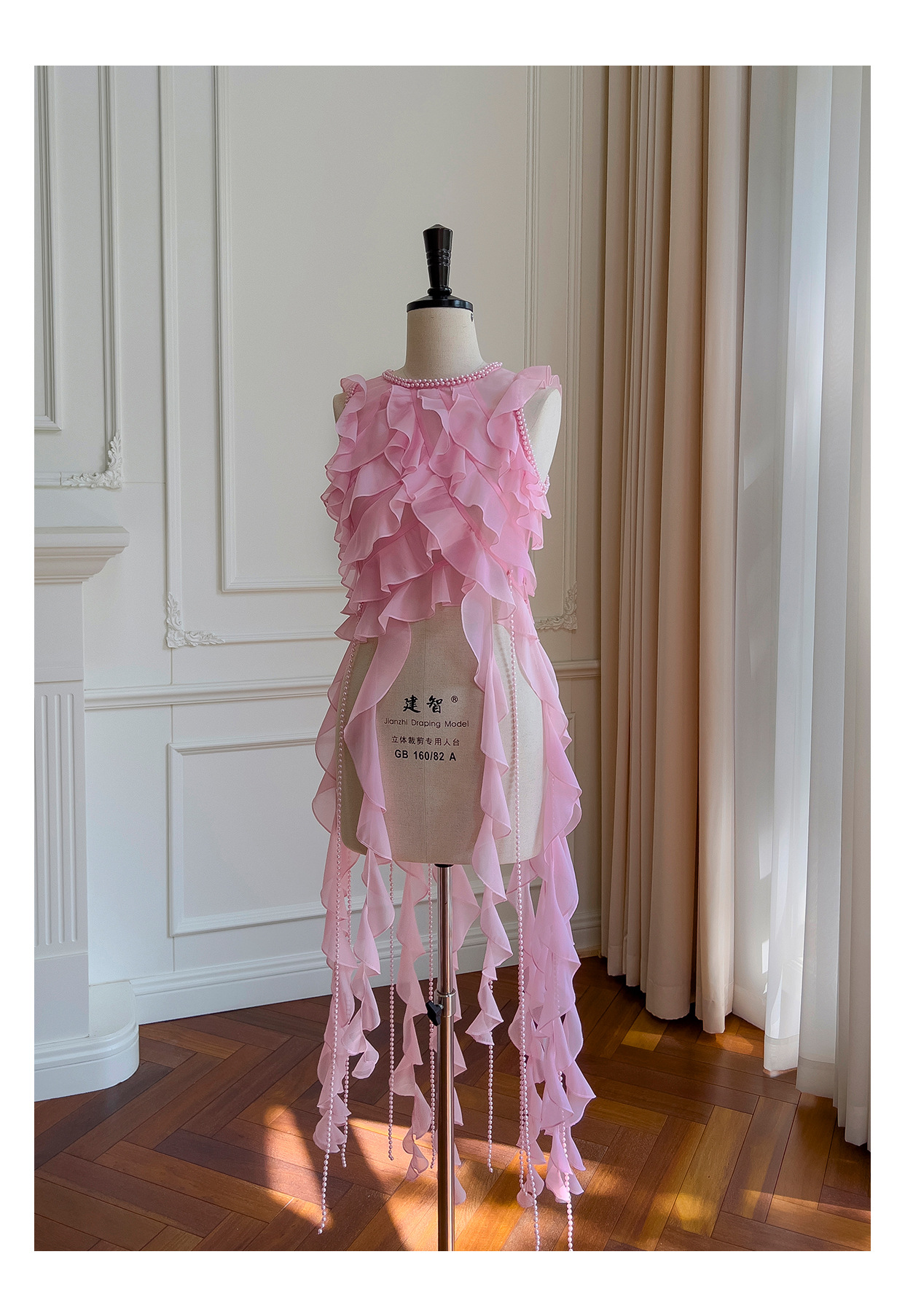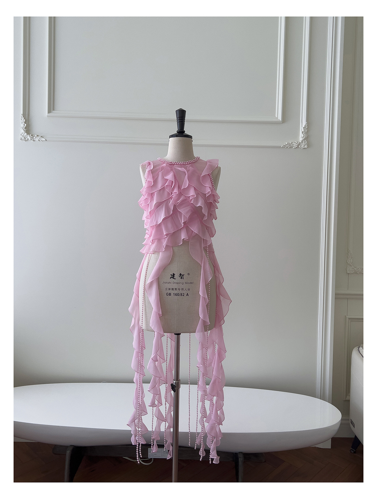 프랑스 달콤한 요정 핑크 진주 쉬폰 셔츠 프릴 불규칙한 술 민소매 셔츠 탑 71328스토어 가기