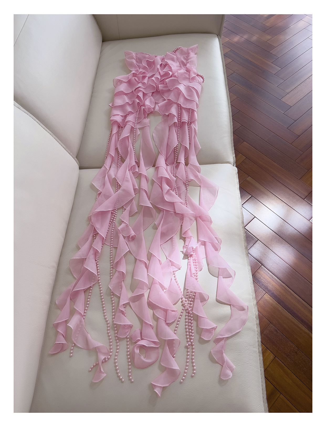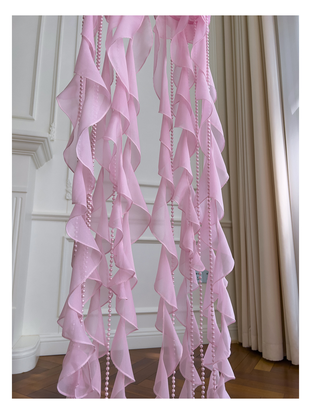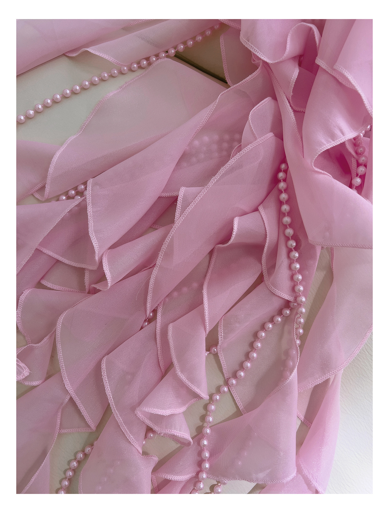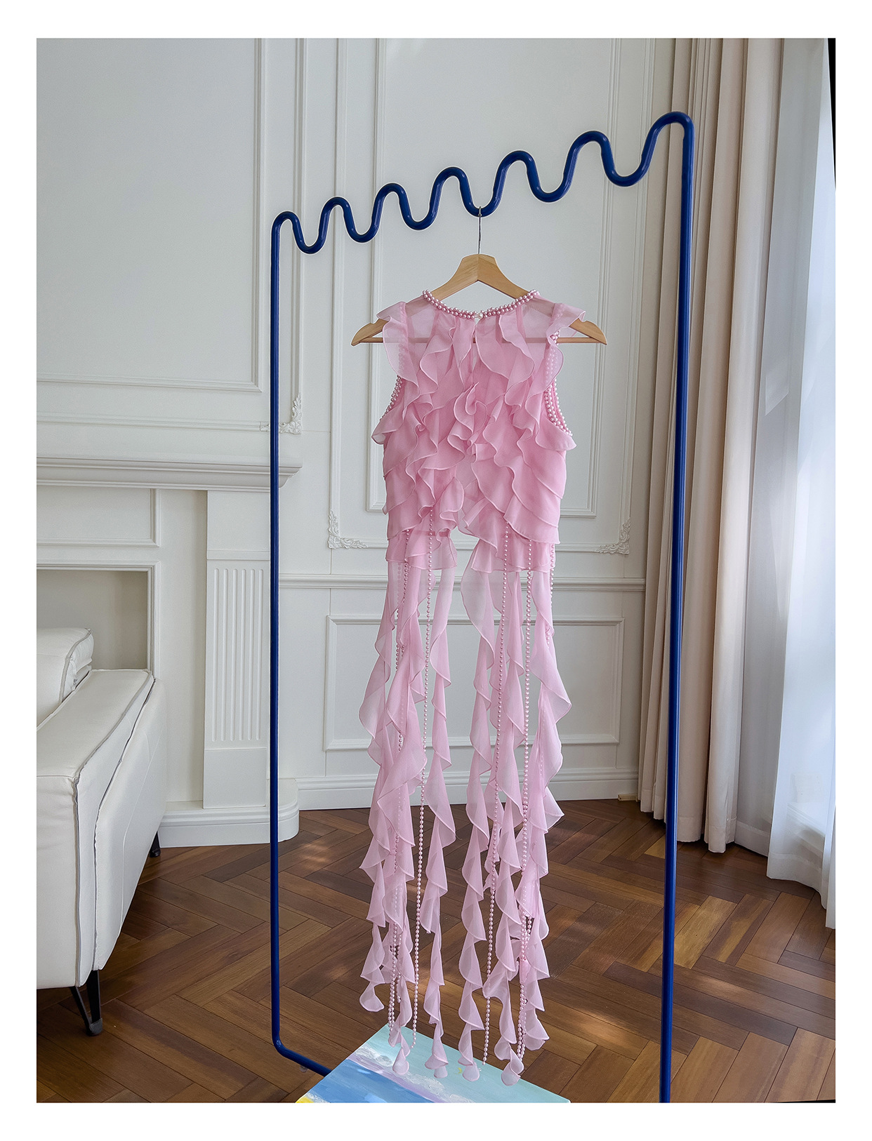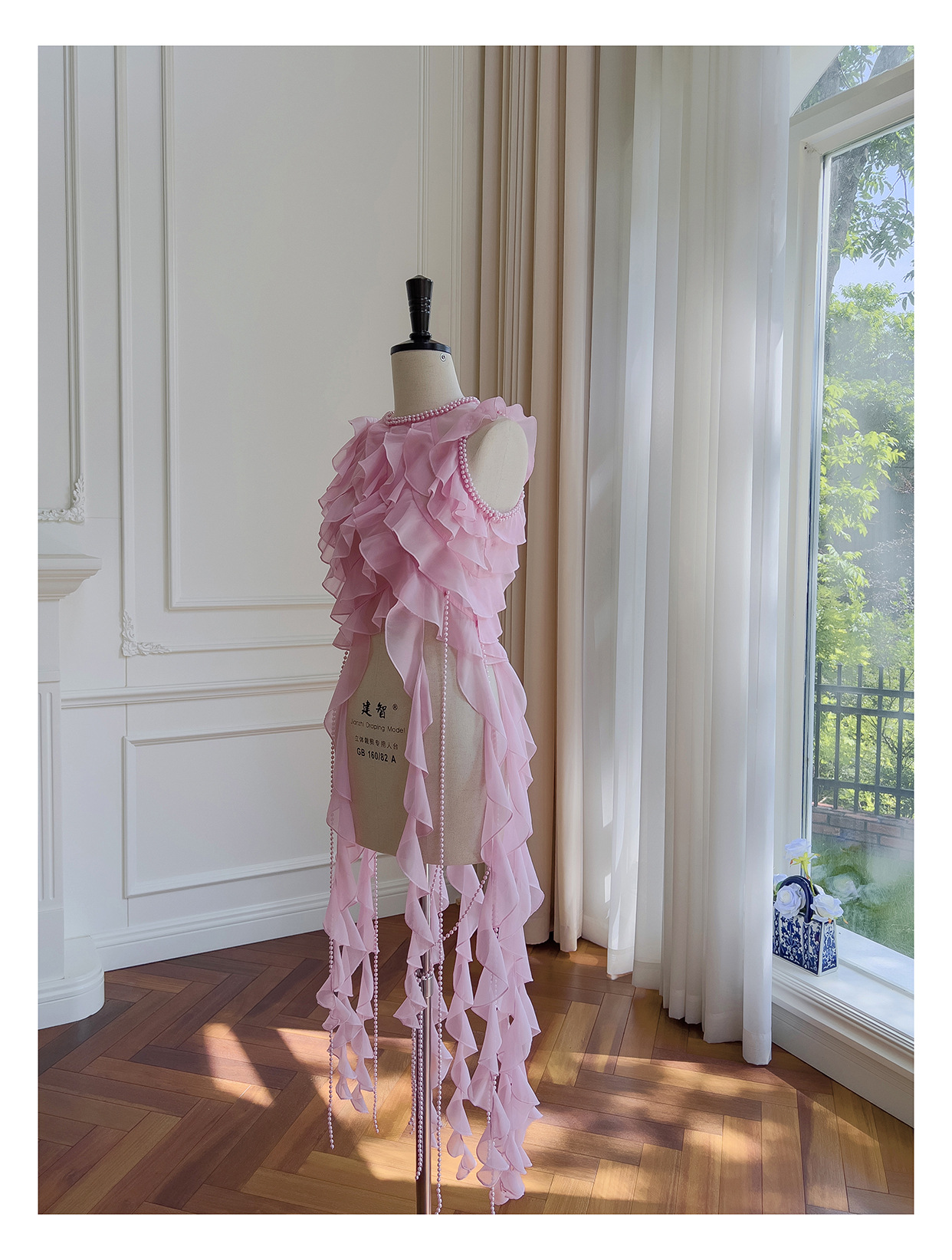 프랑스 달콤한 요정 핑크 진주 쉬폰 셔츠 프릴 불규칙한 술 민소매 셔츠 탑 71328