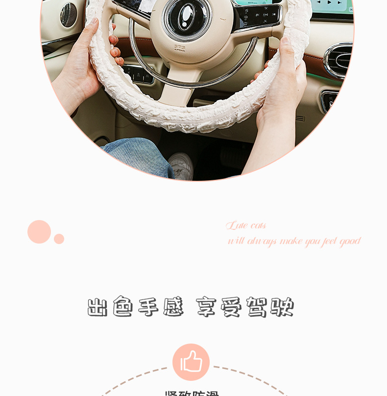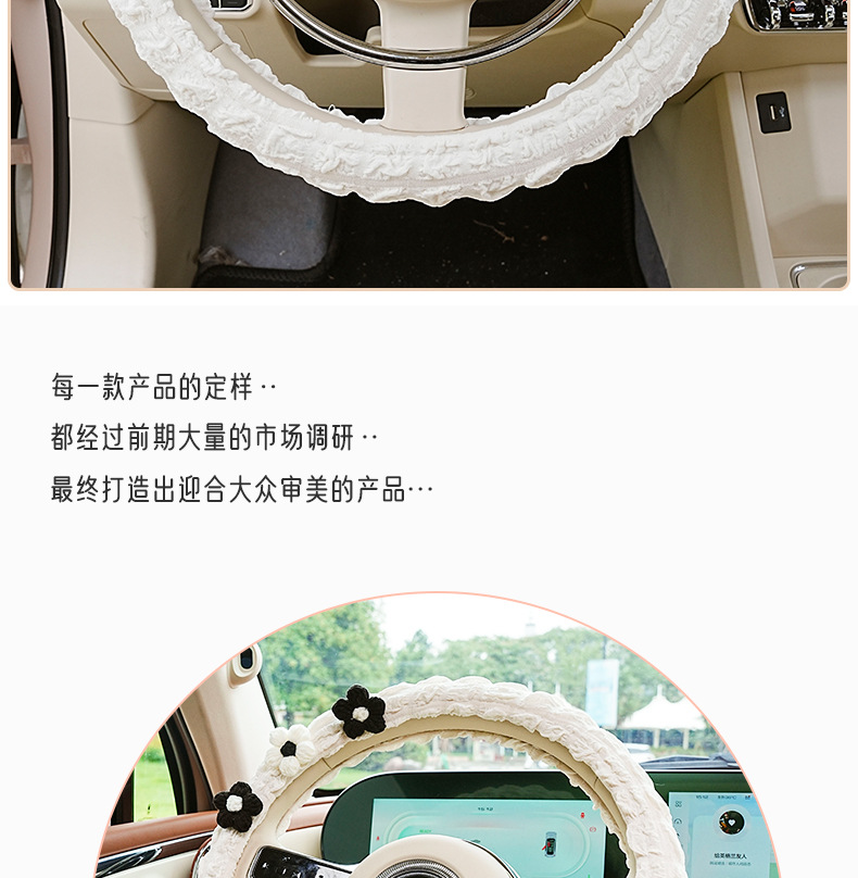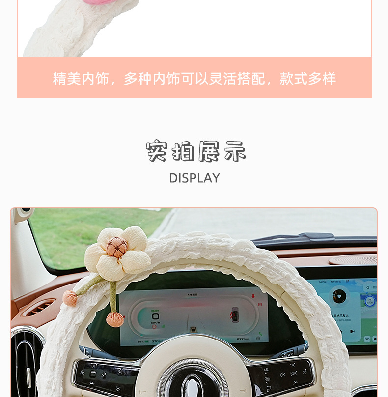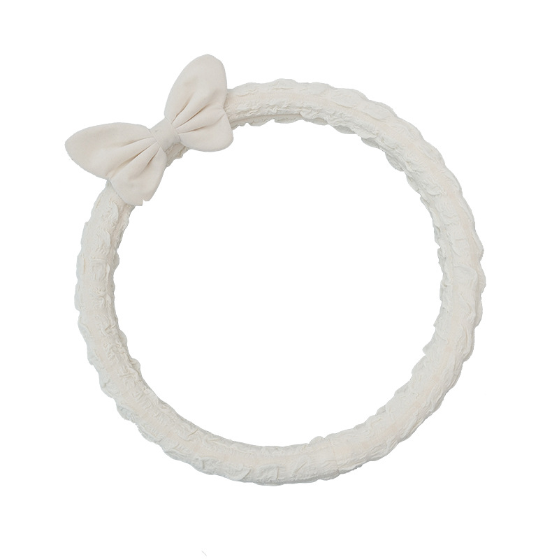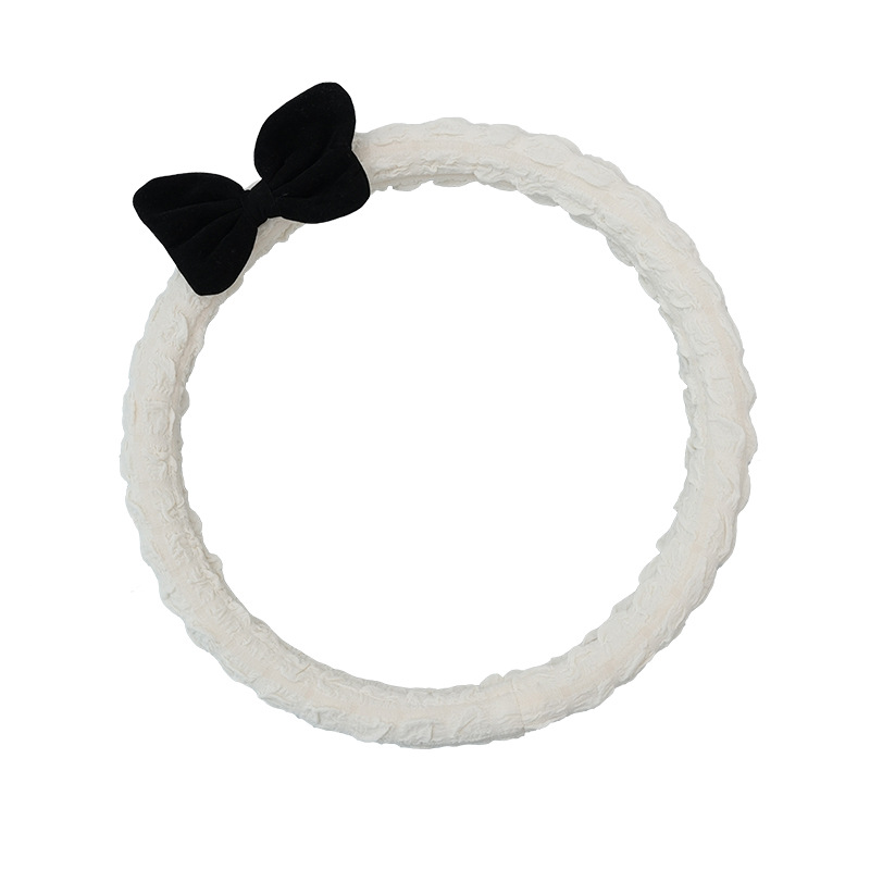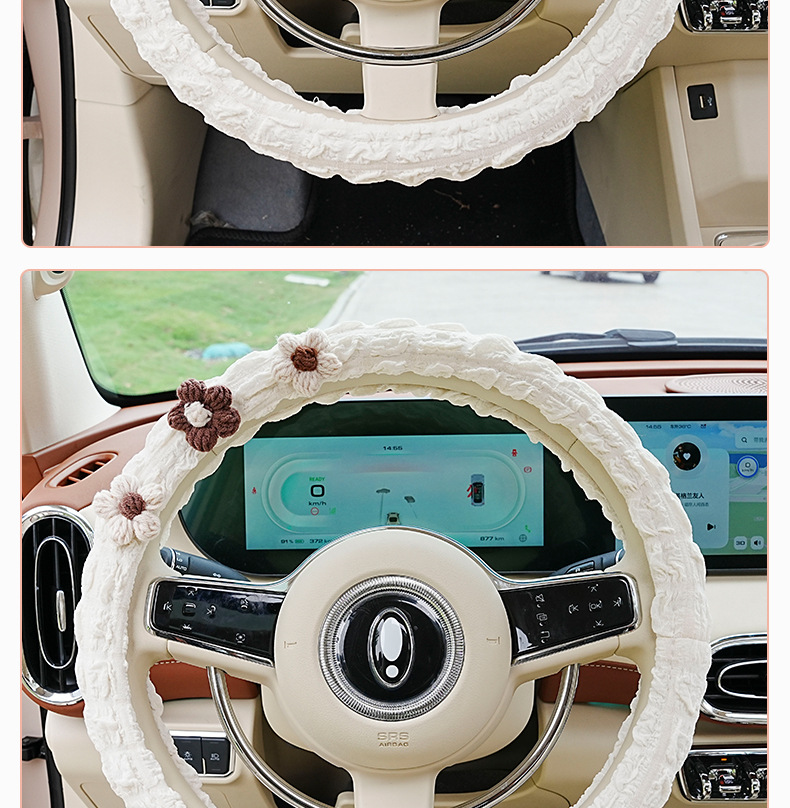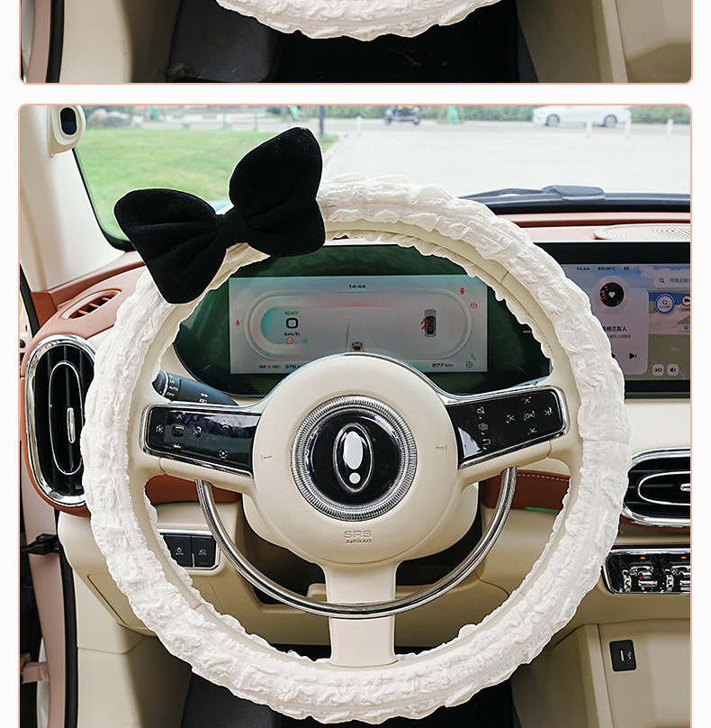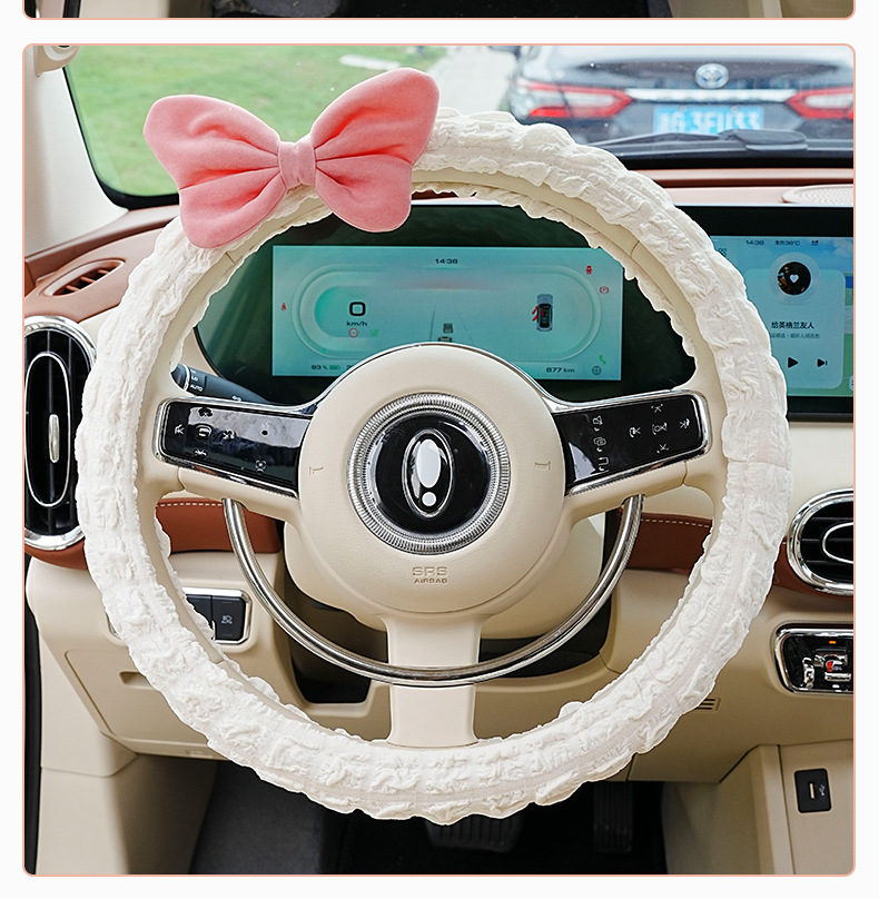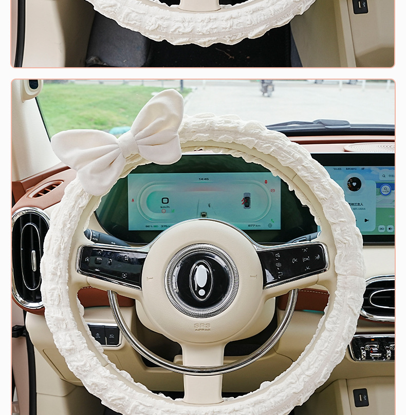 • 화이트 벨벳 활과 푹신한 베이지 스티어링 휠 커버