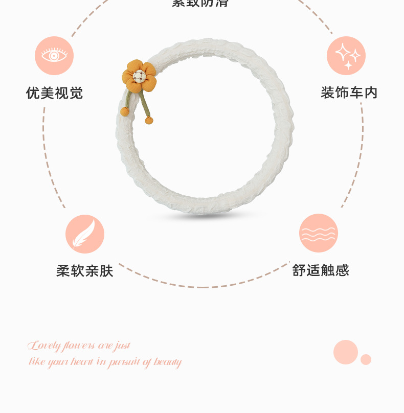 • 퍼프 Ge 베이지 스티어링 휠 커버 스티커 퍼프 꽃 화이트 오렌지