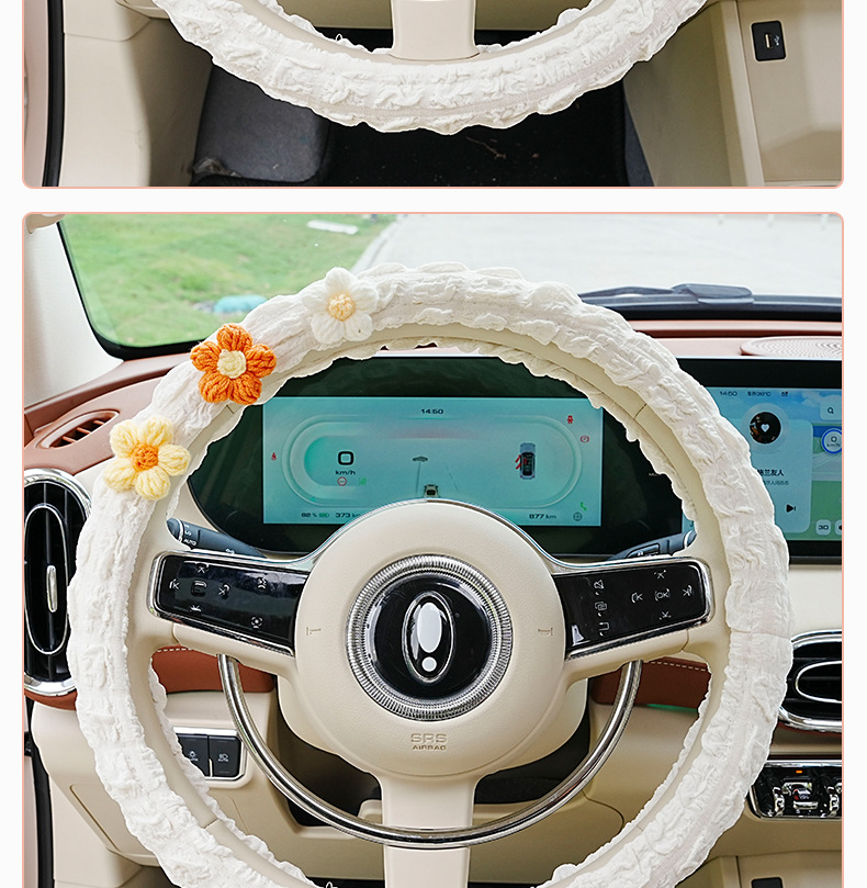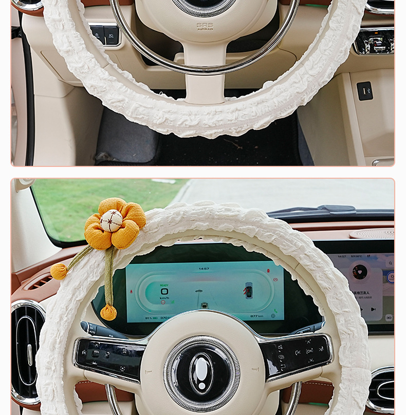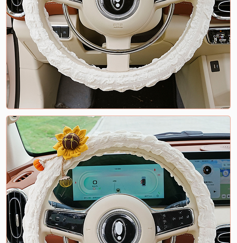 • 퍼프 Ge 베이지 스티어링 휠 커버 호박 꽃 베이지