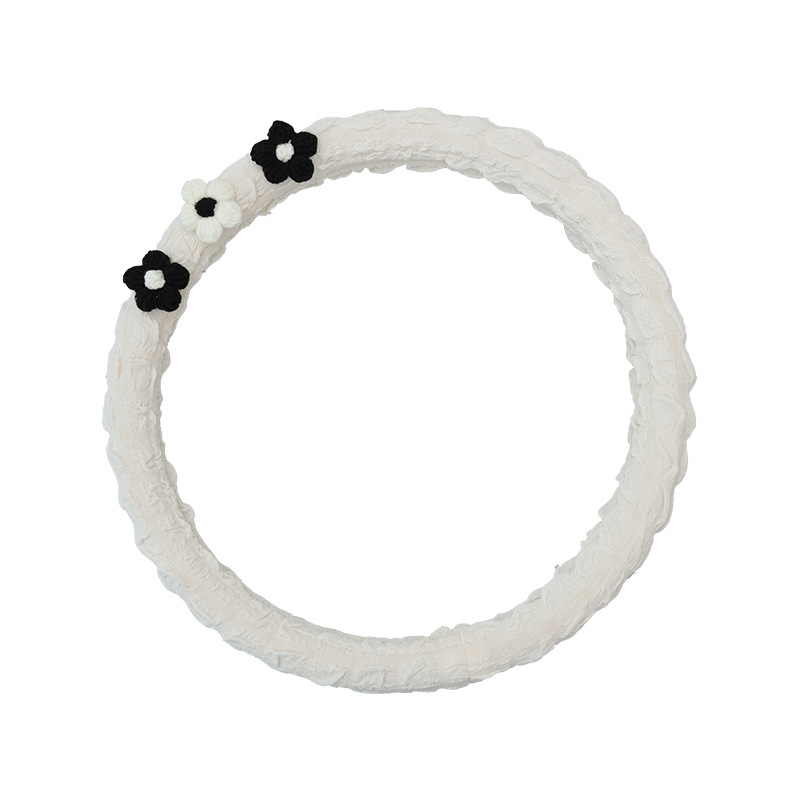 • 퍼프 피그 베이지 스티어링 휠 커버 스티커 퍼프 꽃 흑백 블랙
