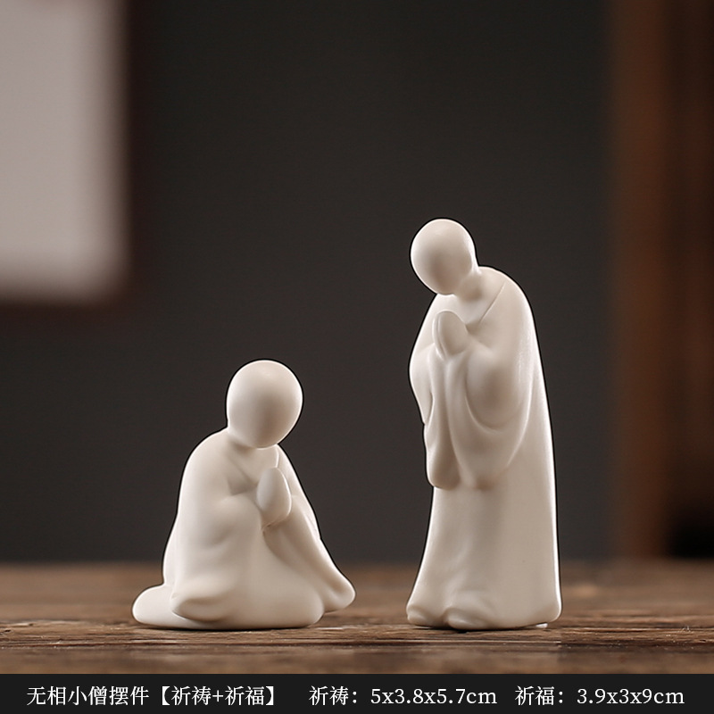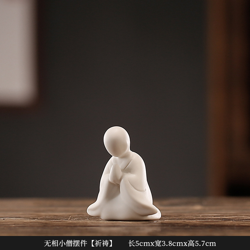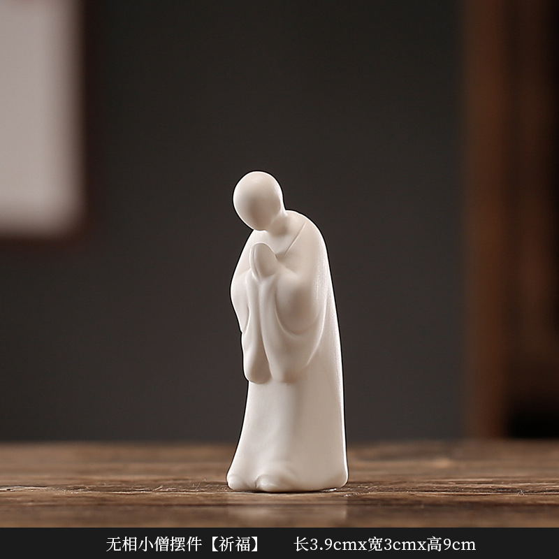 선 화이트 도자기 작은 스님 차 애완 동물 장식 창조적 인 비상 부처님 기도 분재 물고기 탱크 풍경 홈 바탕 화면 장식스토어 가기