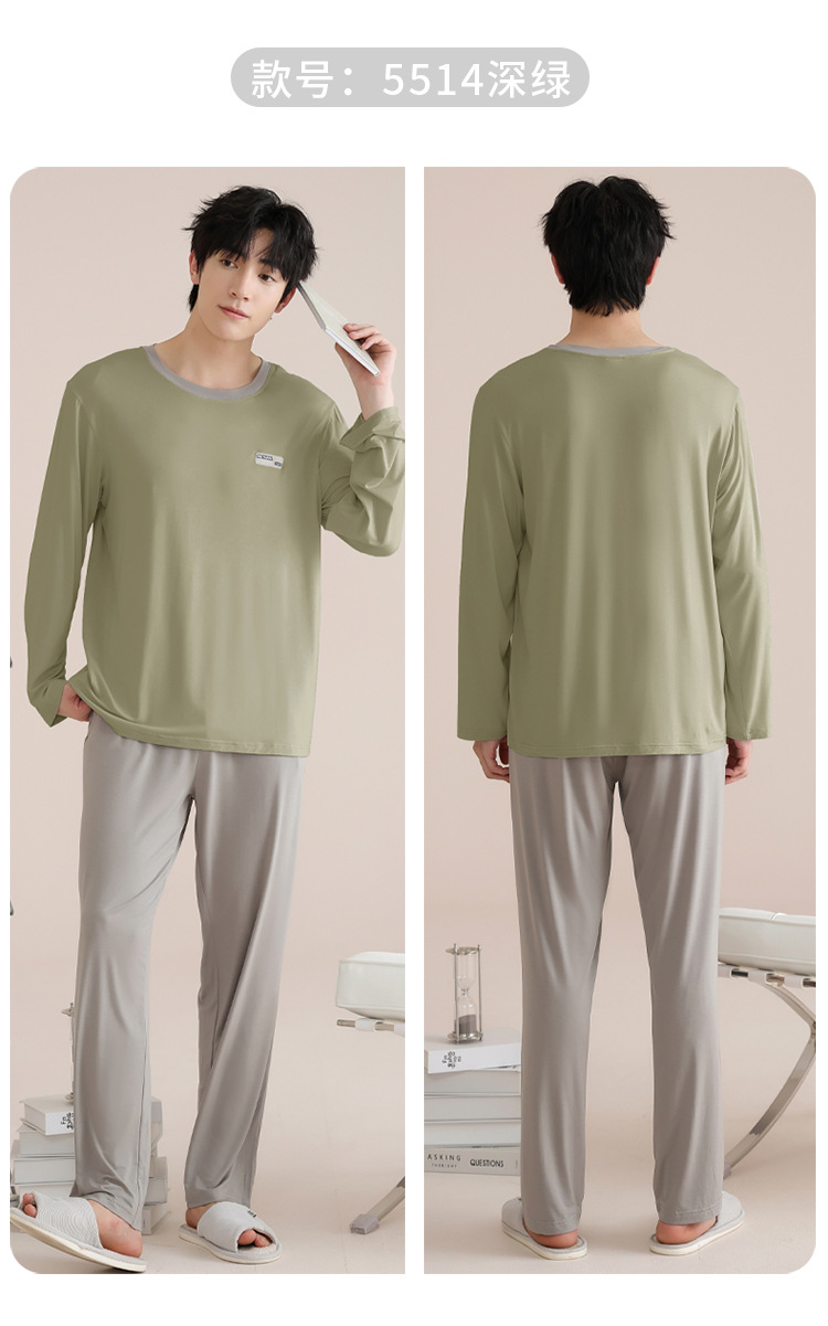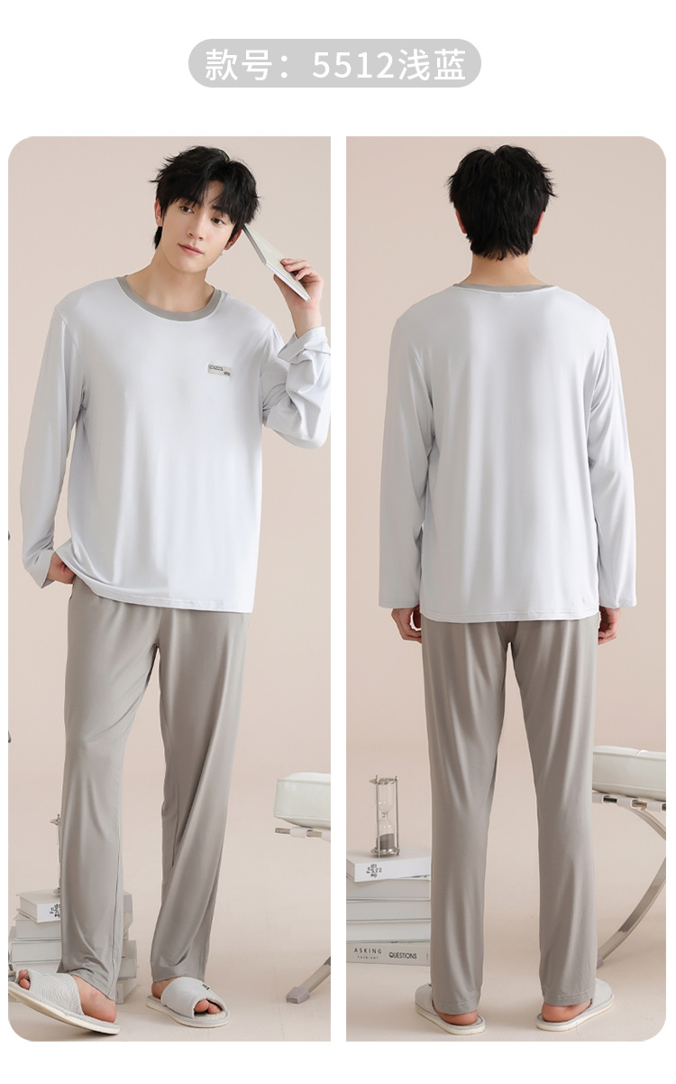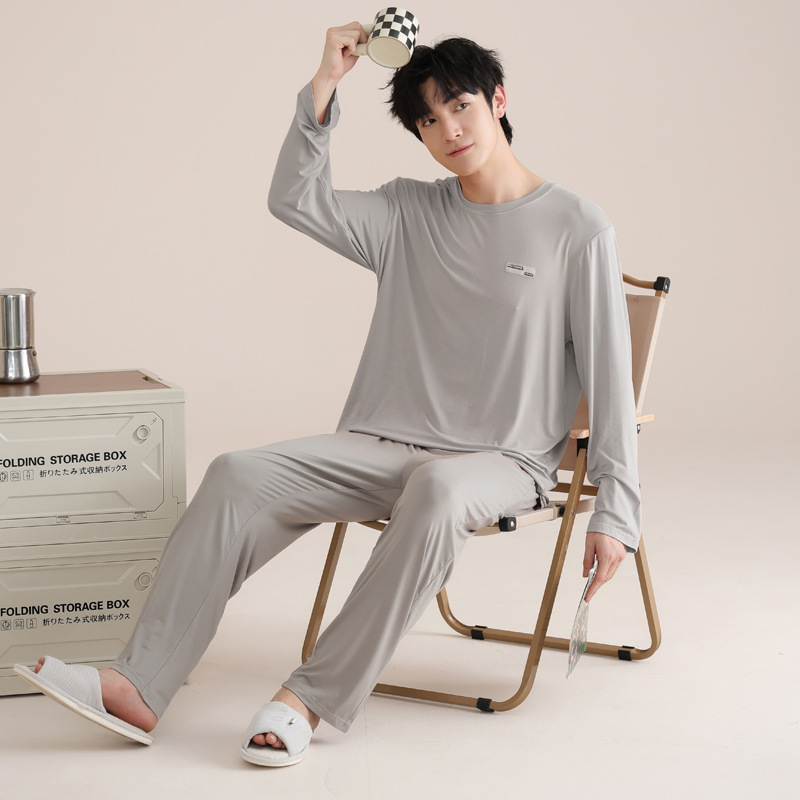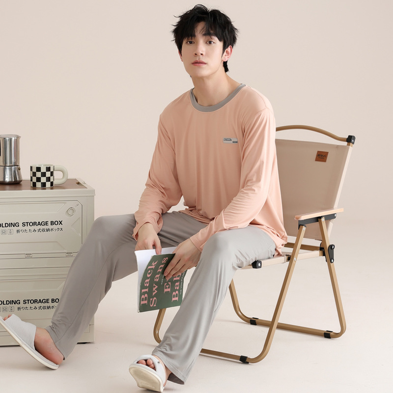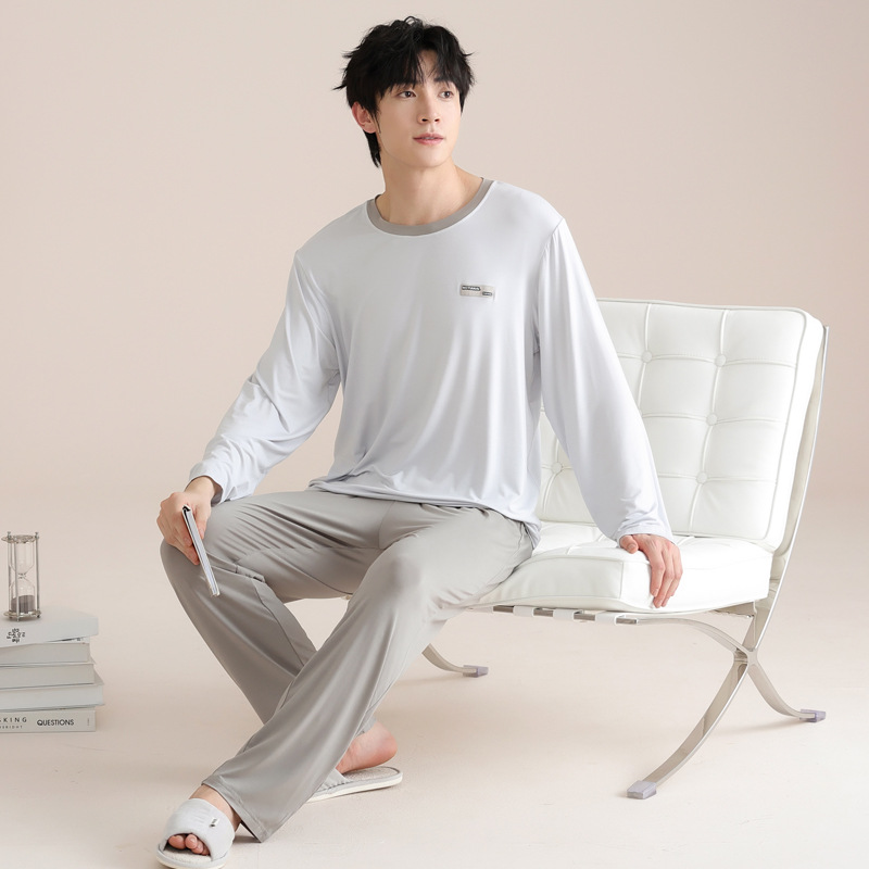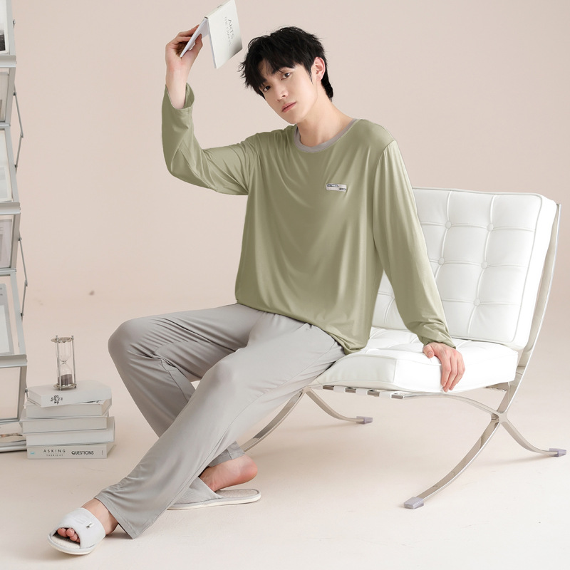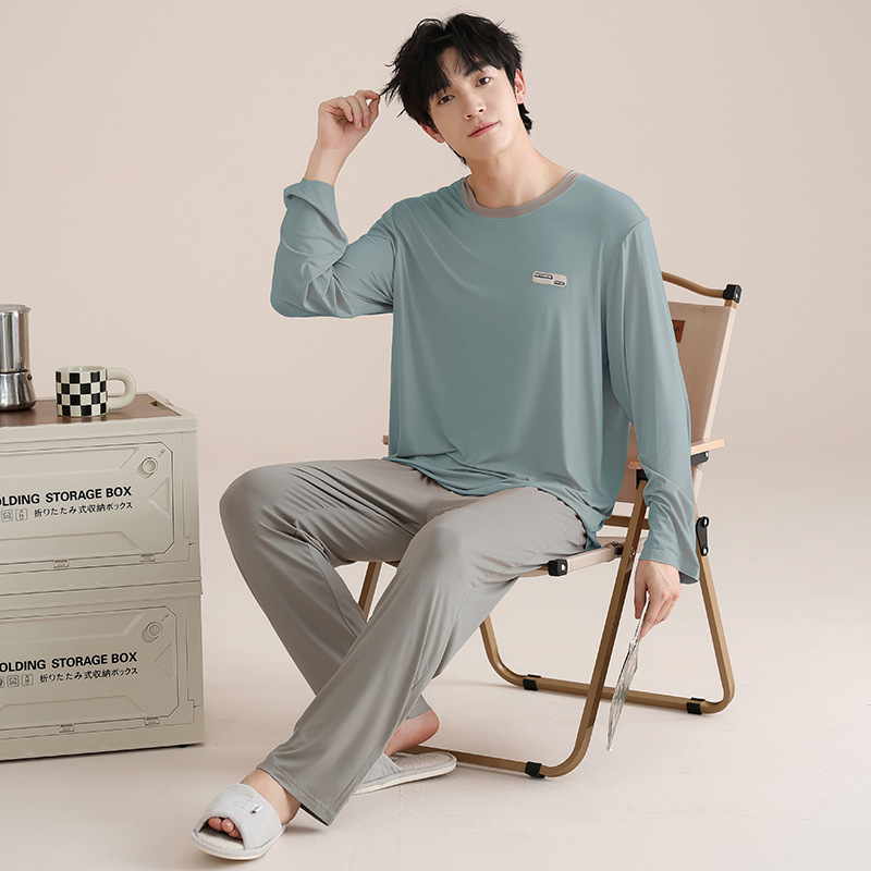 모달 잠옷 남자의 봄과 가을 얇은 긴팔 터틀넥 시원한 느낌 가정복 봄과 여름 사계절 세트