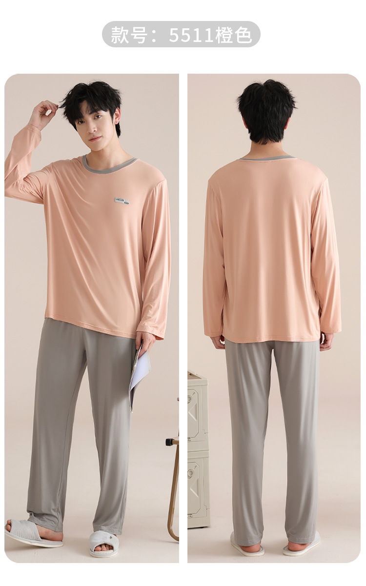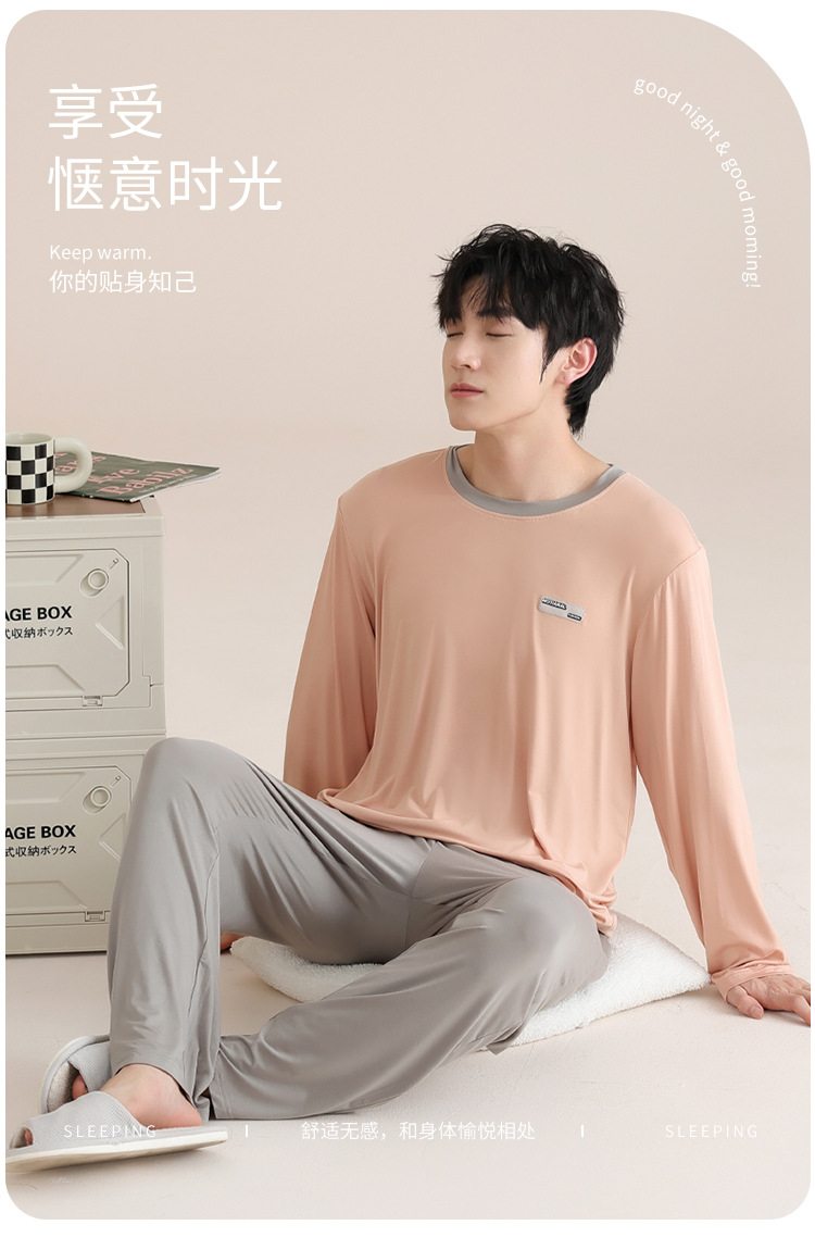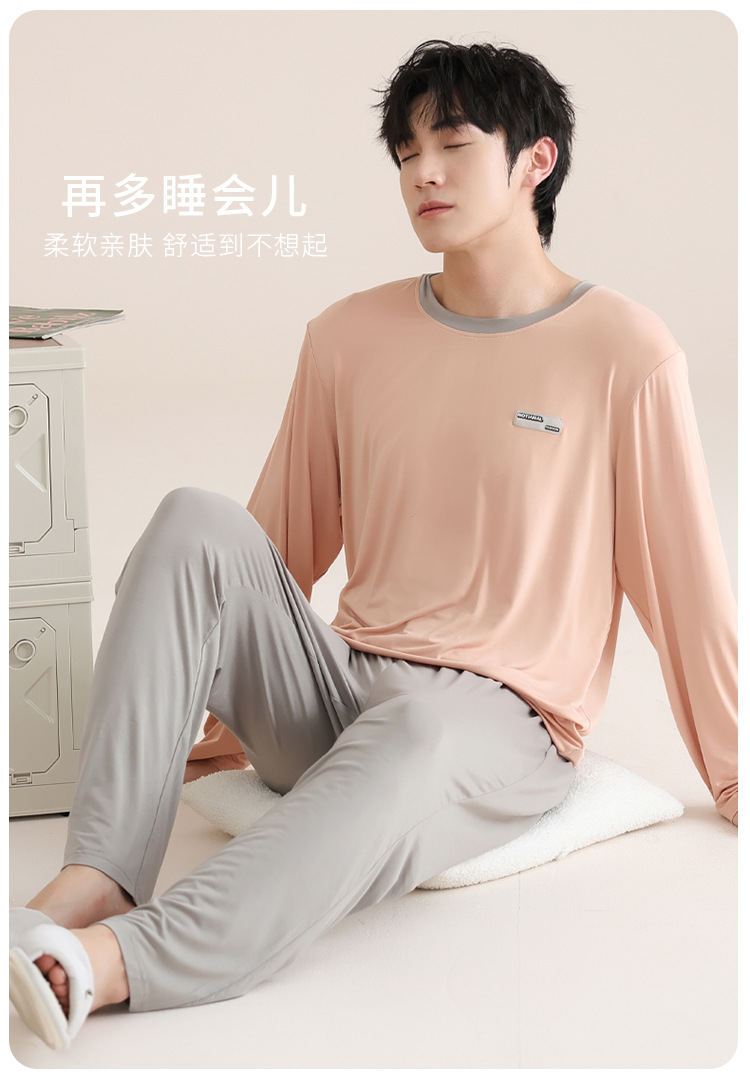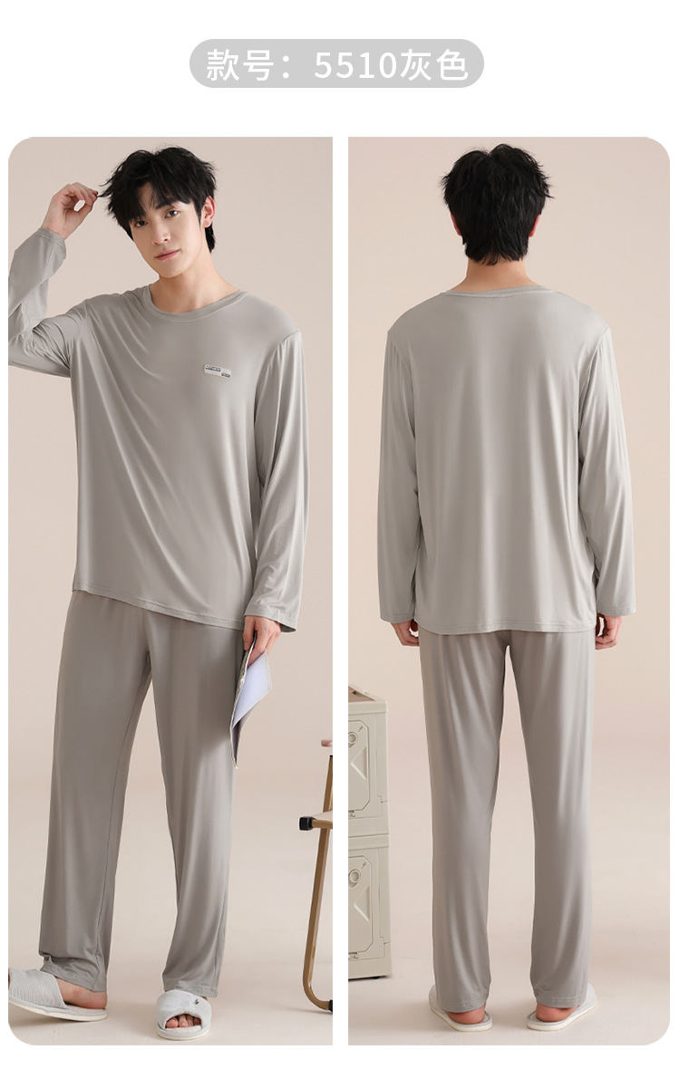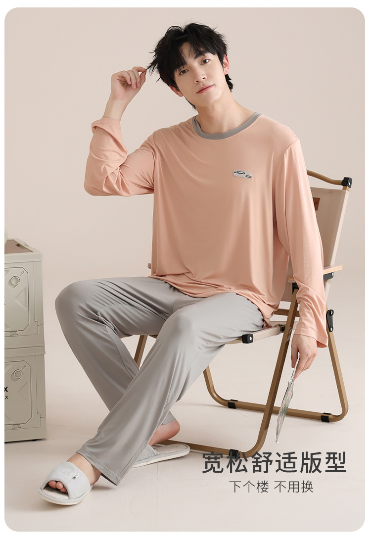 모달 잠옷 남자의 봄과 가을 얇은 긴팔 터틀넥 시원한 느낌 가정복 봄과 여름 사계절 세트