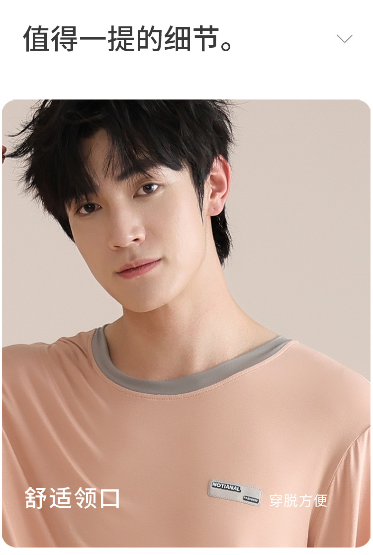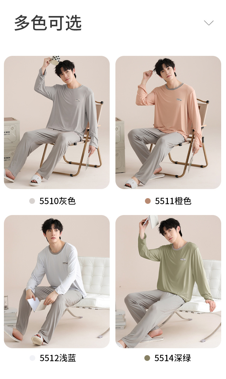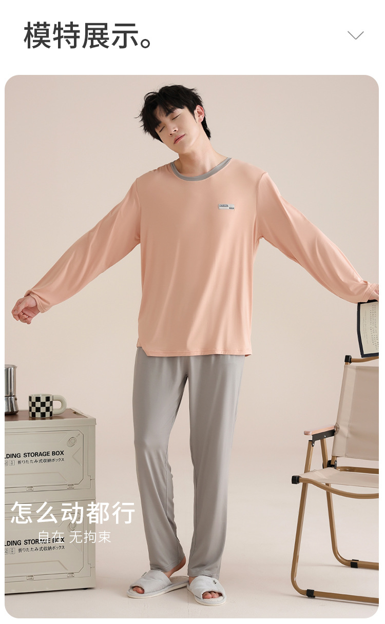모달 잠옷 남자의 봄과 가을 얇은 긴팔 터틀넥 시원한 느낌 가정복 봄과 여름 사계절 세트스토어 가기