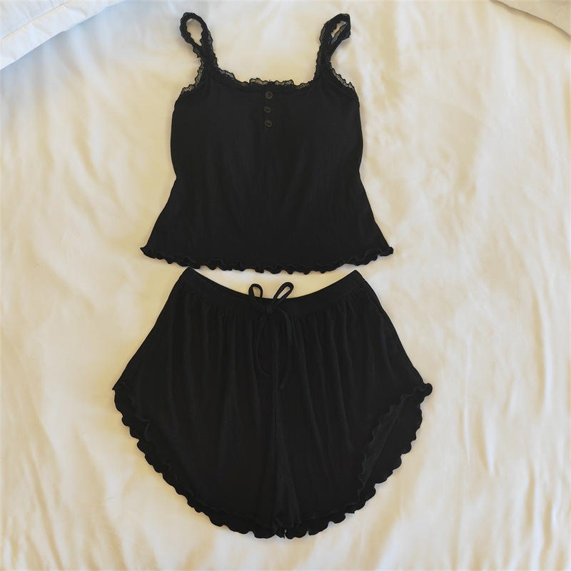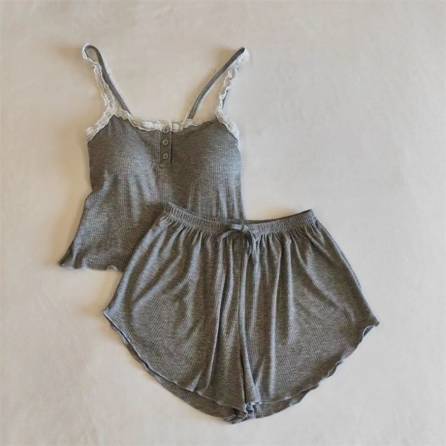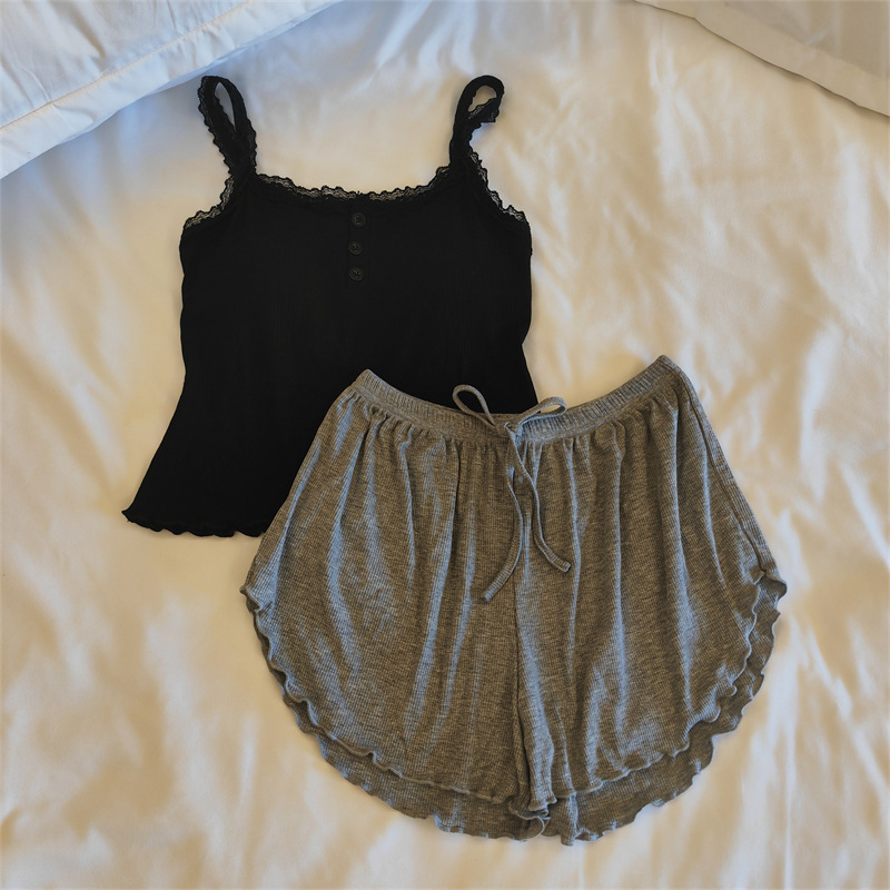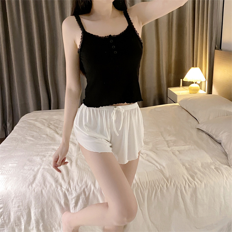 순수한 욕망 2023 여름 잠옷 여자 슬링 반바지 단색 라운드 넥 모달 가슴 패드 가정 옷 세트스토어 가기