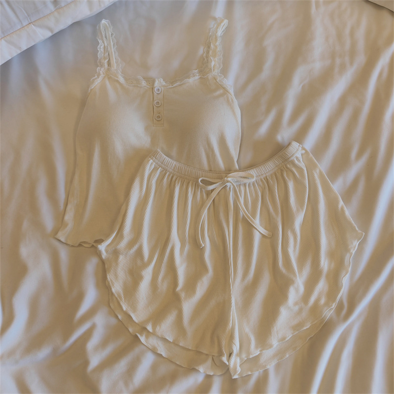 순수한 욕망 2023 여름 잠옷 여자 슬링 반바지 단색 라운드 넥 모달 가슴 패드 가정 옷 세트