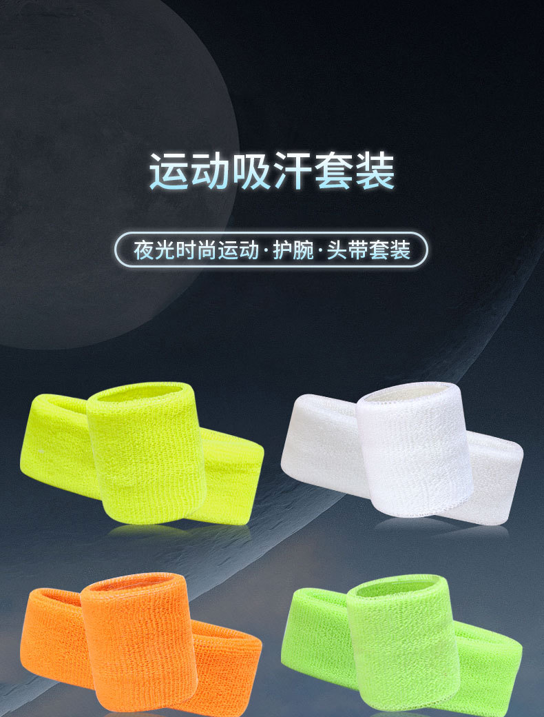 빛나는 머리띠 손목 헤어 밴드 세트 남성과 여성의 야간 실행 반사 형광 땀 흡수 머리 손목 밴드스토어 가기