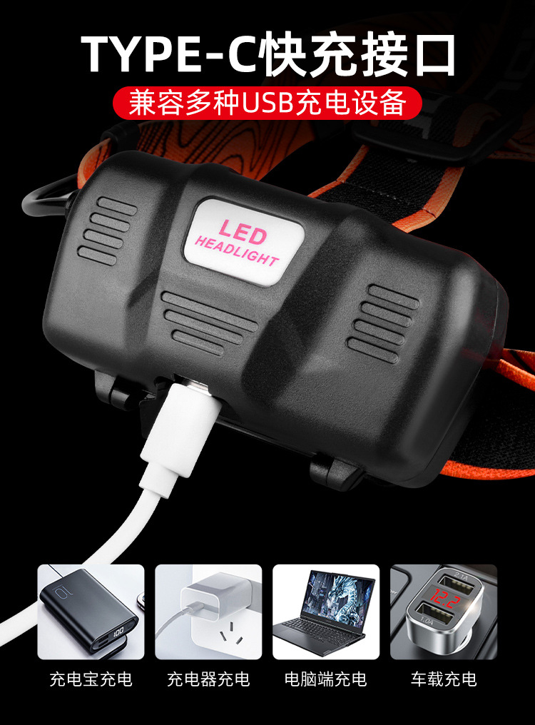 • 유도 백색 레이저 헤드 라이트 (배터리 없음) + Type-c 데이터 라인 + 컬러 박스
