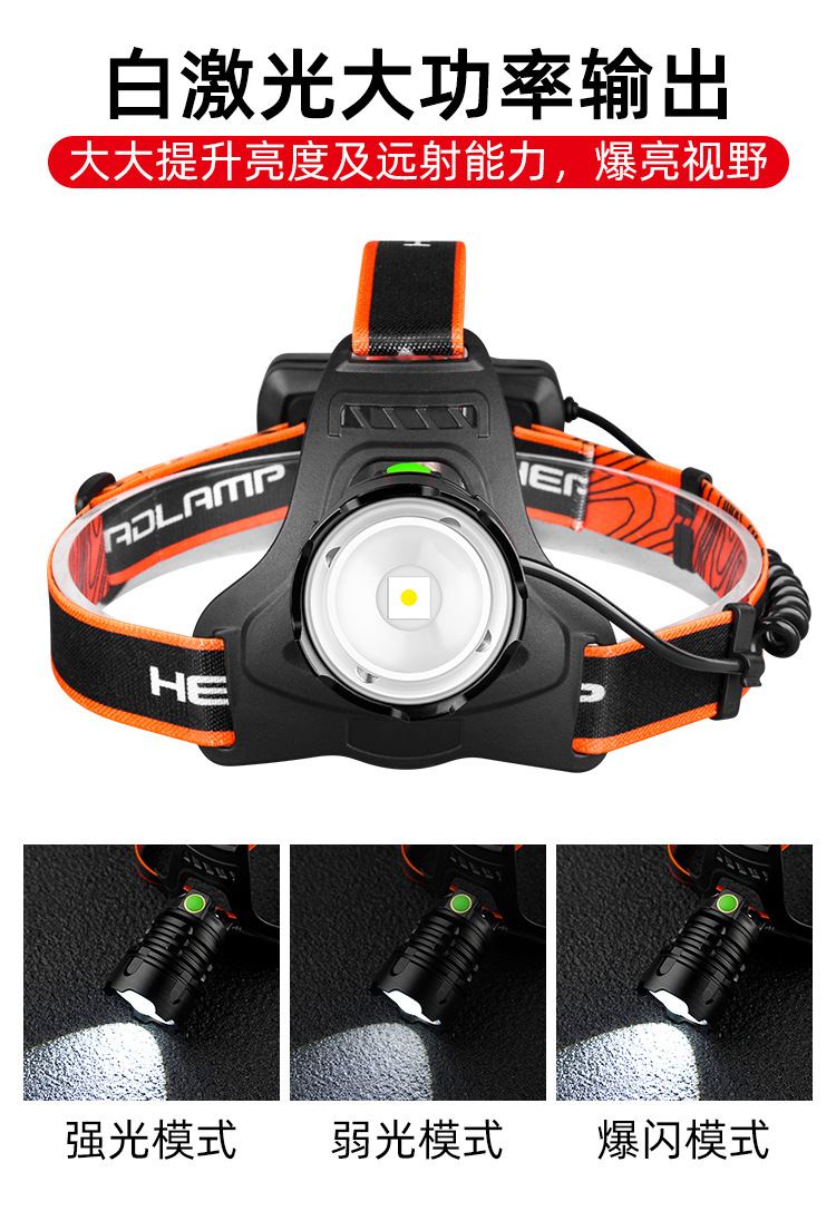 크로스 보더 야외 알루미늄 합금 유도 화이트 레이저 헤드램프 슈퍼 밝은 장거리 충전식 가정용 휴대용 낚시