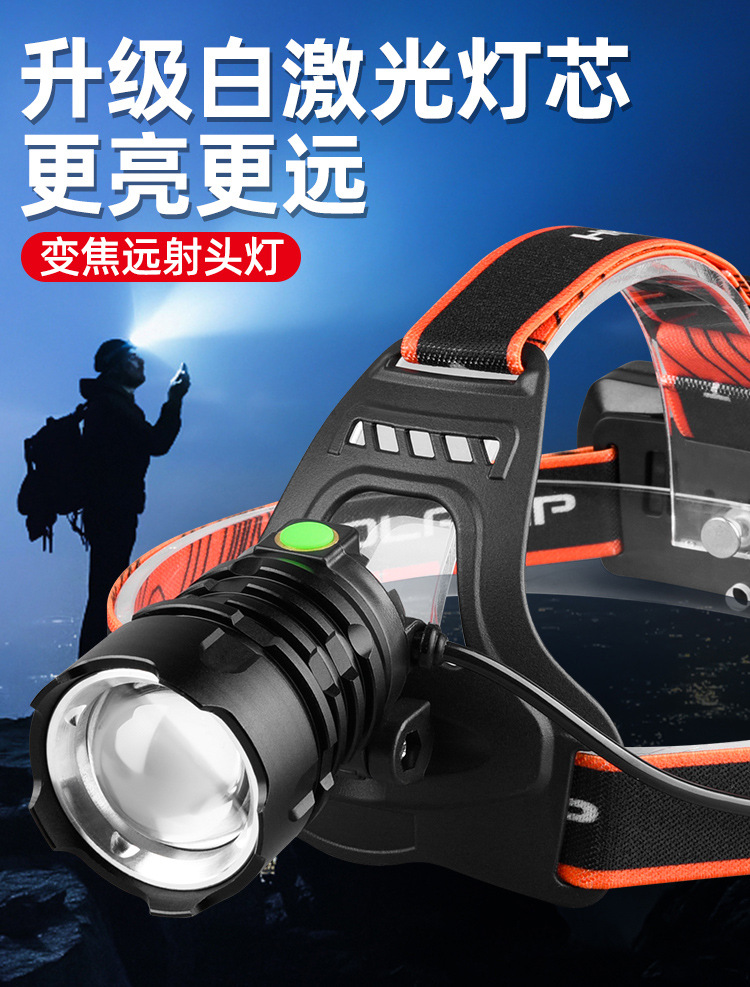 크로스 보더 야외 알루미늄 합금 유도 화이트 레이저 헤드램프 슈퍼 밝은 장거리 충전식 가정용 휴대용 낚시스토어 가기